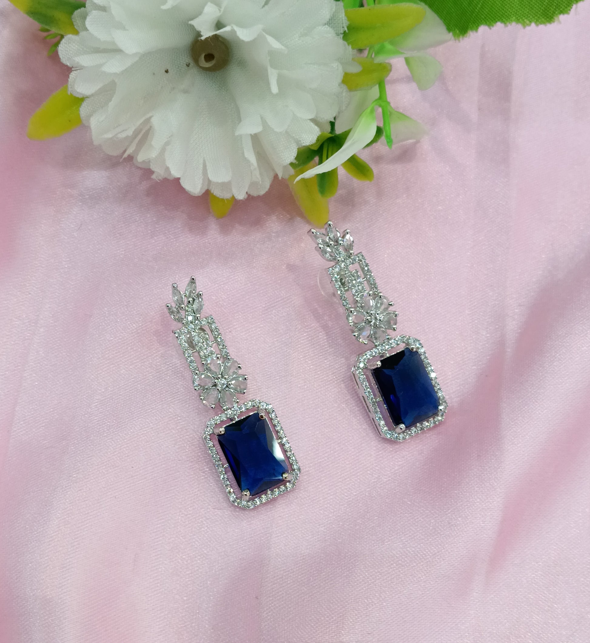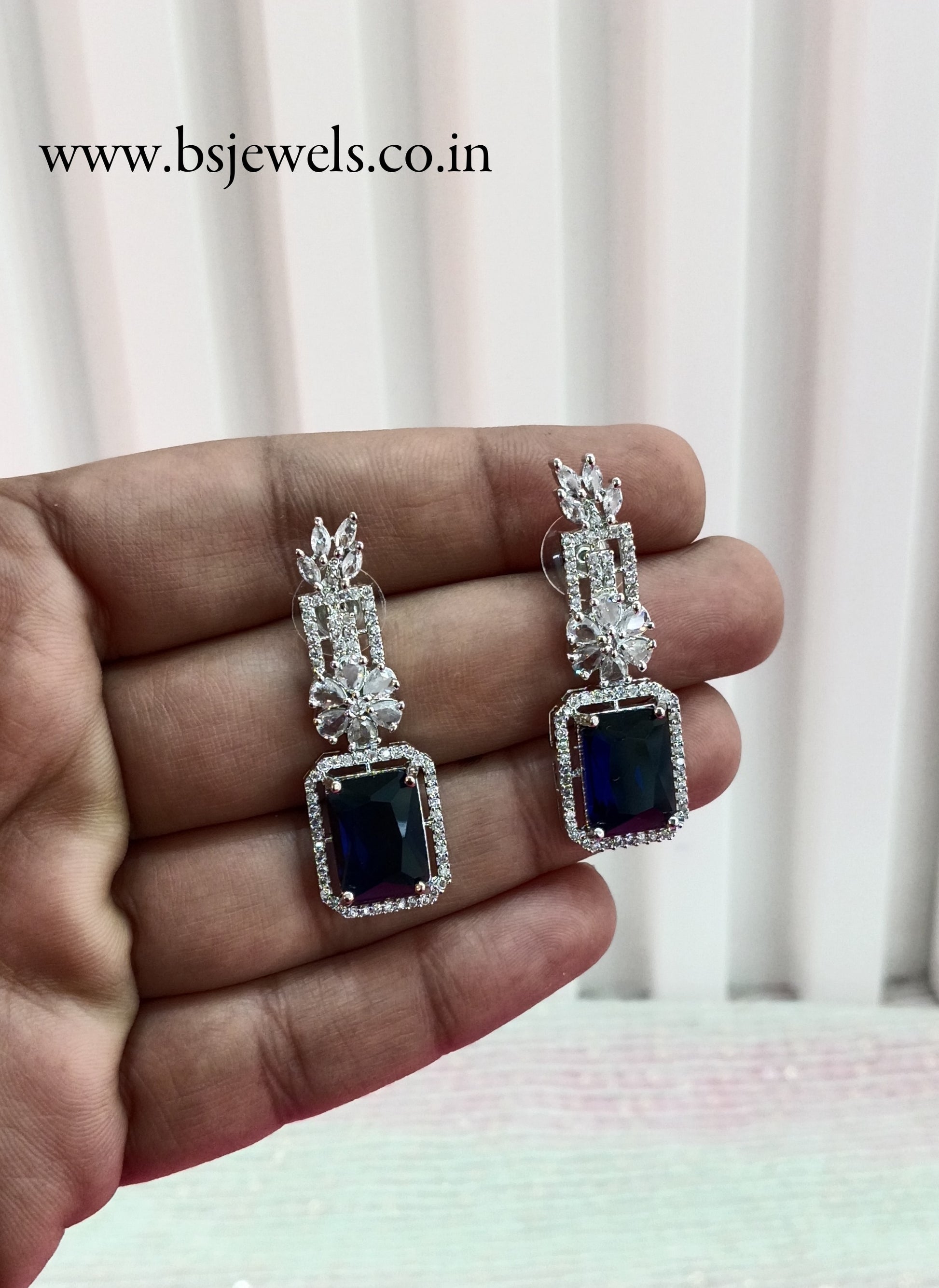 Silver Blue Cz American Diamond Earrings Prince Jewellery Online