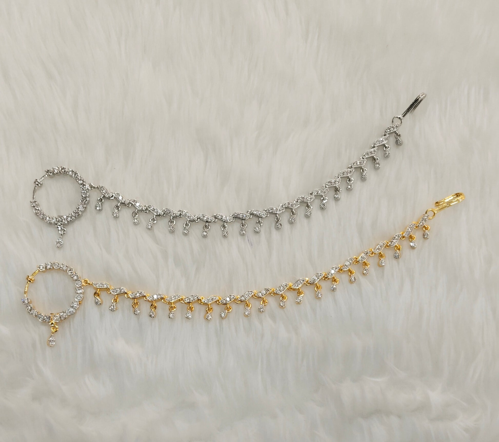 Silver Gold bridal Nath nathini Cz Stone