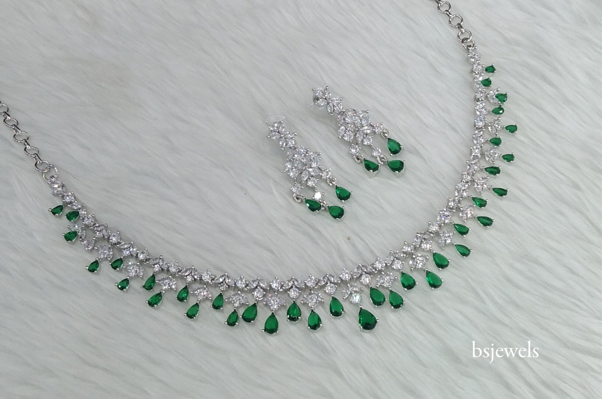 Silver Green American Diamond Ad Anita Necklace Set