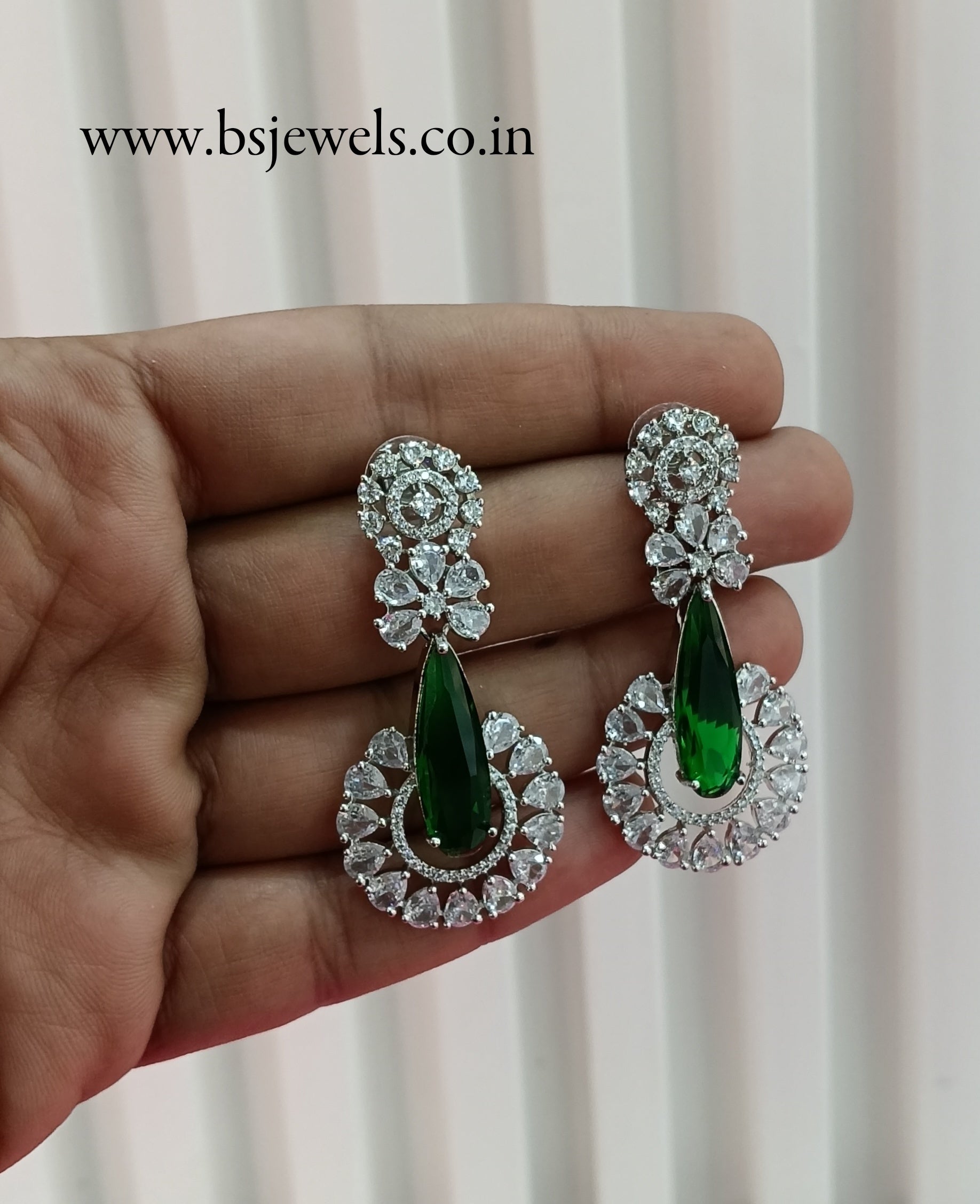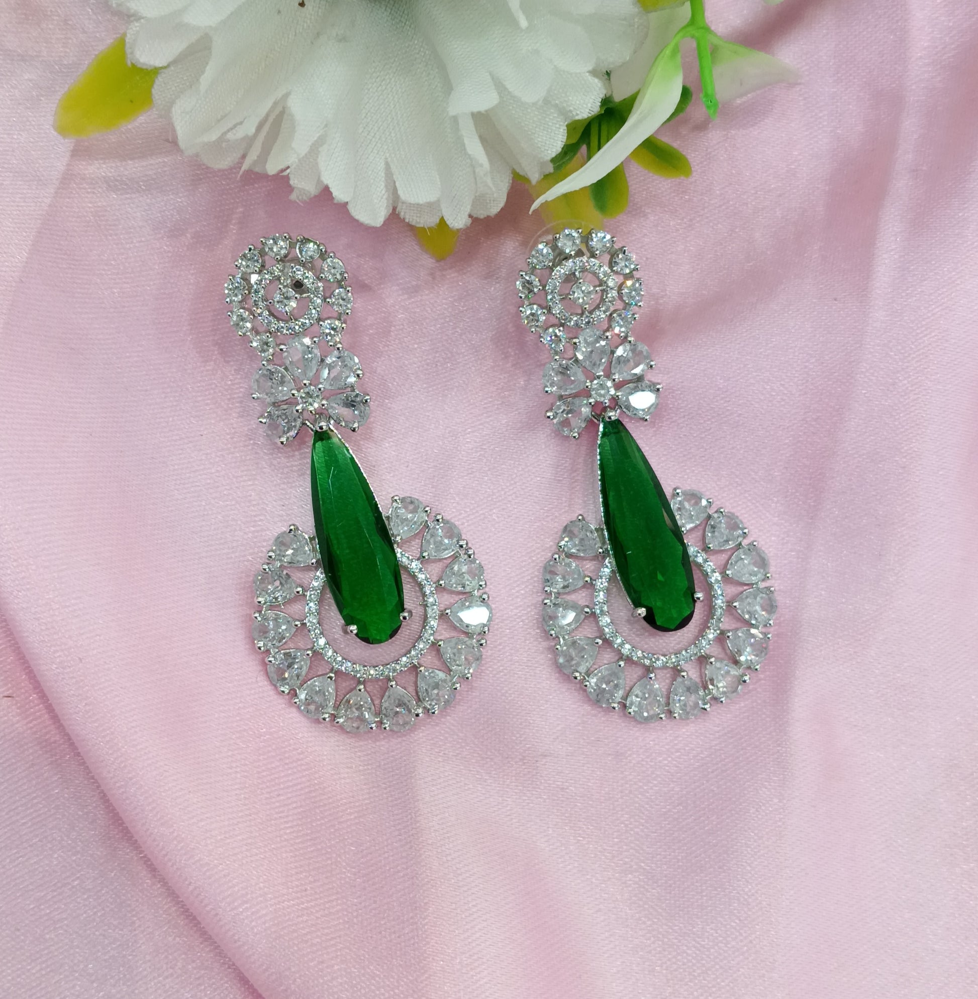 Silver Green Cz American Diamond Earrings Prince Jewellery Online