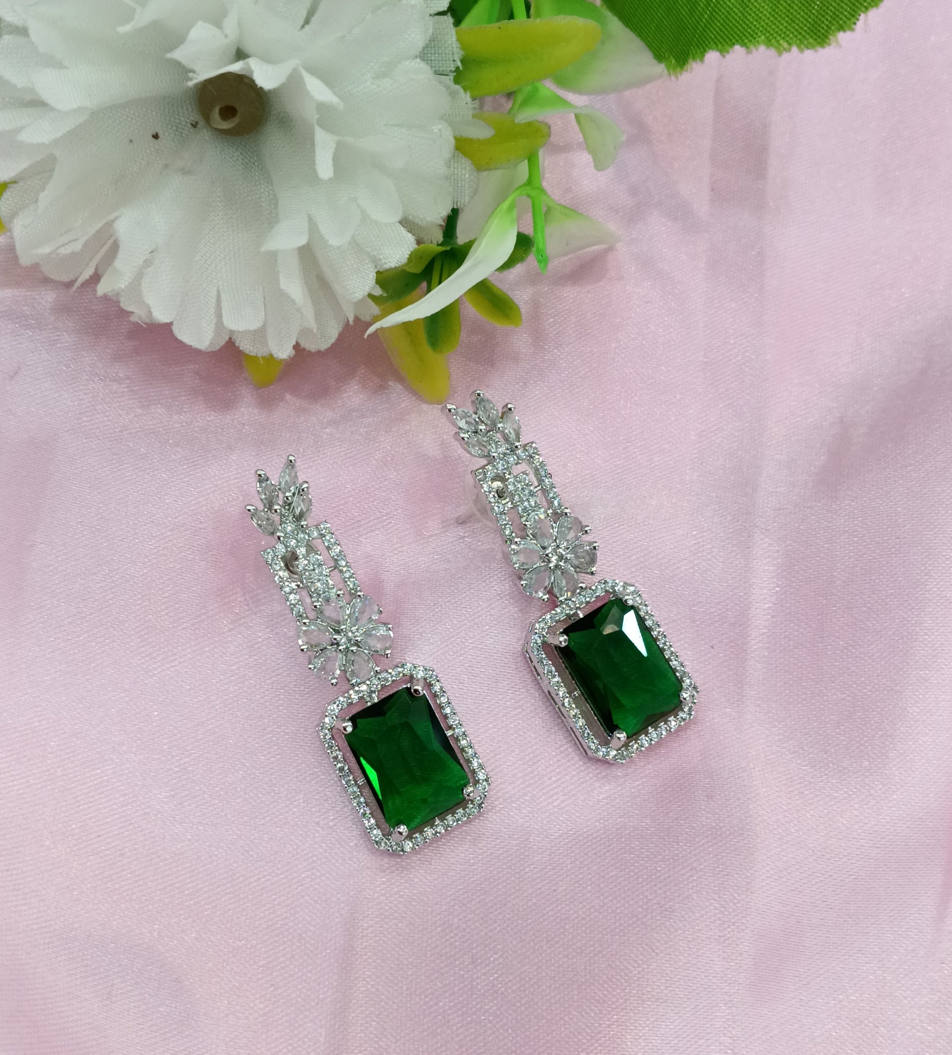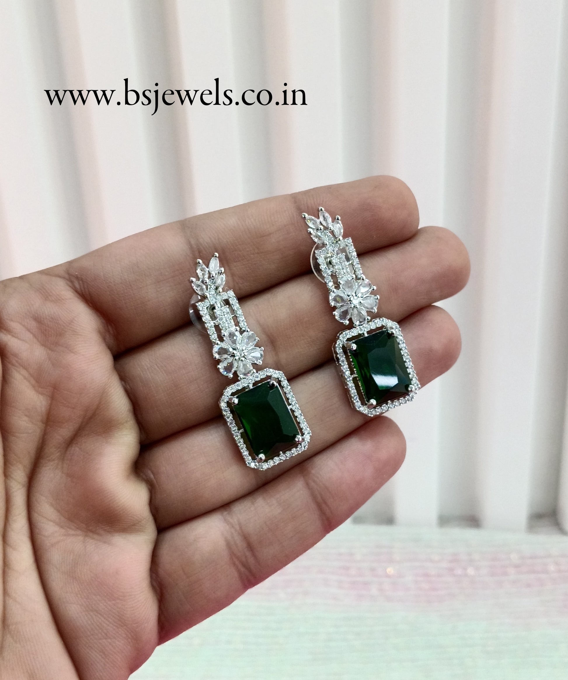 Silver Green Cz American Diamond Earrings Prince Jewellery Online