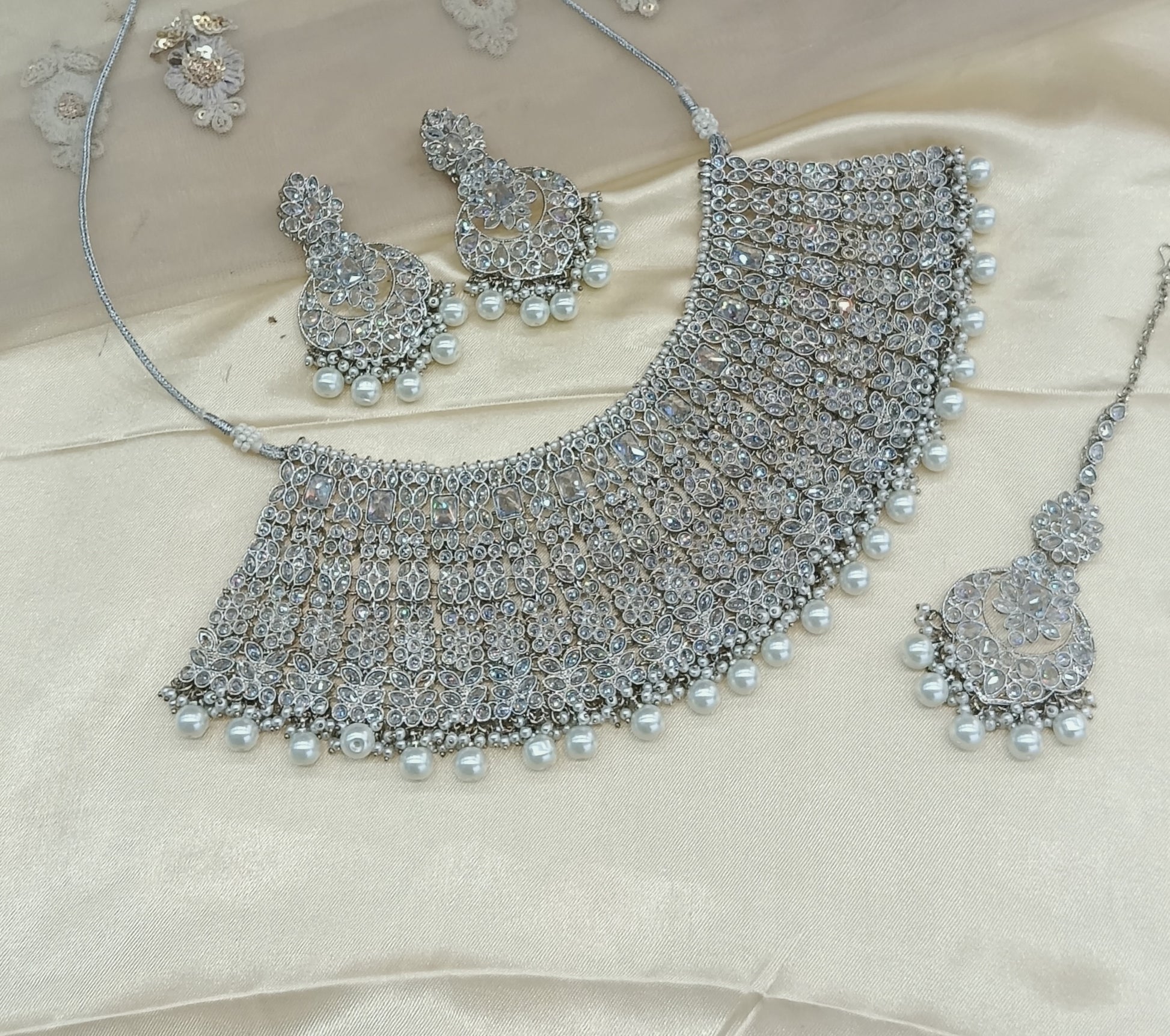 Silver Kundan 21 Karet Choker Nacklace Jewellery Sydney Set