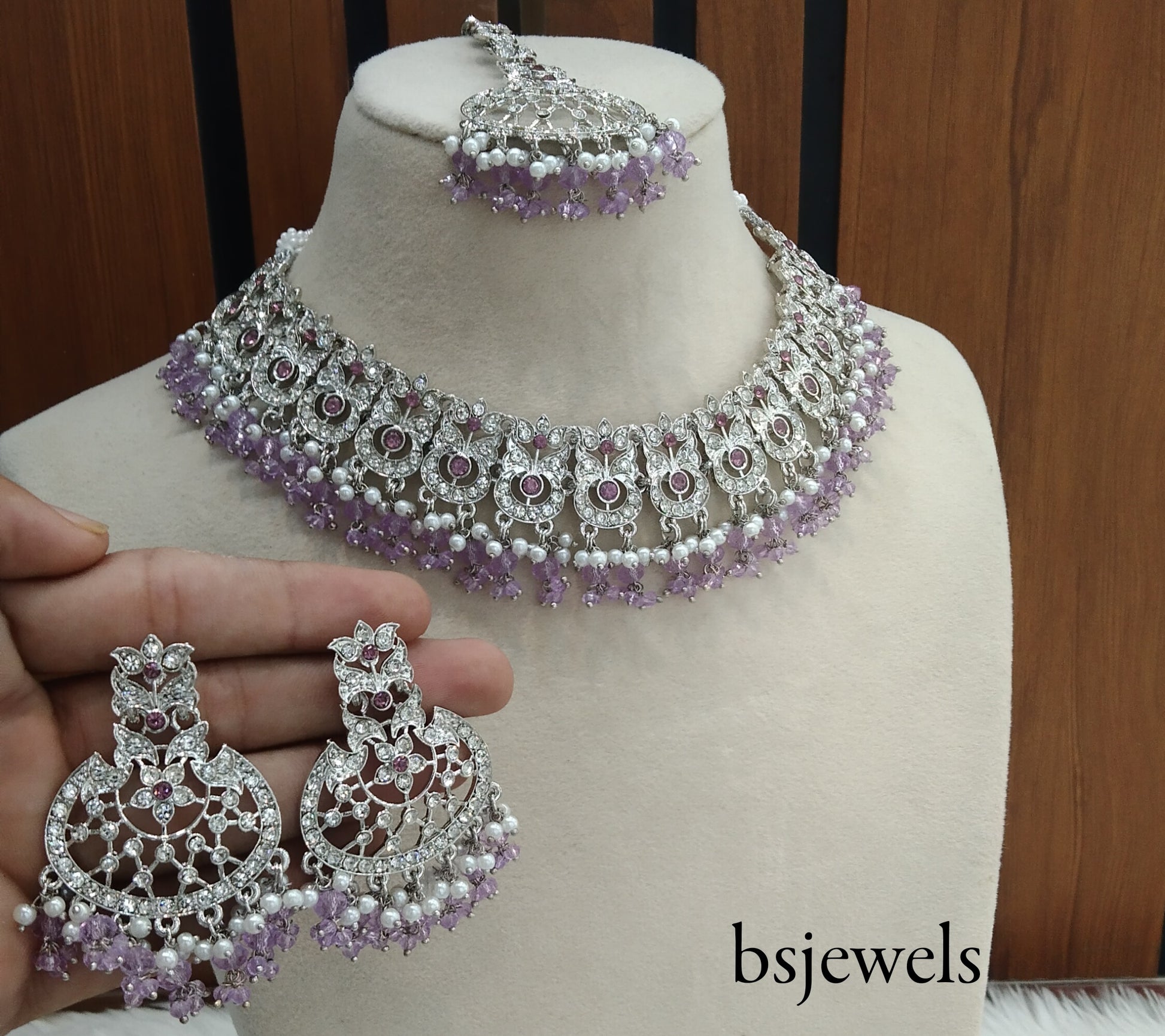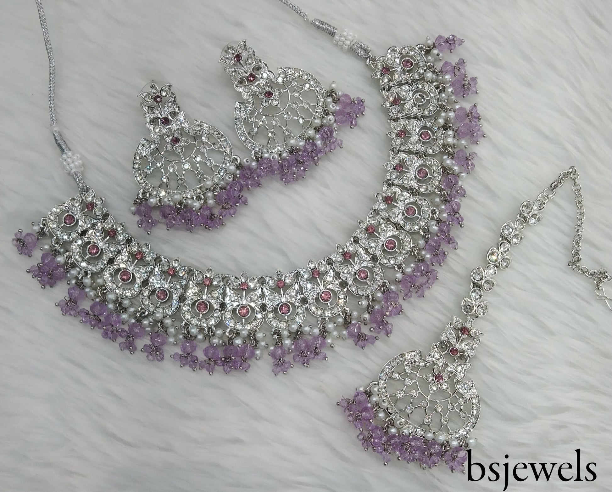 Silver Lavender Necklace Jewellery Isha Bollywood Set