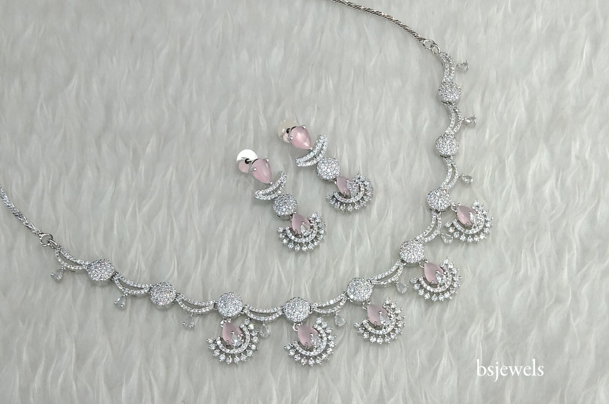 Silver Pink American Diamond Ad Navjot Necklace Set