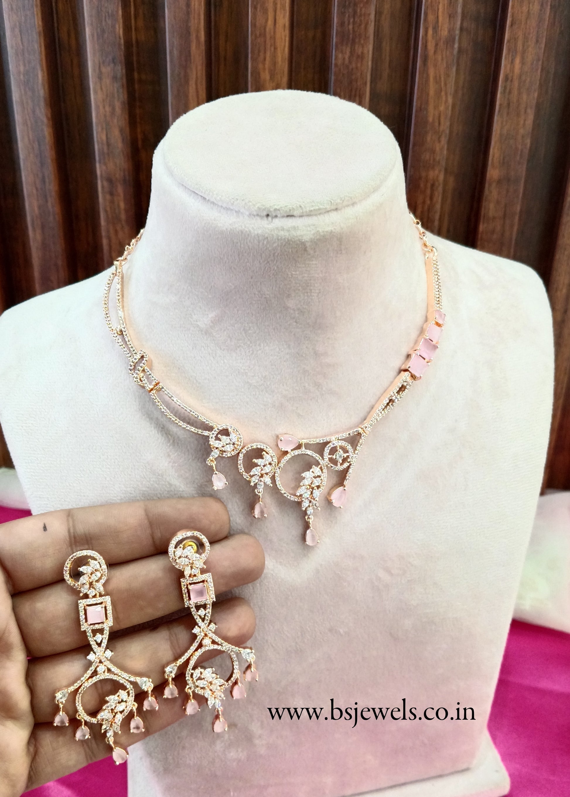 Silver Pink American Diamond Cz Necklace Jewellery keller Set