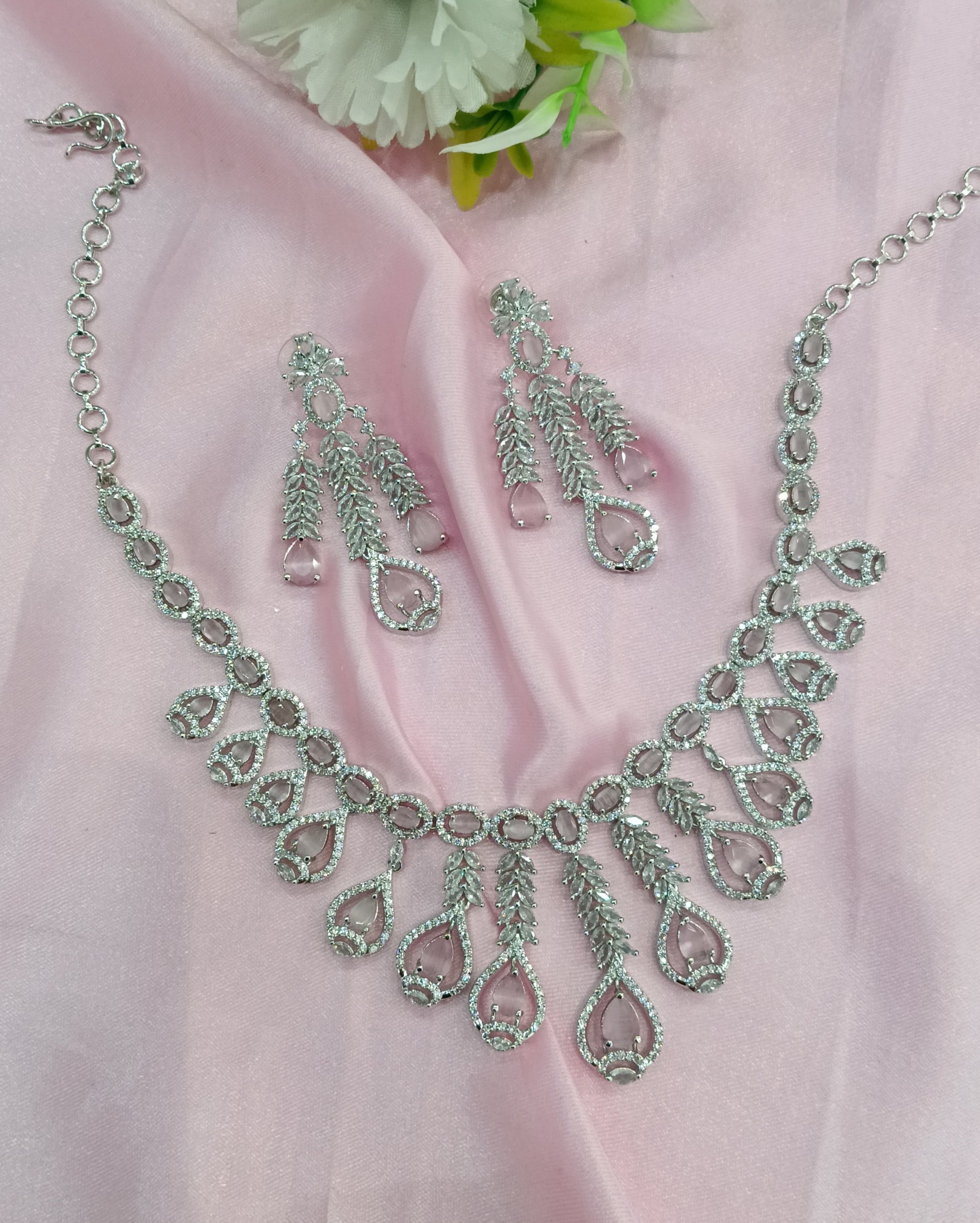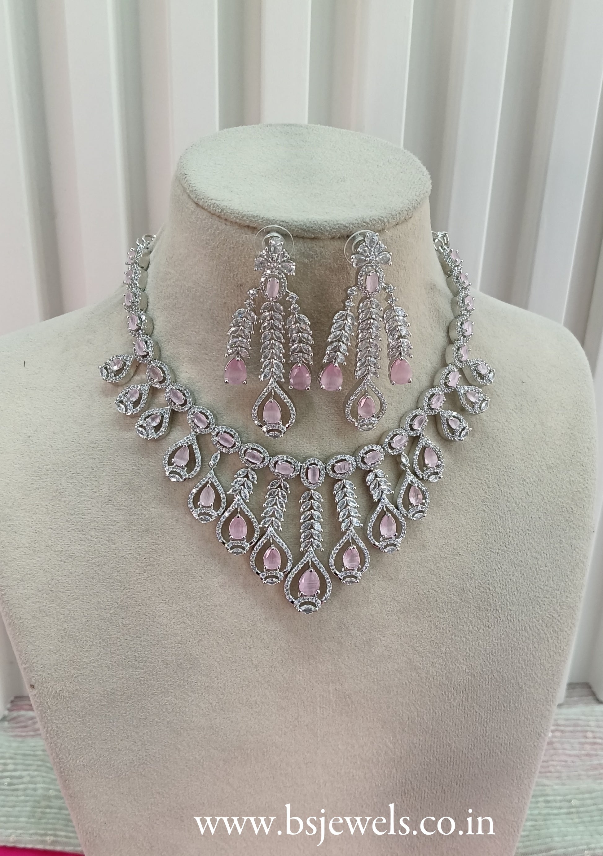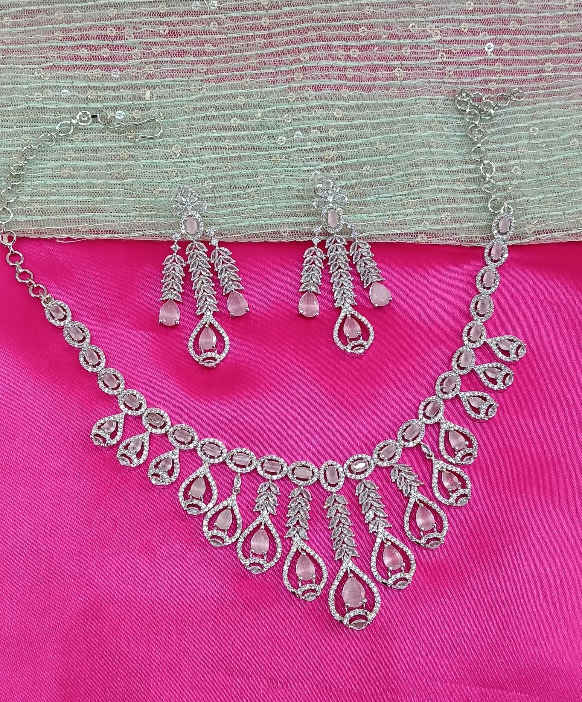 Silver Pink American Diamond Cz Necklace Jewellery Micki Set