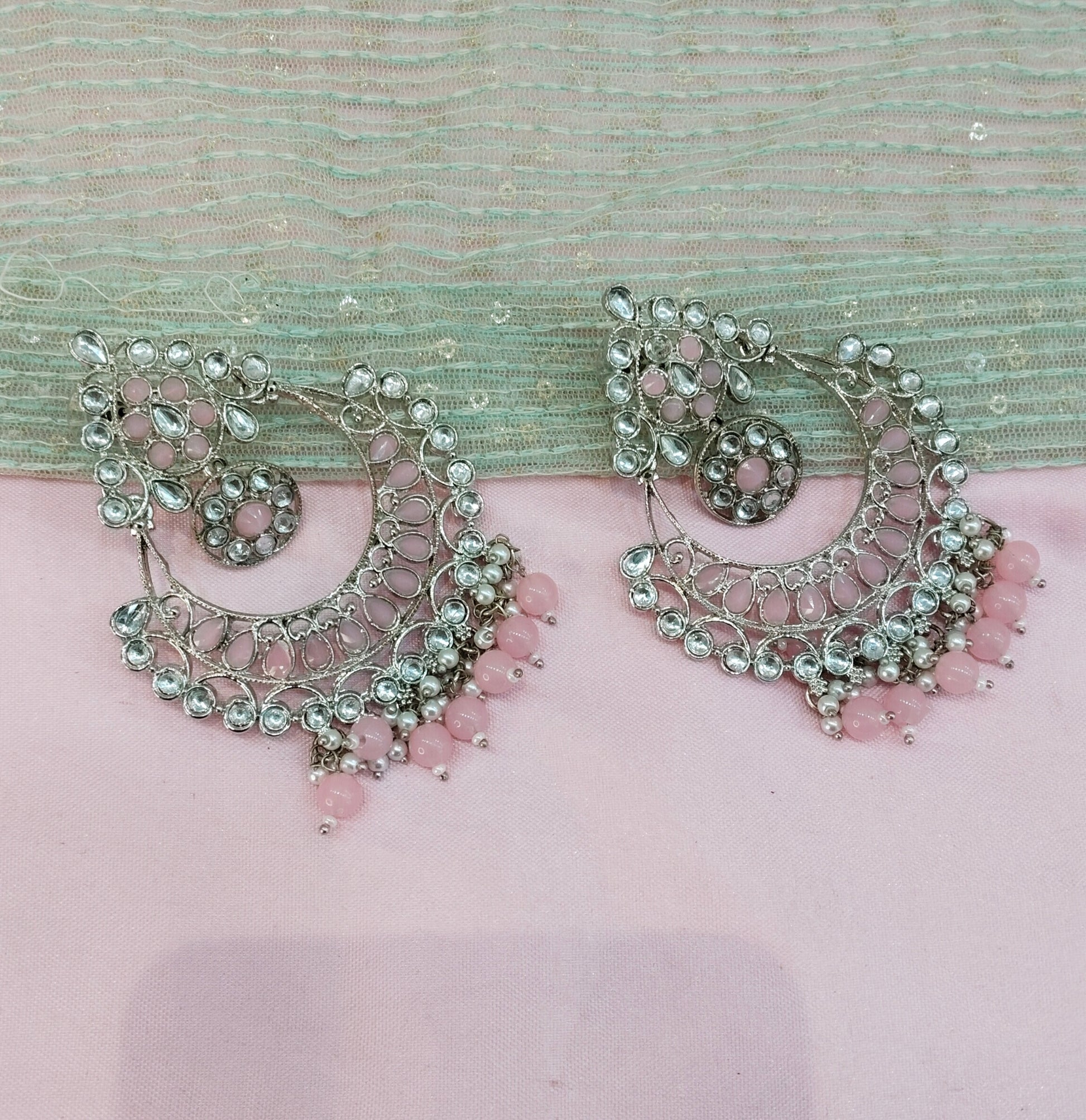Silver Pink Bollywood Rohit Earrings