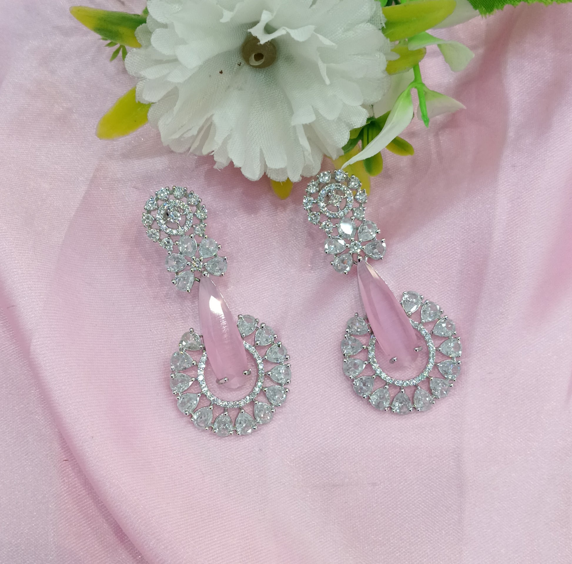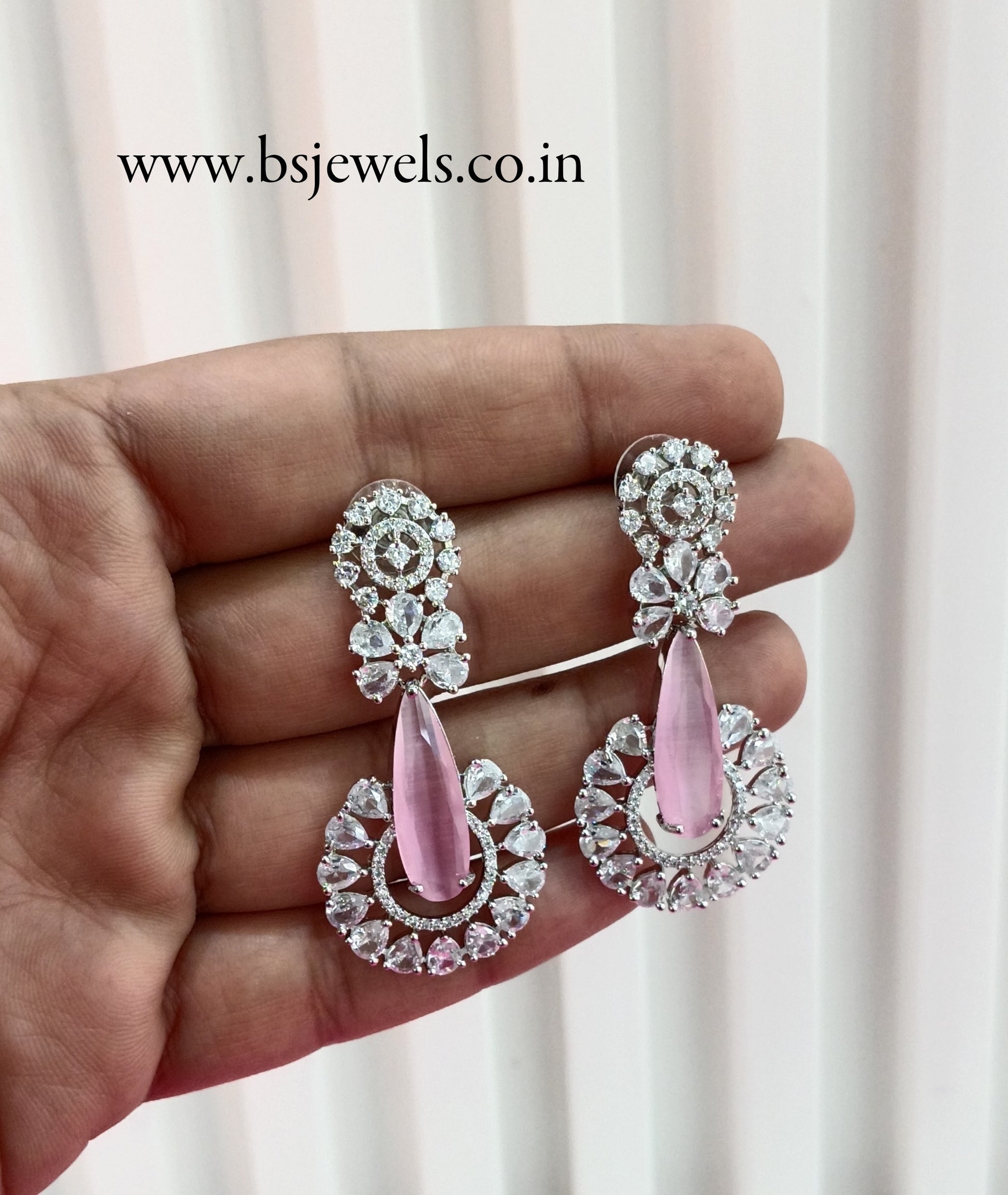 Silver Pink Cz American Diamond Earrings Prince Jewellery Online