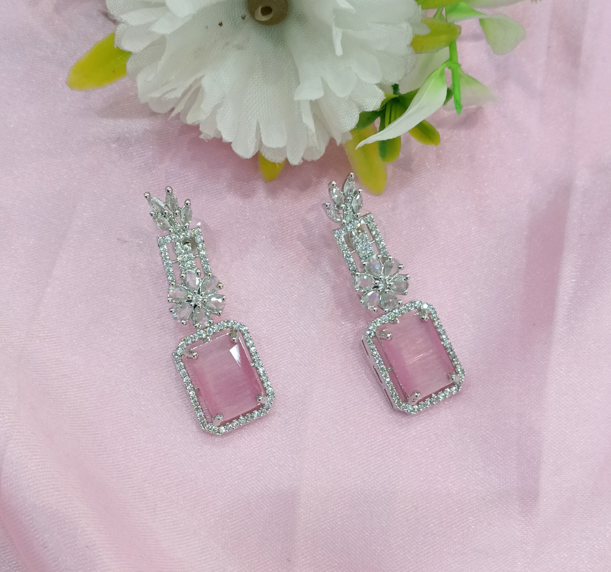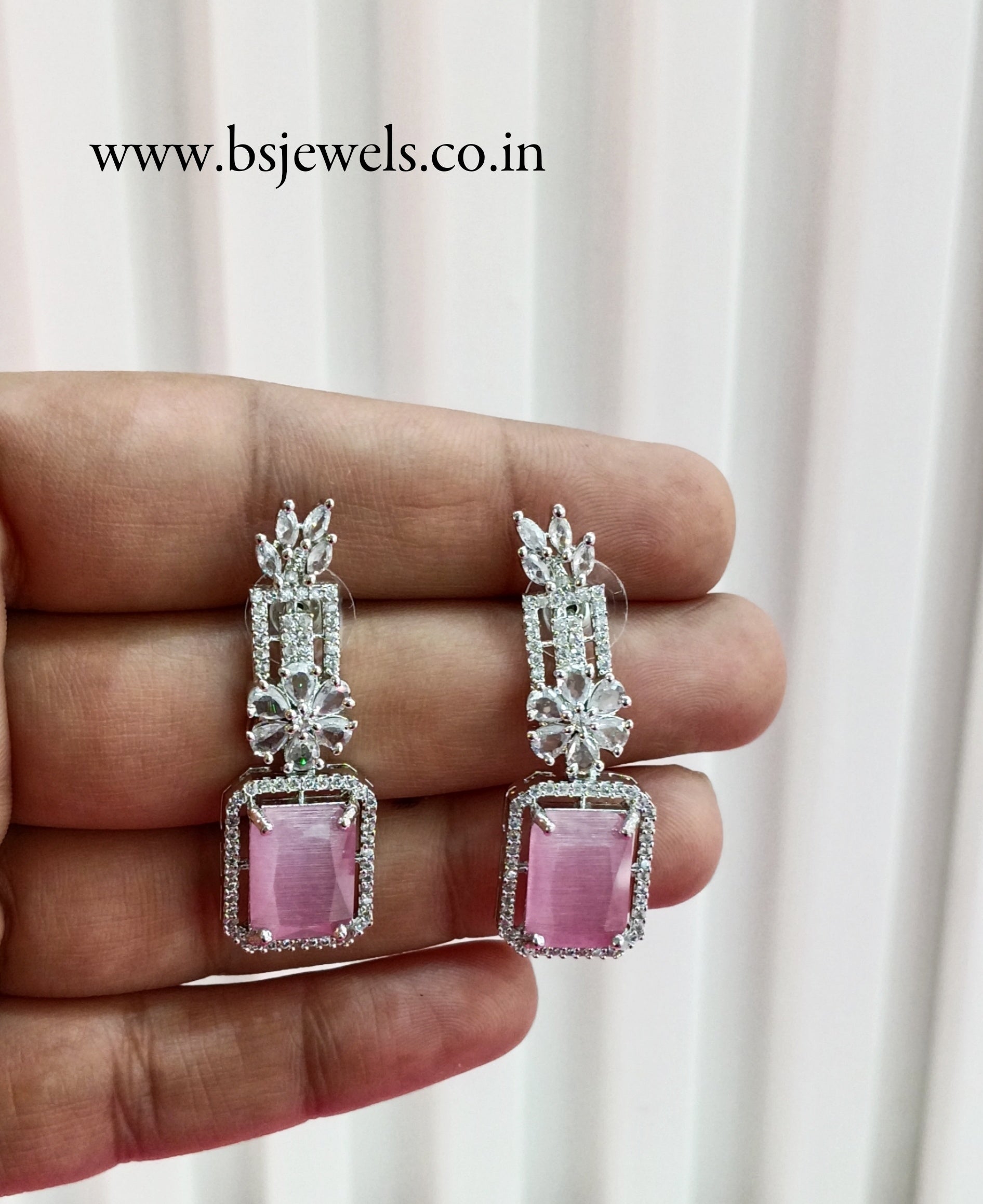 Silver Pink Cz American Diamond Earrings Prince Jewellery Online