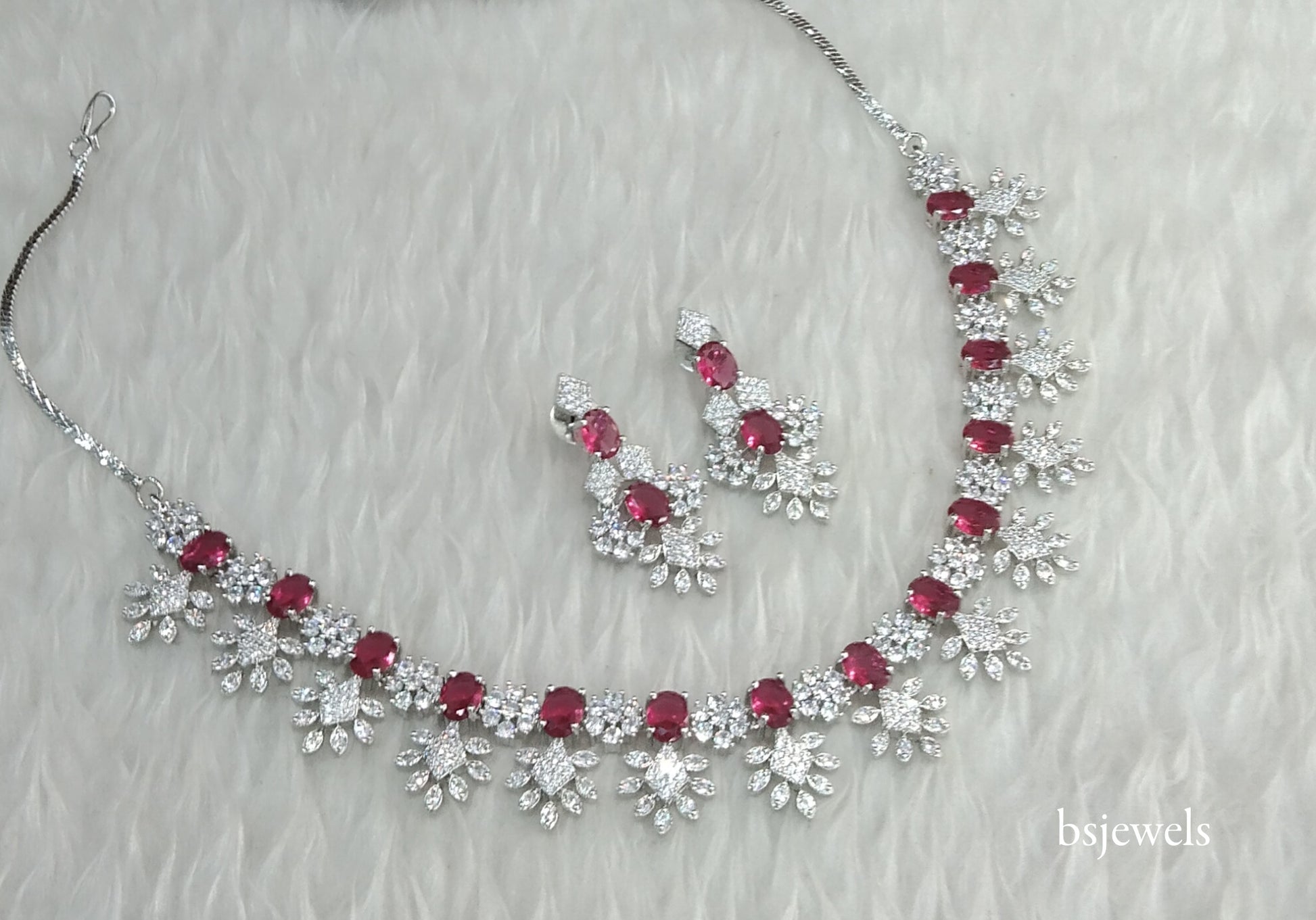 Silver Ruby American Diamond Ad Navjot Necklace Set
