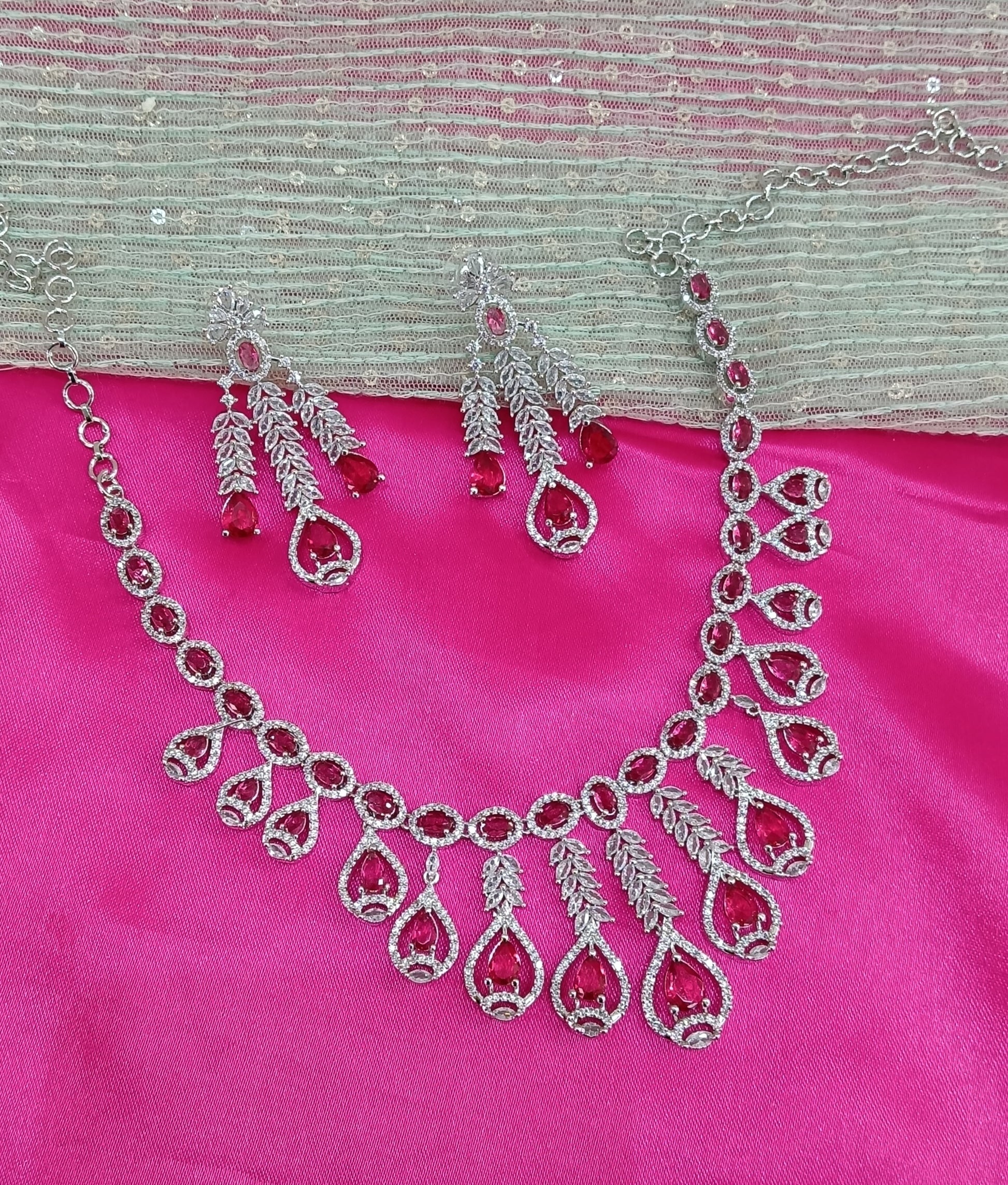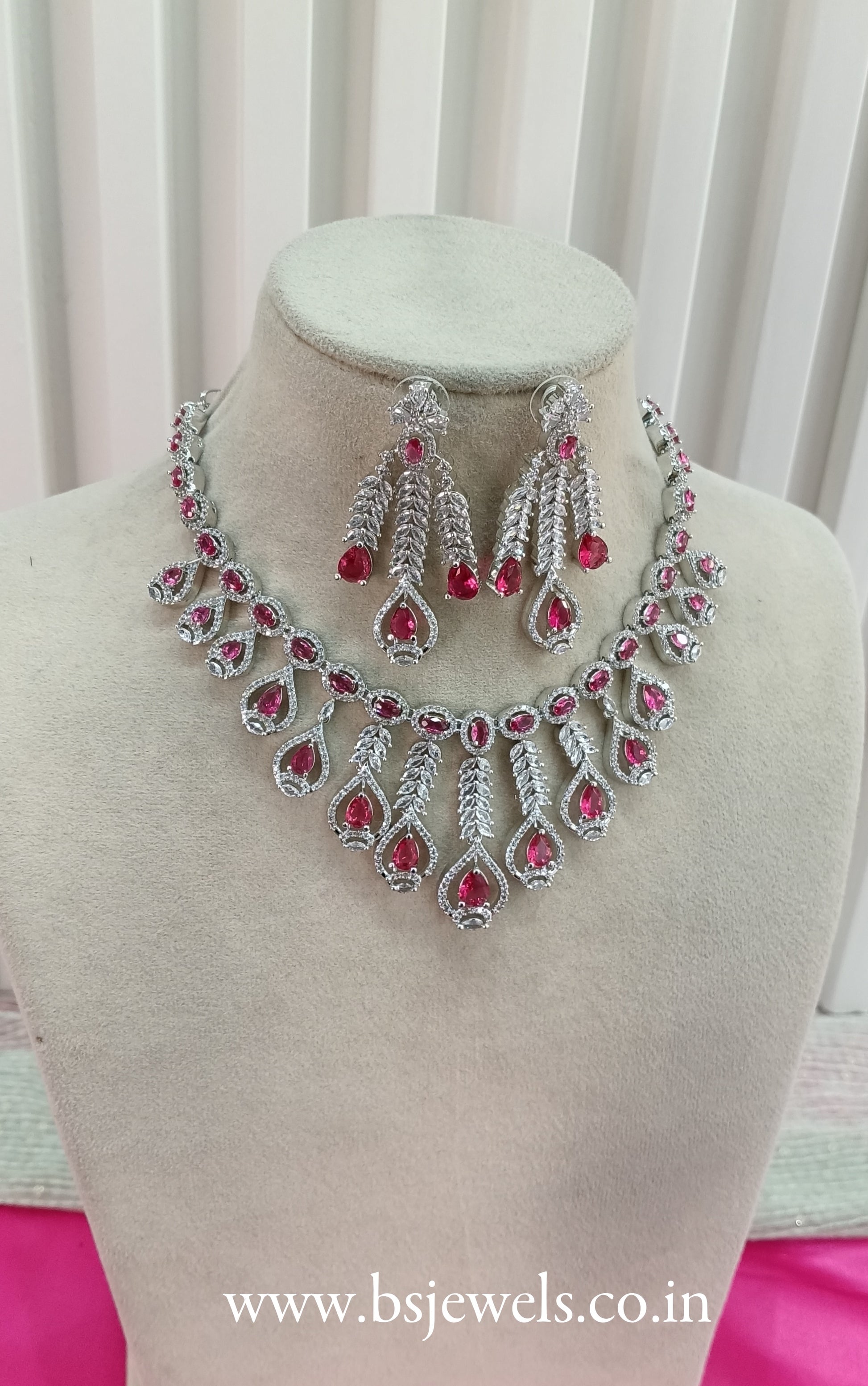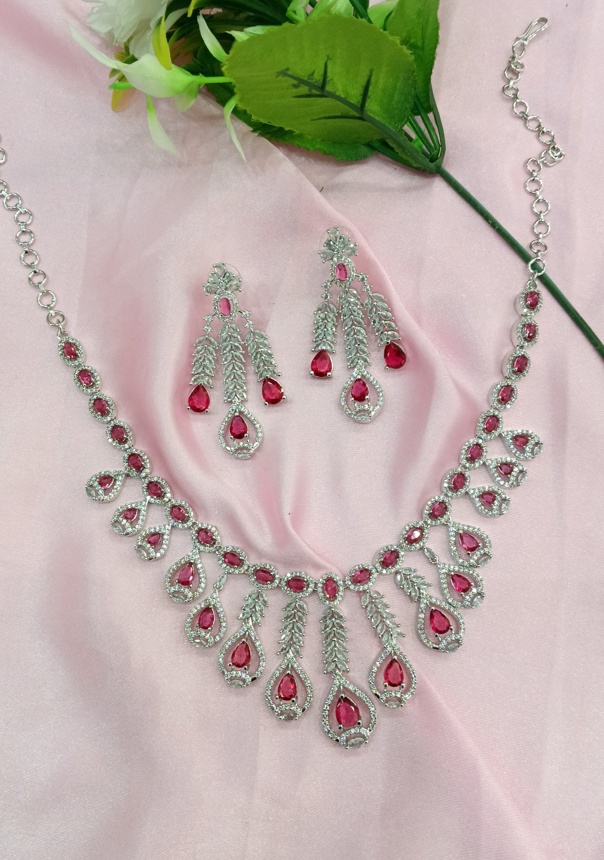 Silver Ruby American Diamond Cz Necklace Jewellery Micki Set