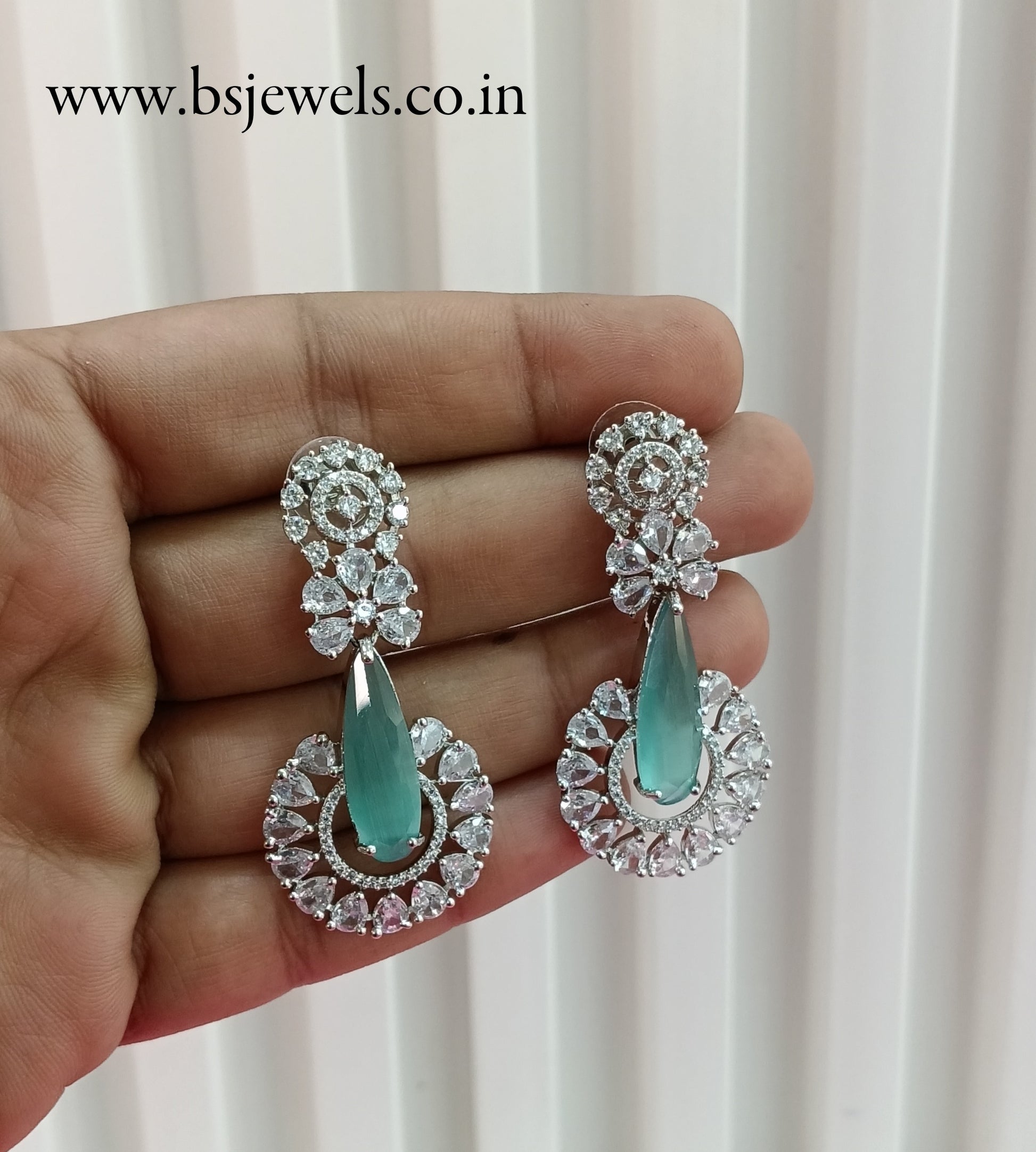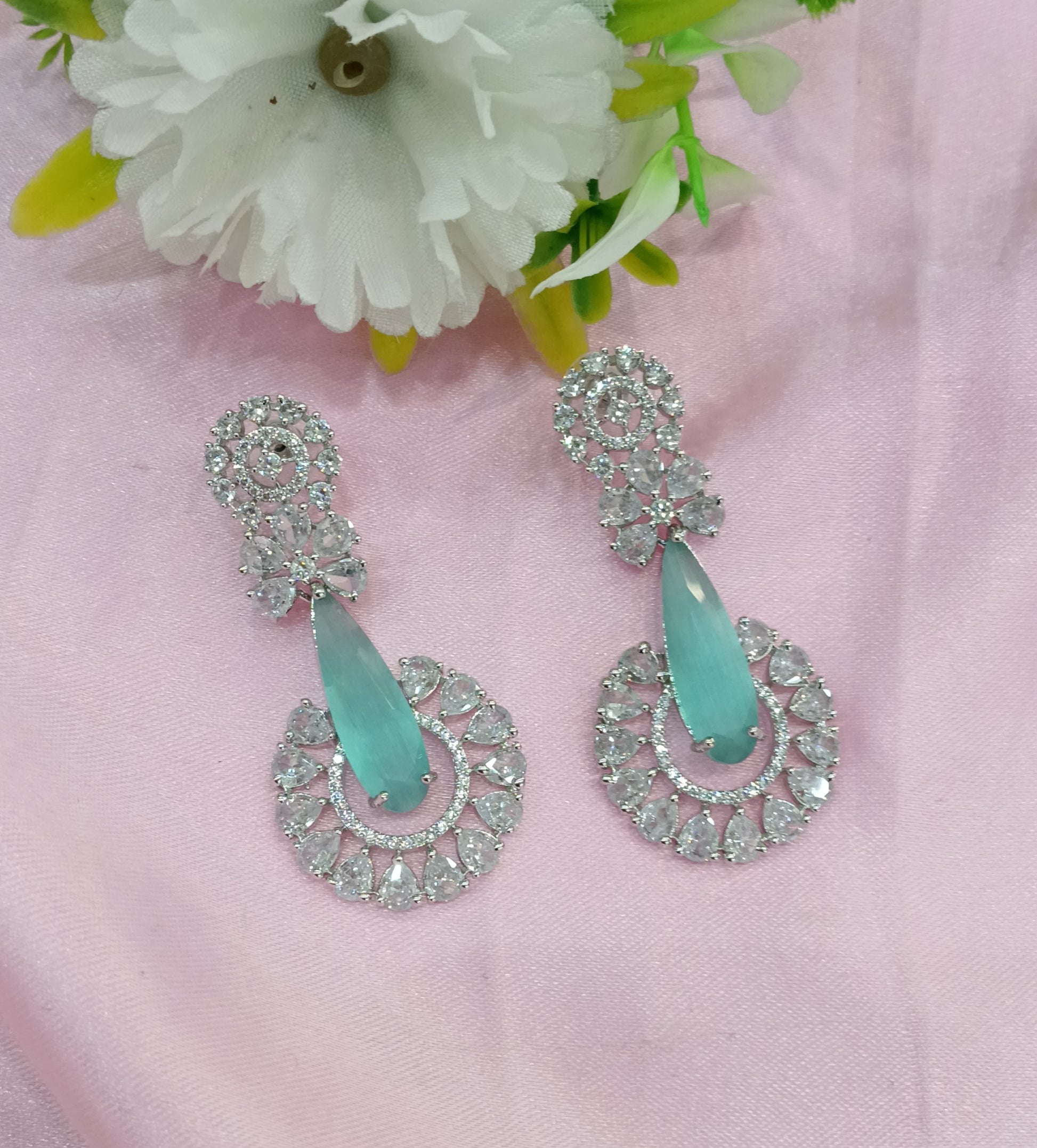 Silver Sea Green Cz American Diamond Earrings Prince Jewellery Online