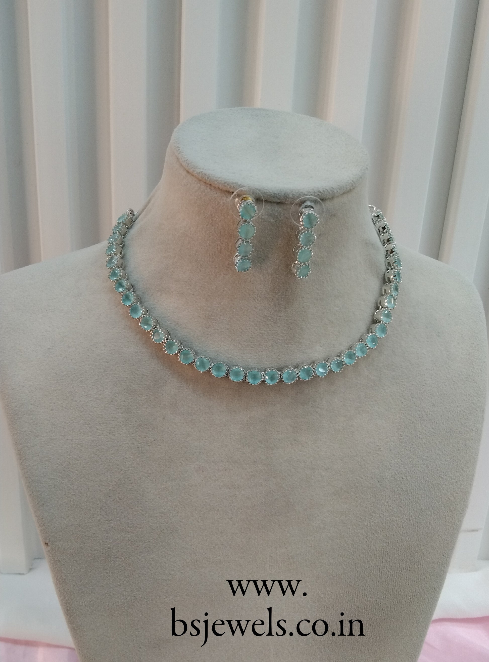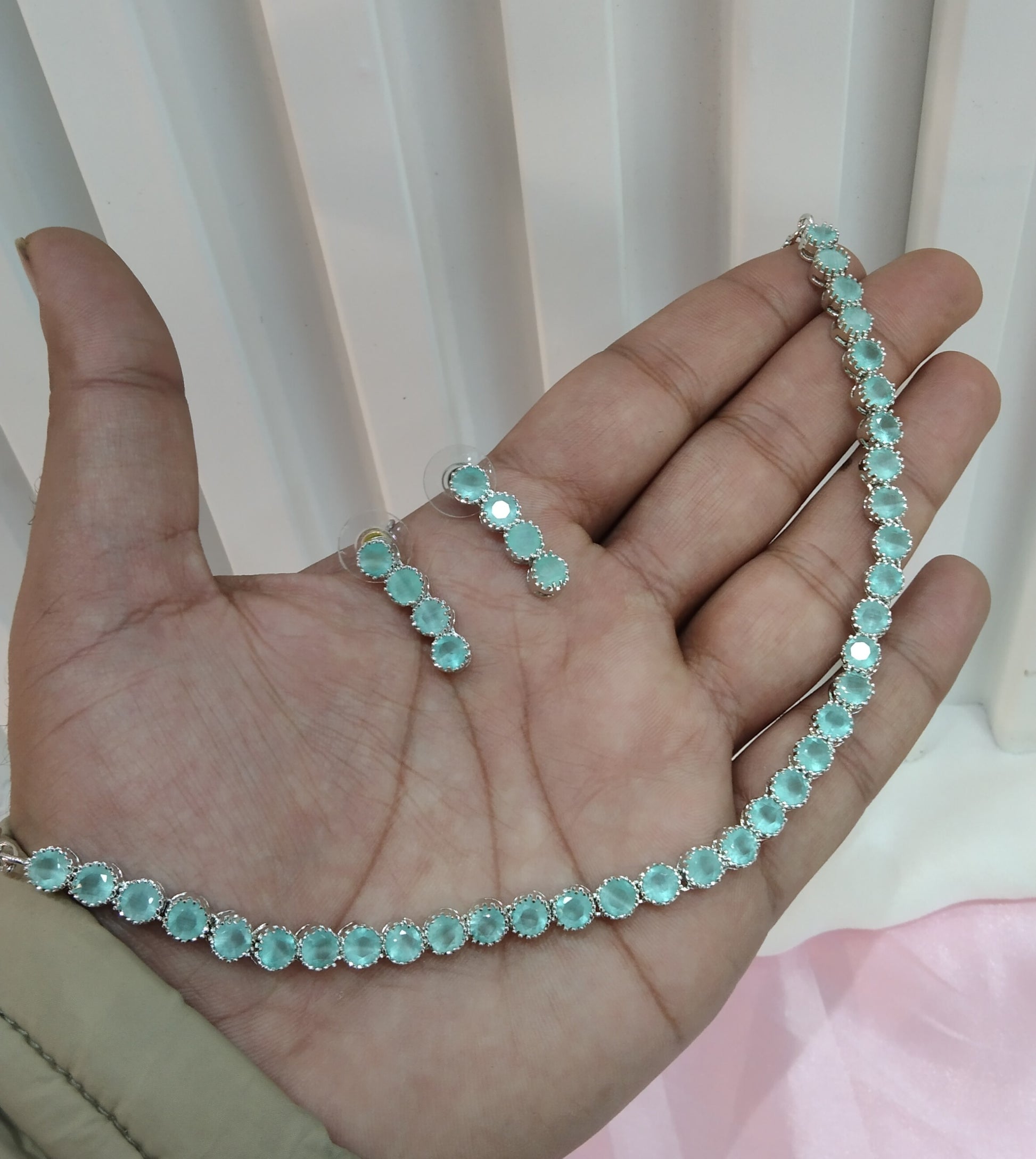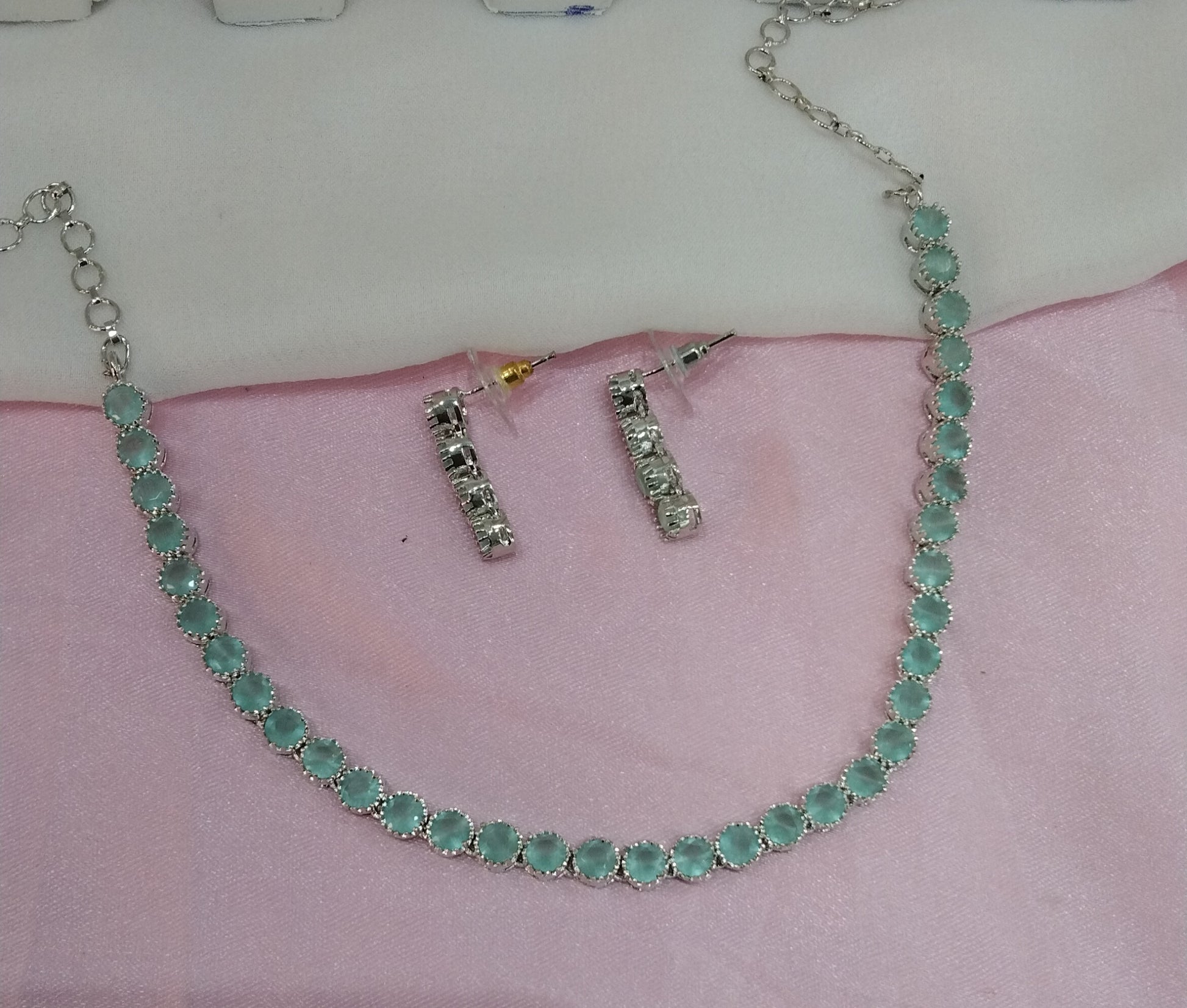 Silver Sea Green CZ Necklace Jewellery Dans Set