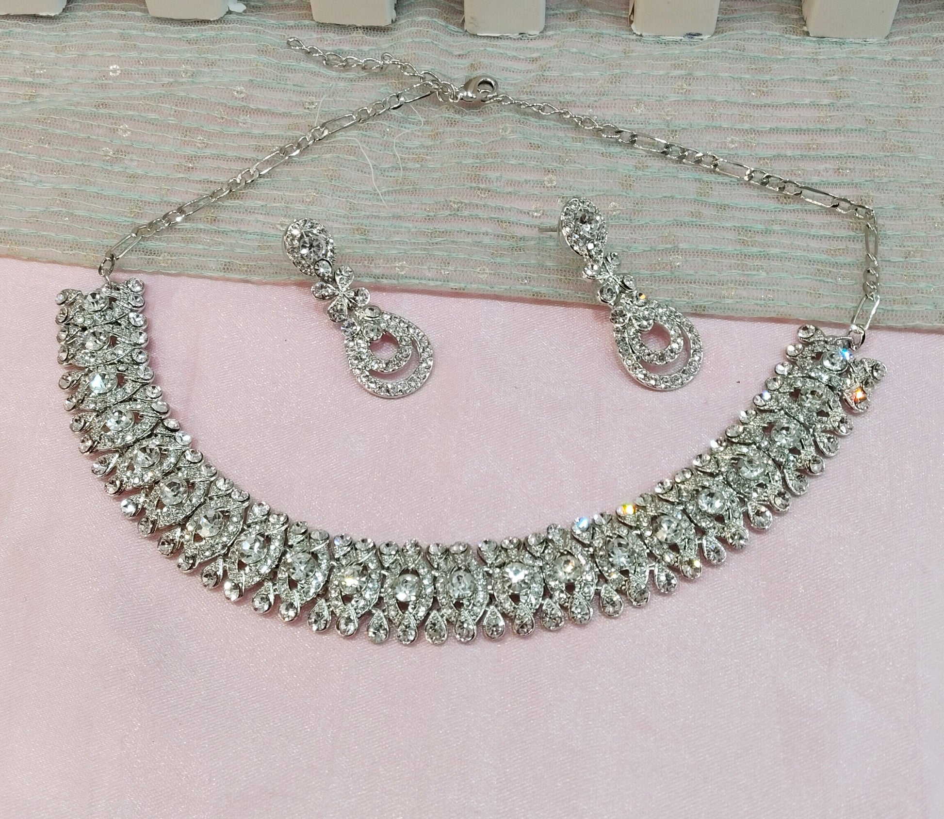 Silver White Necklace Set Ponting Jewellery