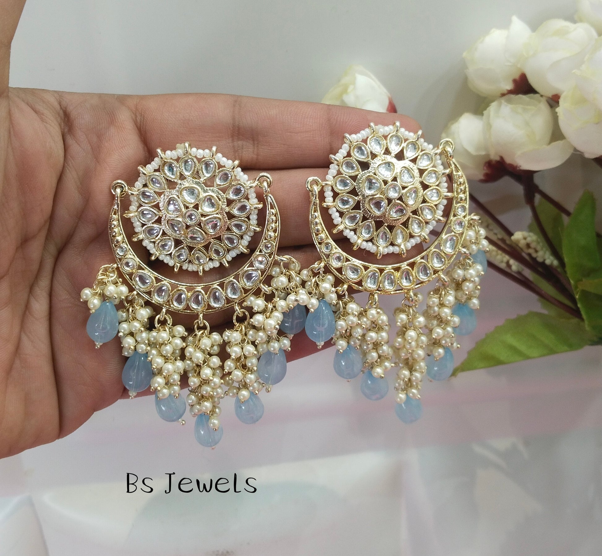 Sky Blue Kundan Admin Bollywood Earrings
