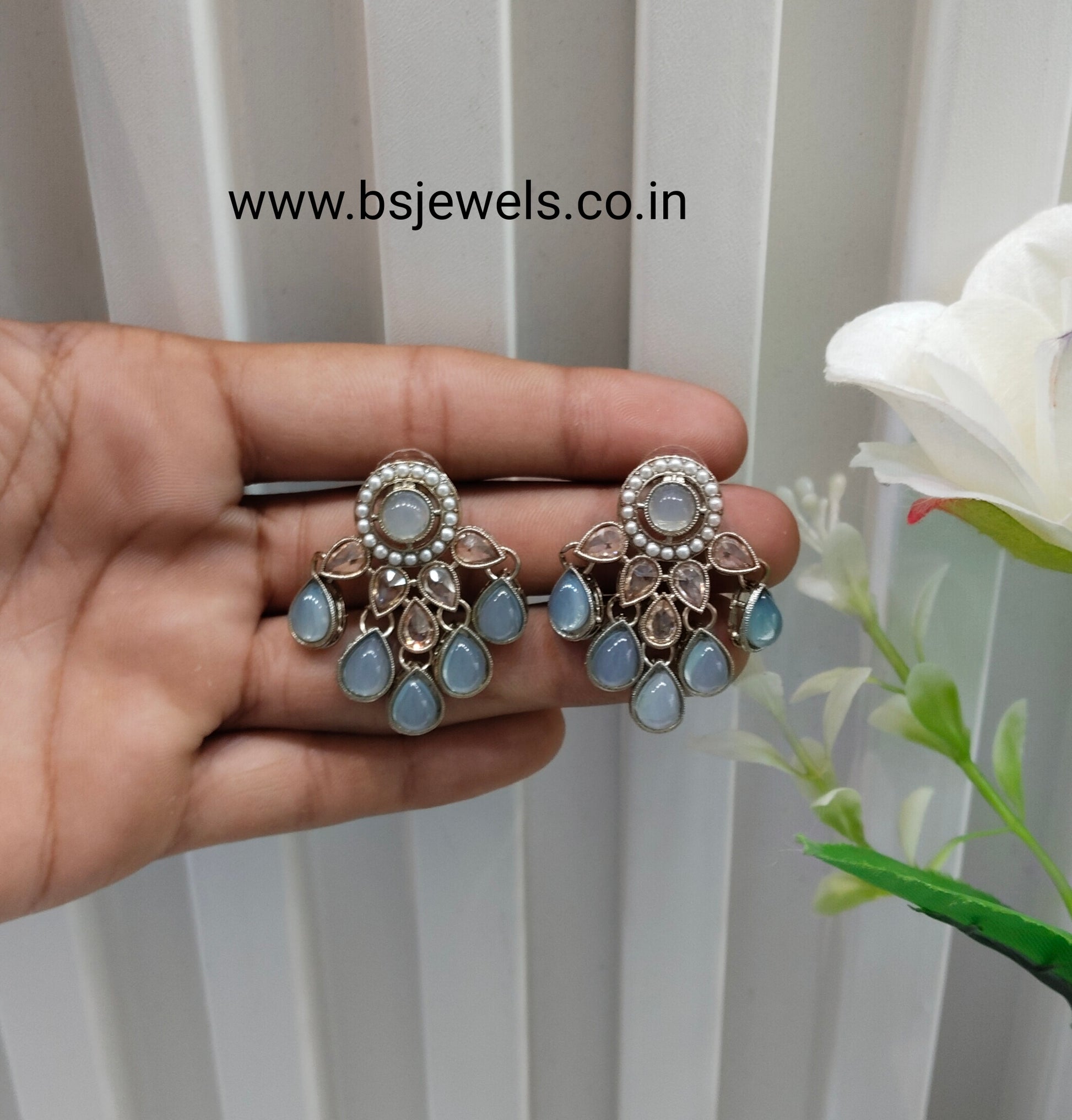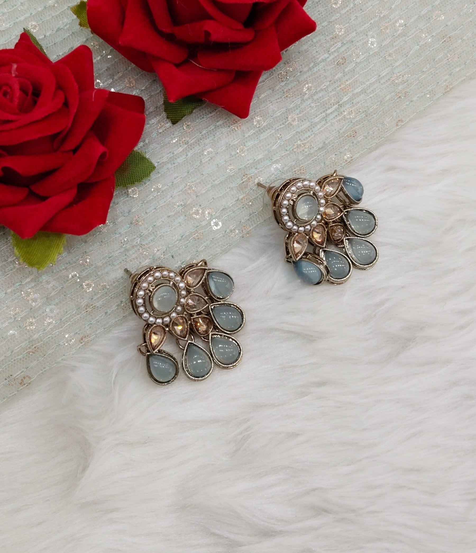 Sky Blue Antique Gold Bollywood Rachin Earrings