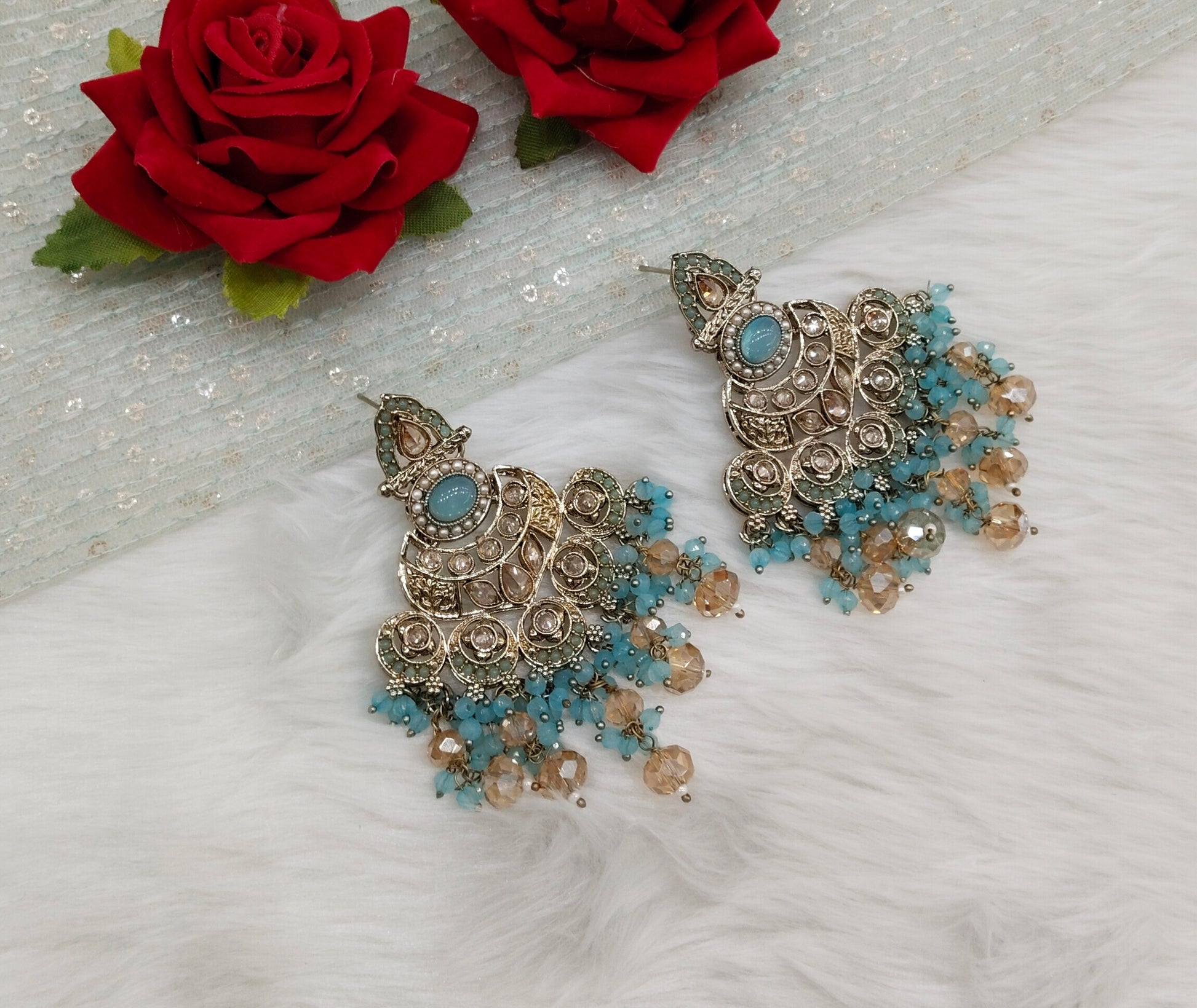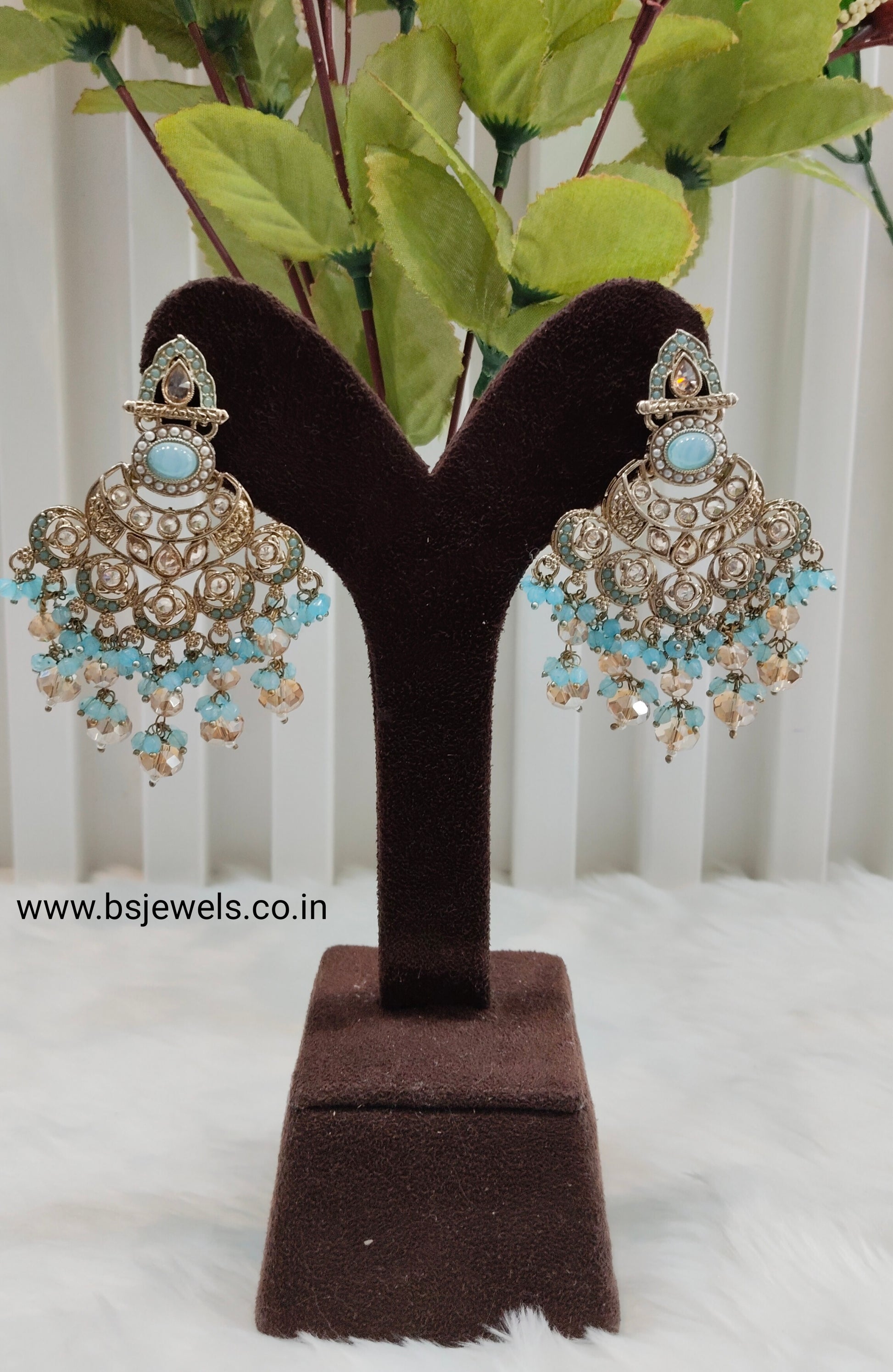Sky Blue Antique Gold Bollywood Ruturaj Earrings