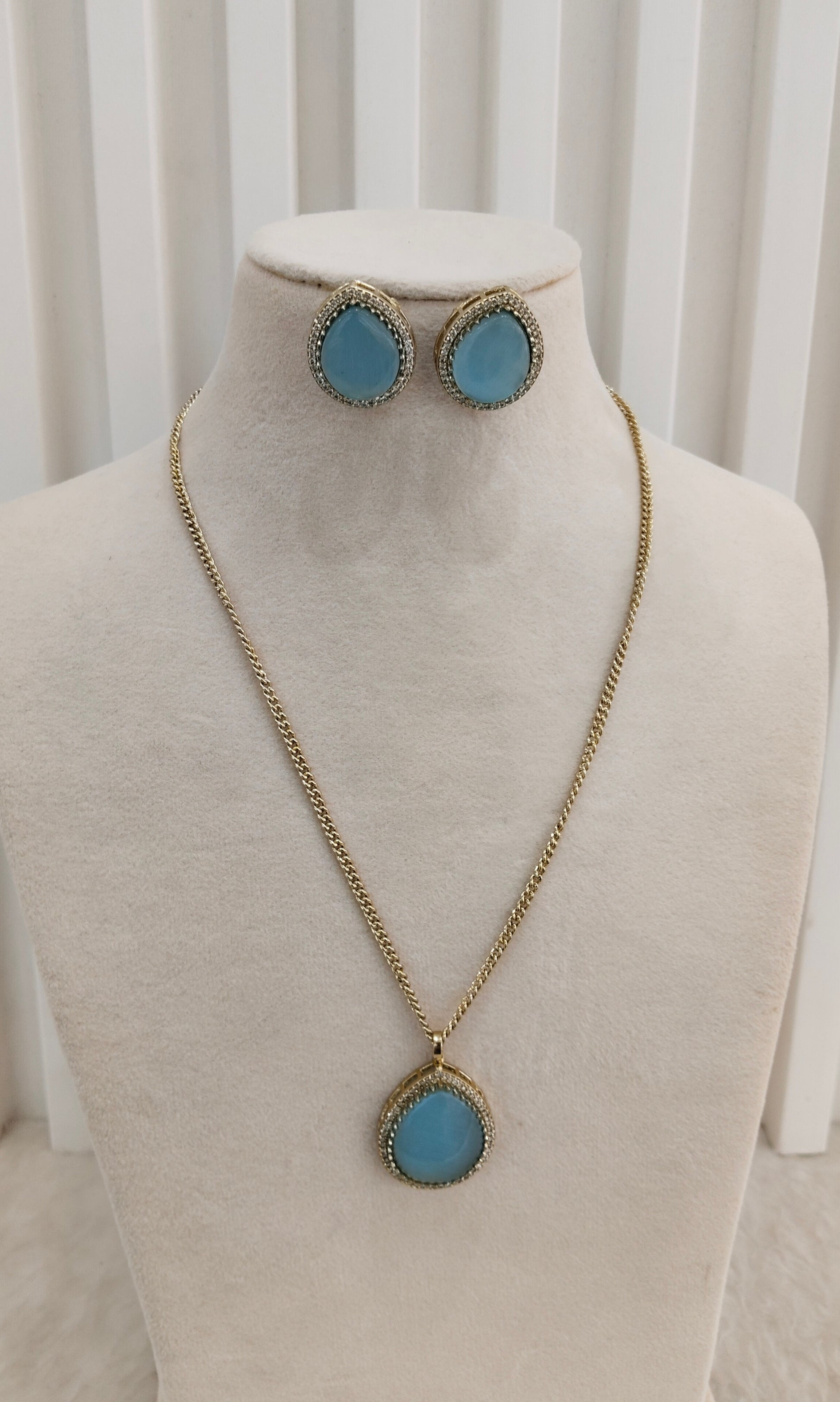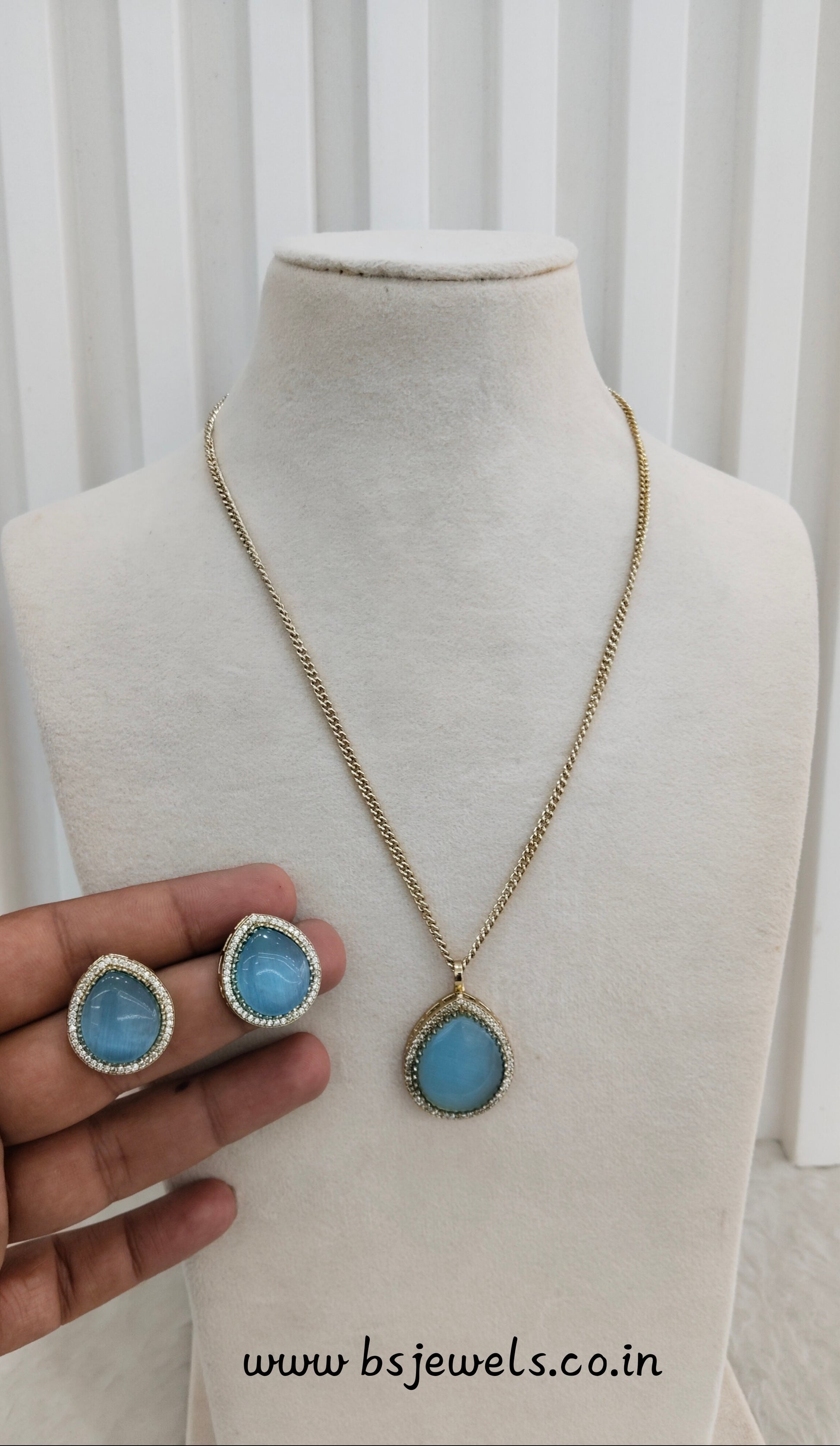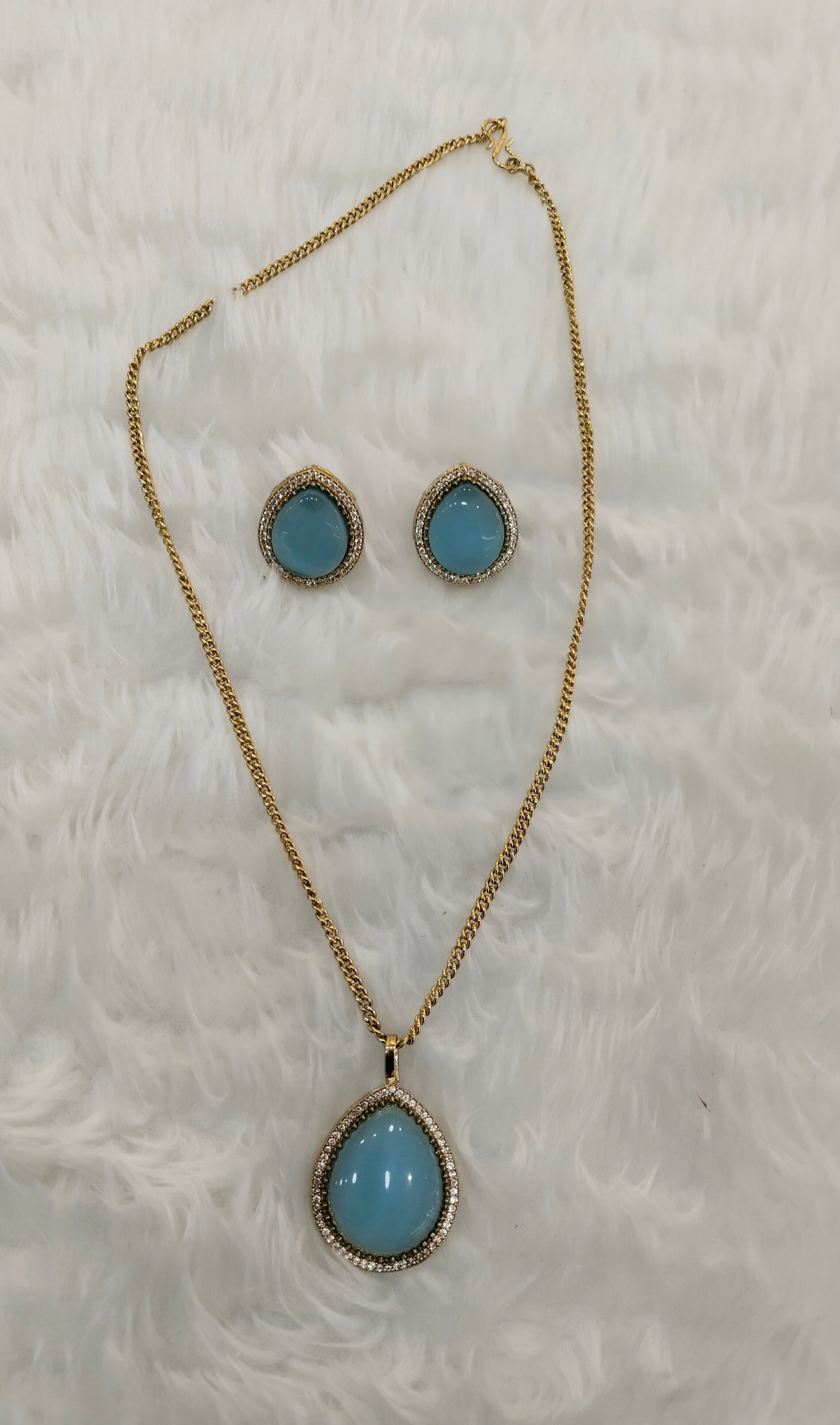 Sky Blue Gold Moissanite Kundan Necklace Jewellery Avenger Chain Set
