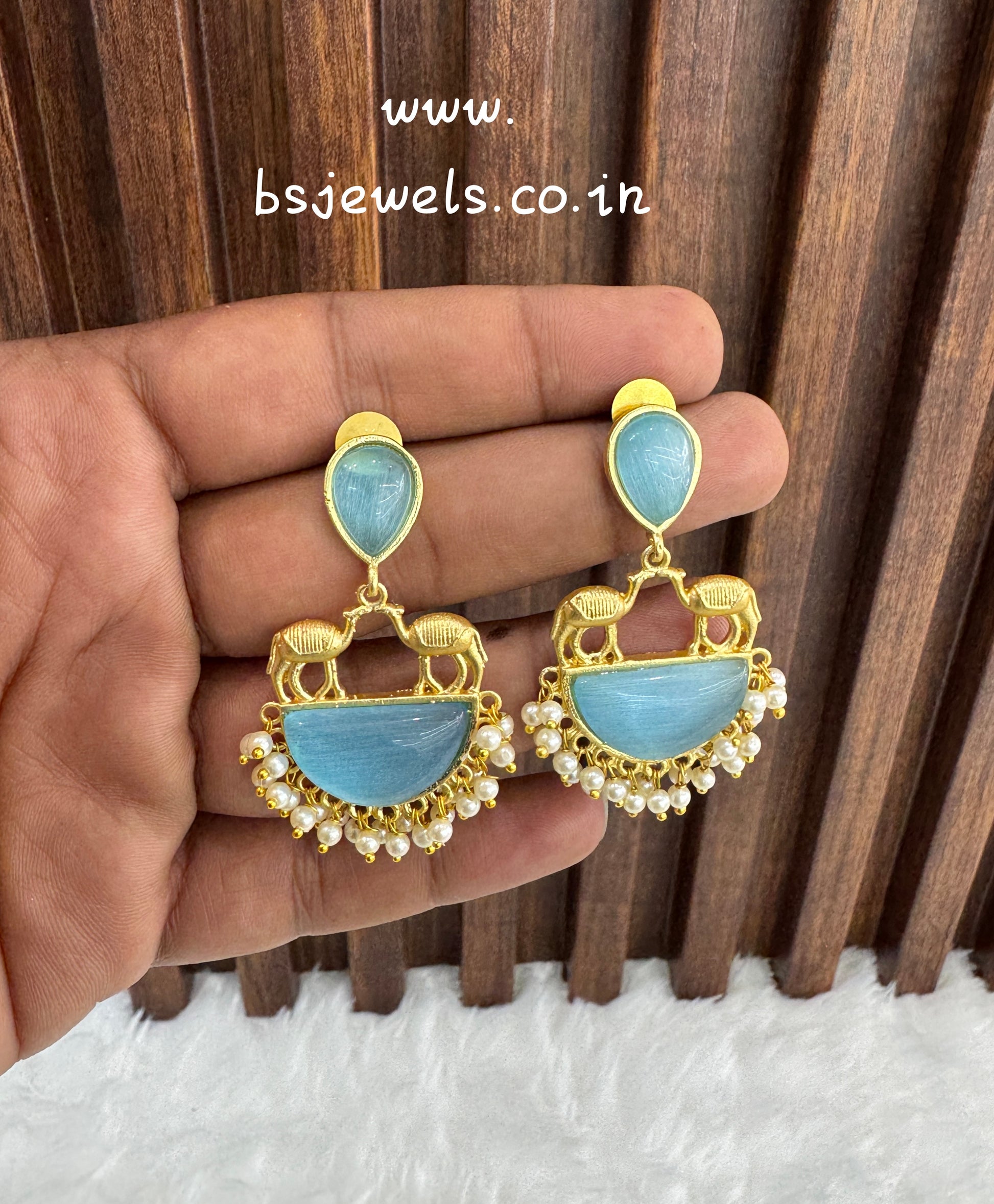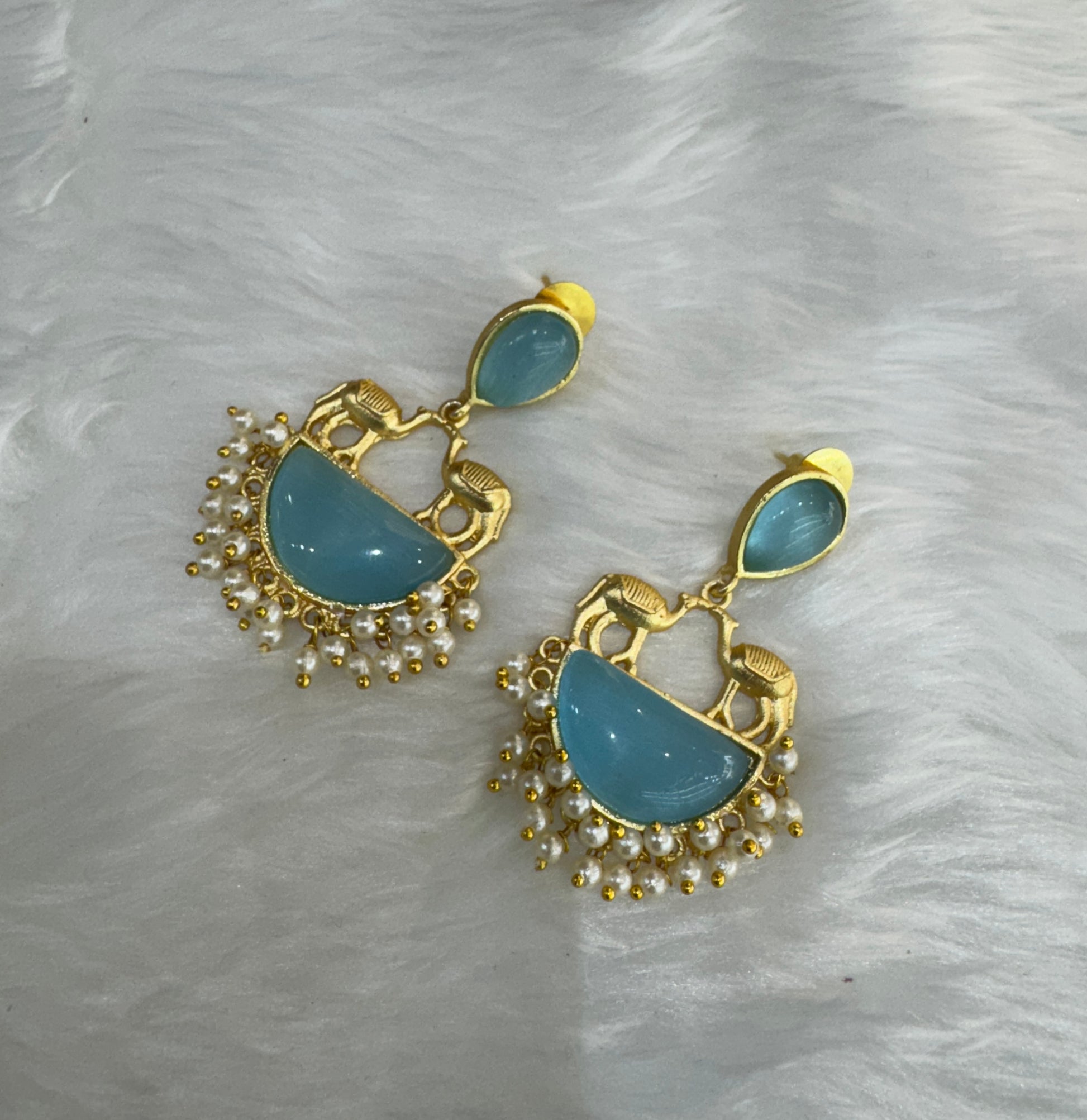 Sky Blue Mother Of Pearl Bollywood Aarna Earrings