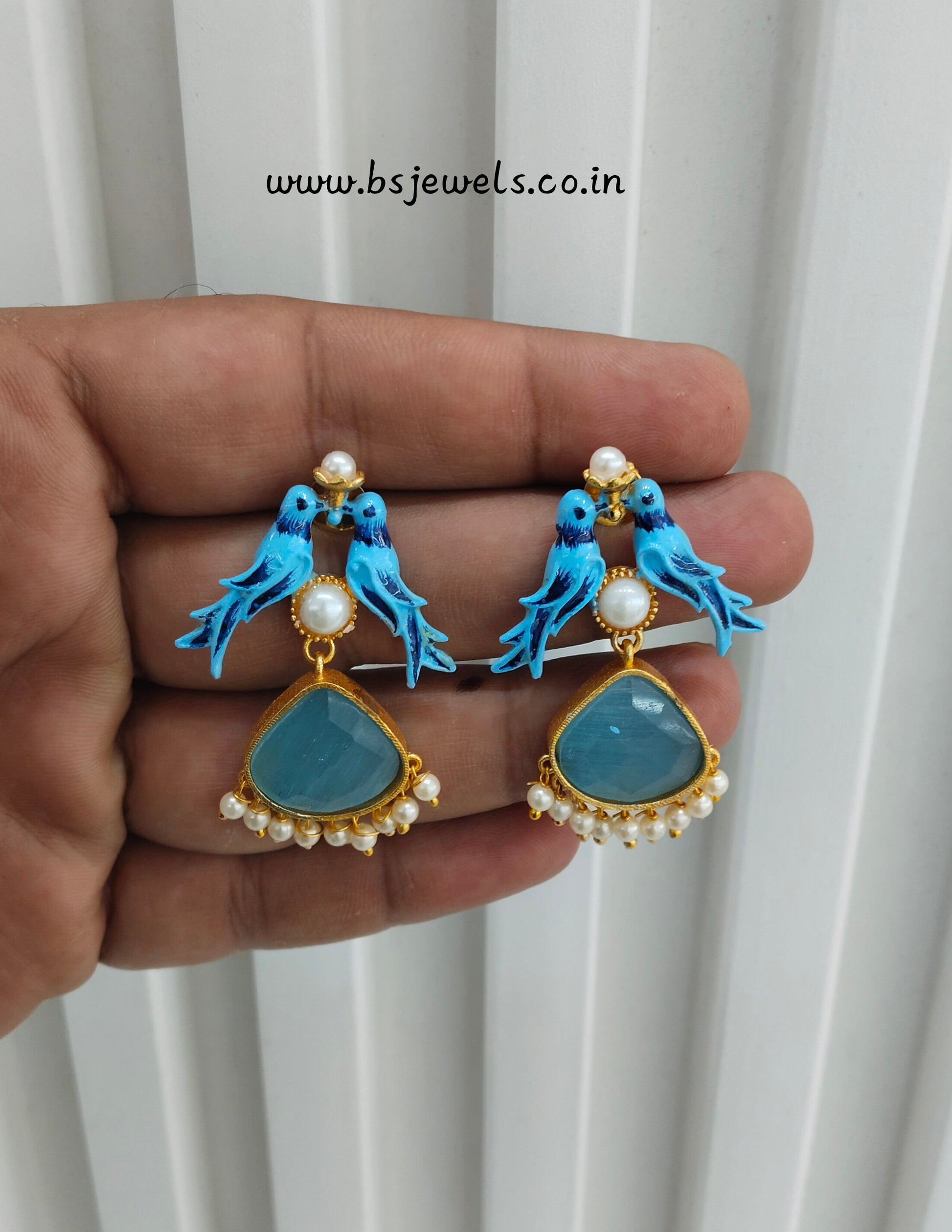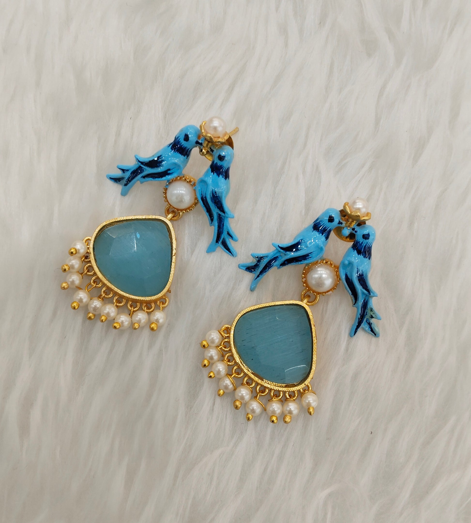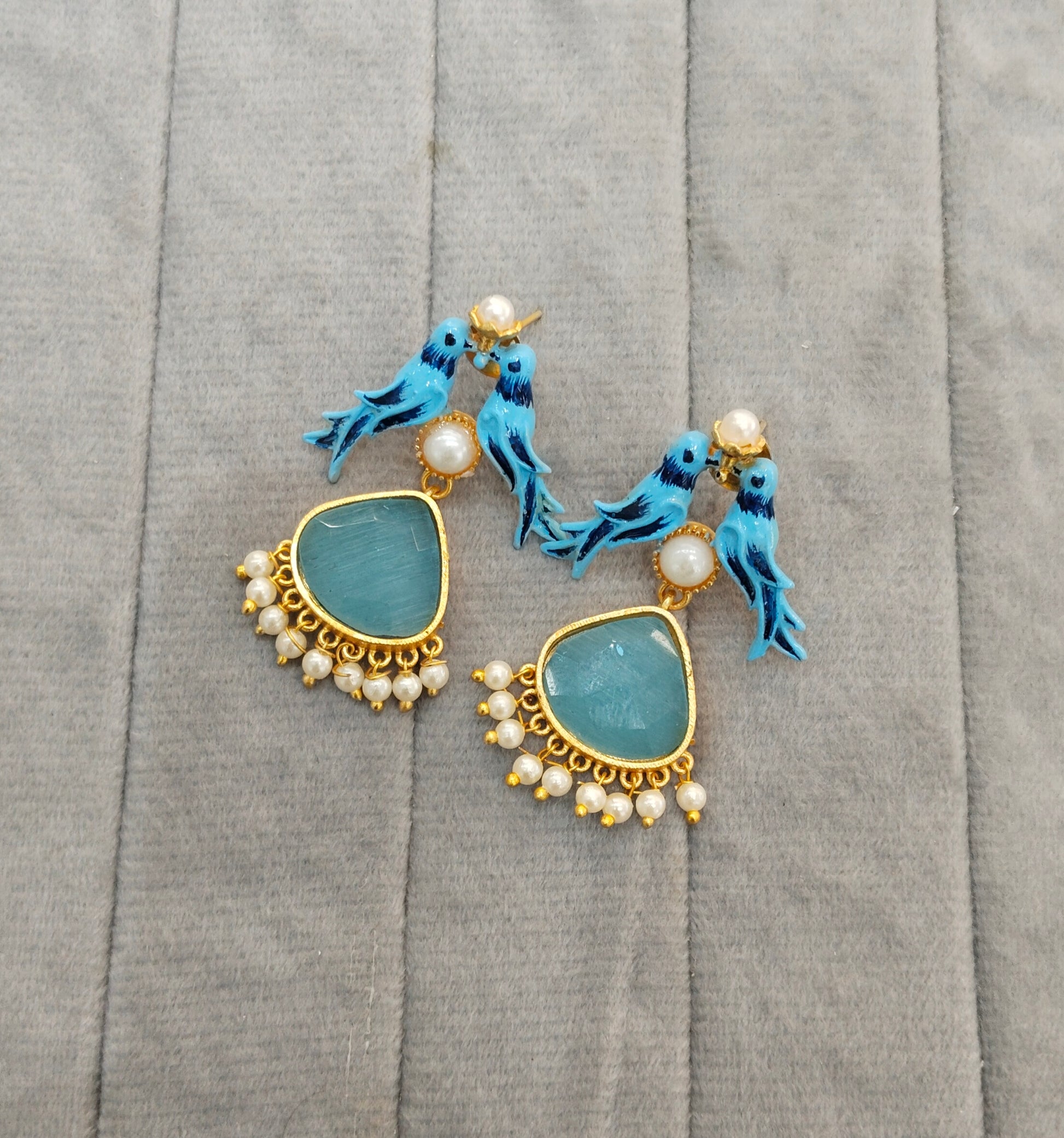 Sky Blue Mother Of Pearl Bollywood Brass Earrings