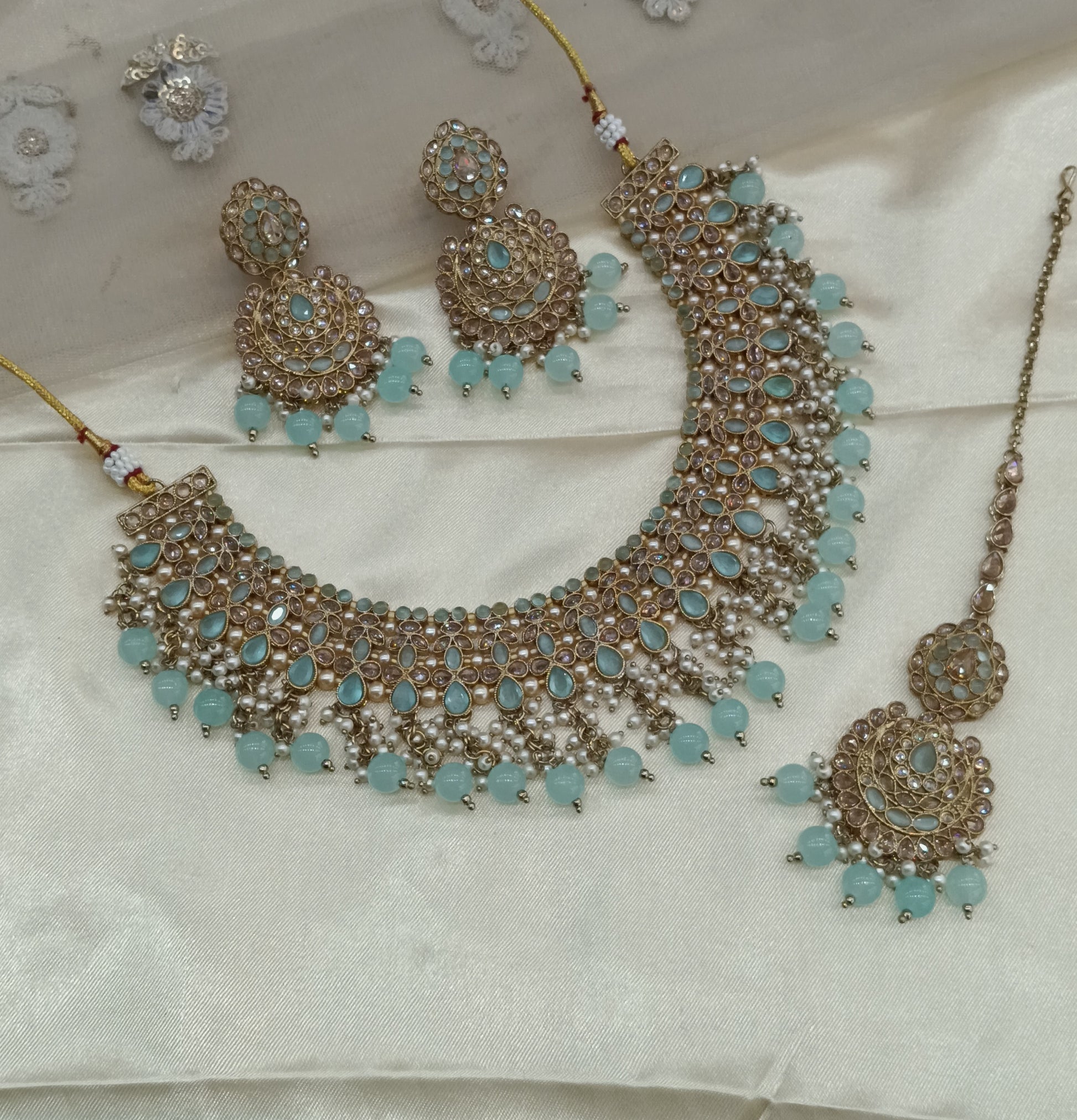 *Necklace Width- 2 inches ( Included drops) *Earrings Length-2.9 inches *Earrings width- 1.2 inches