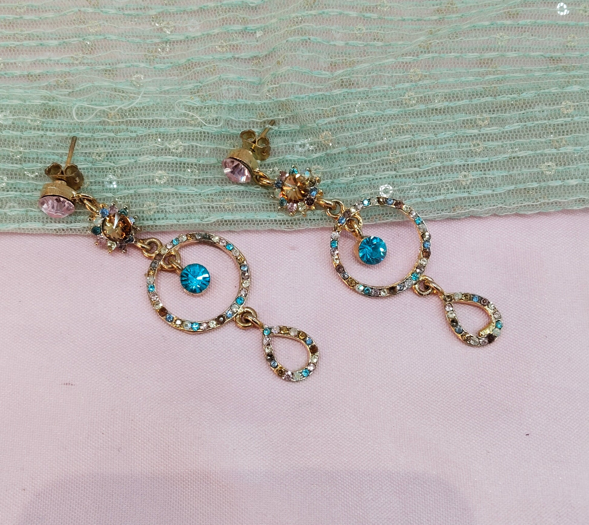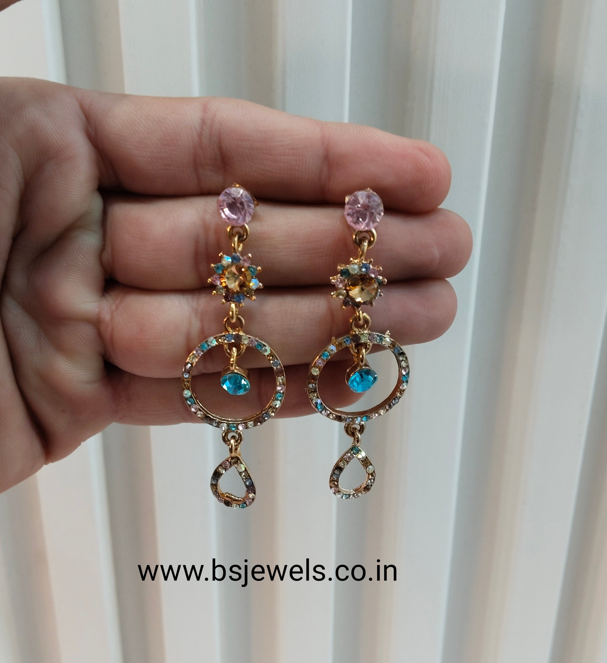 Sky Blue Pink Bollywood Rohit Earrings