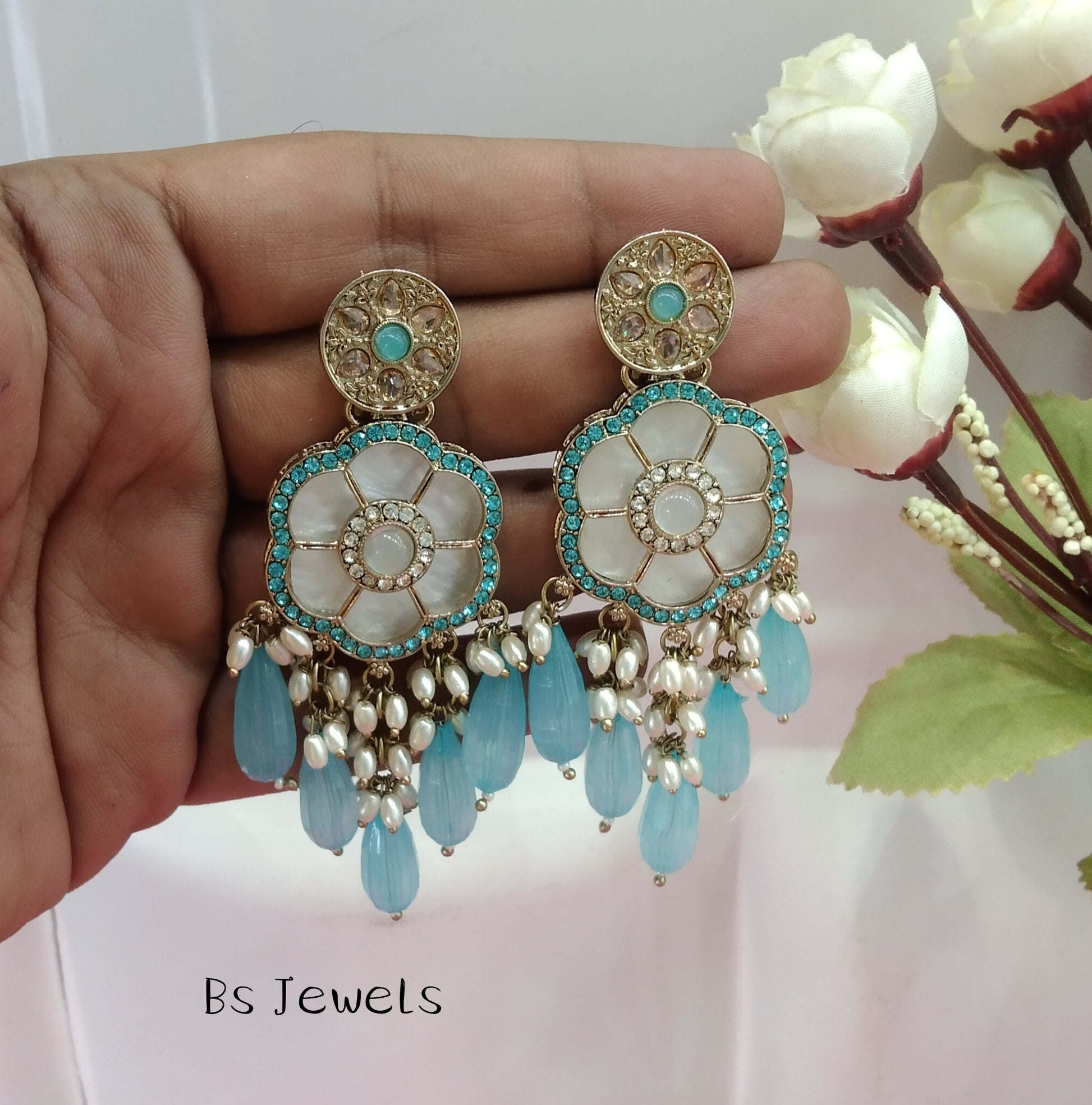 Sky Blue Sital Bollywood Earrings