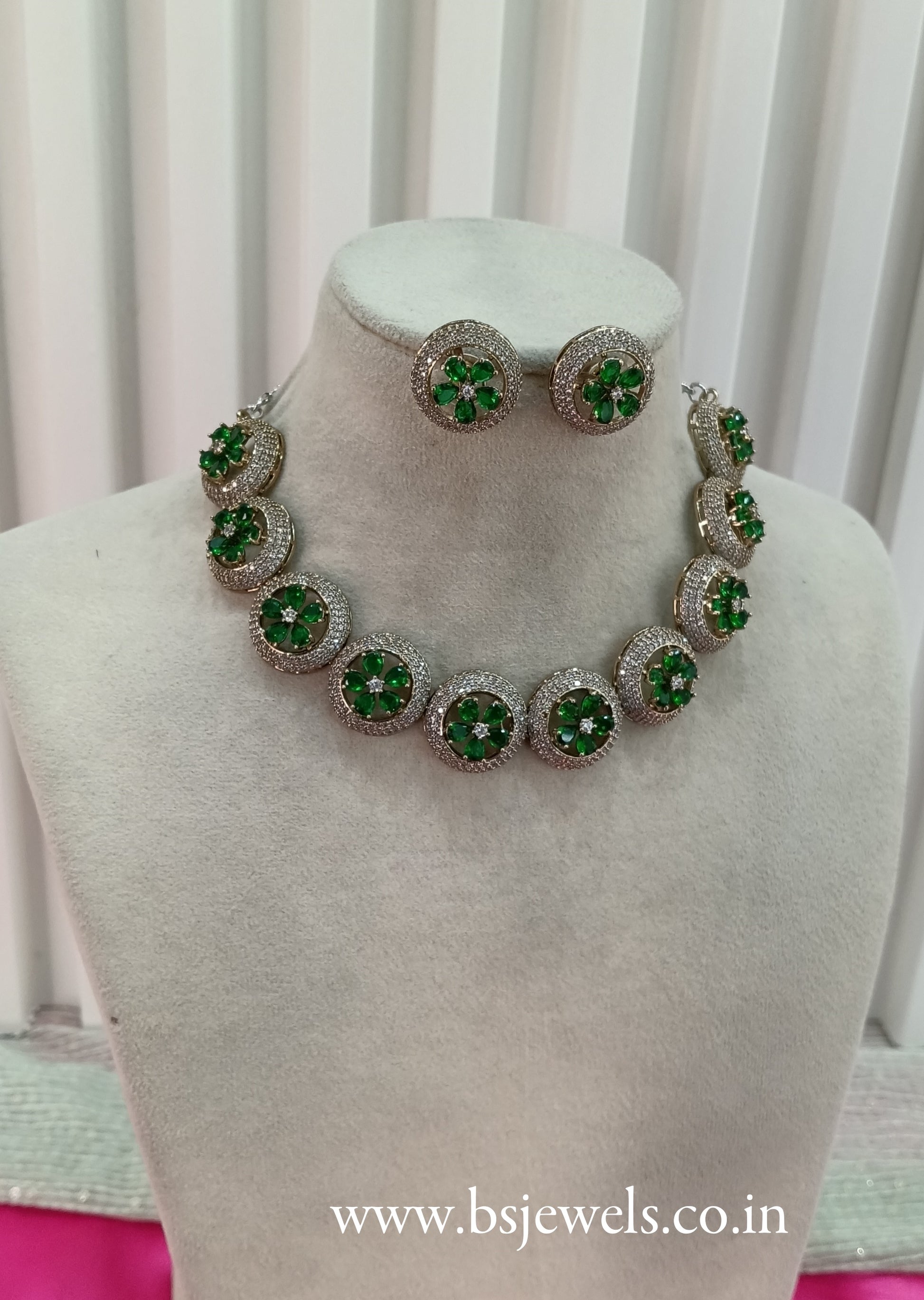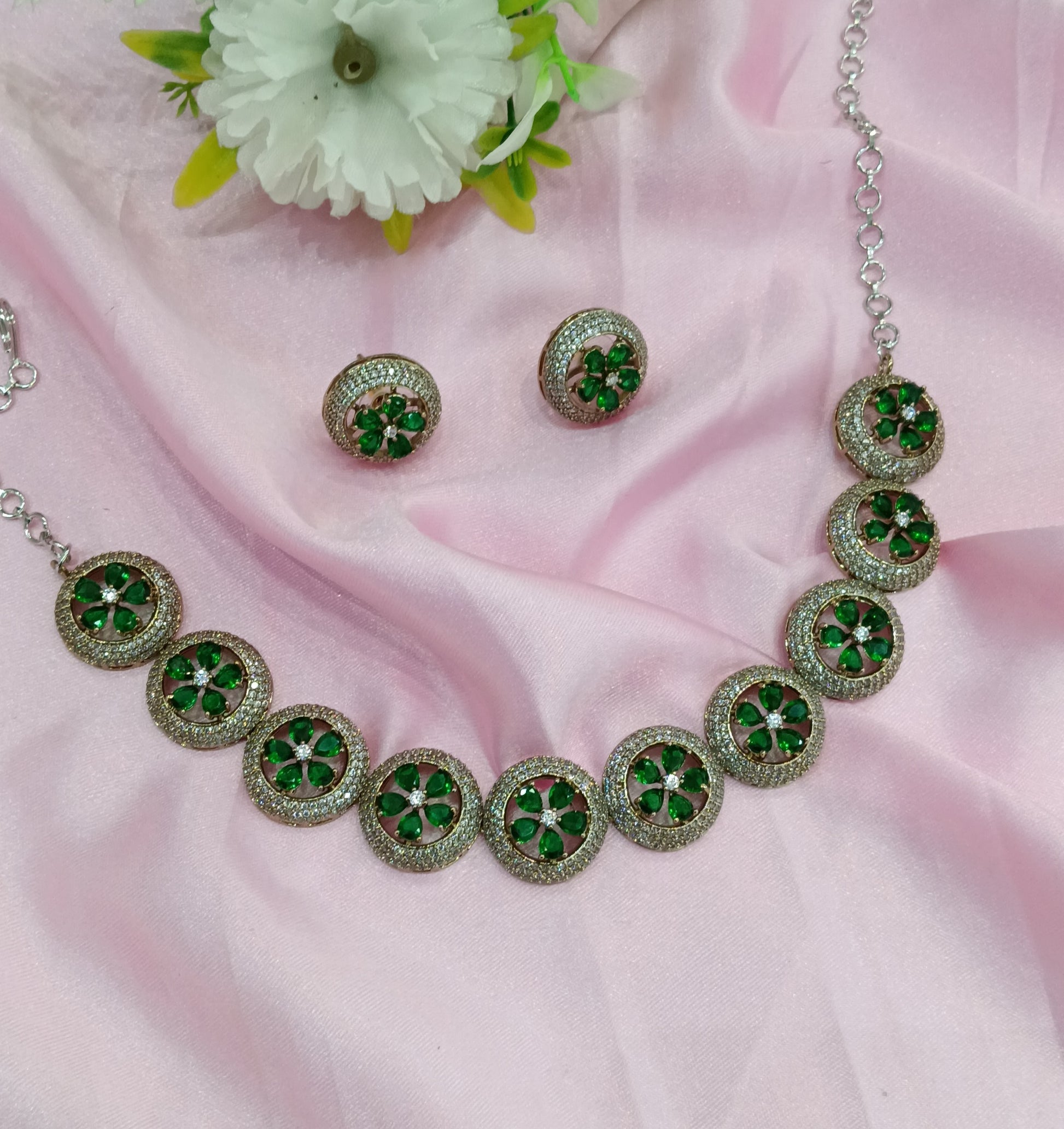 Victorian Green American Diamond Cz Necklace Jewellery City Set