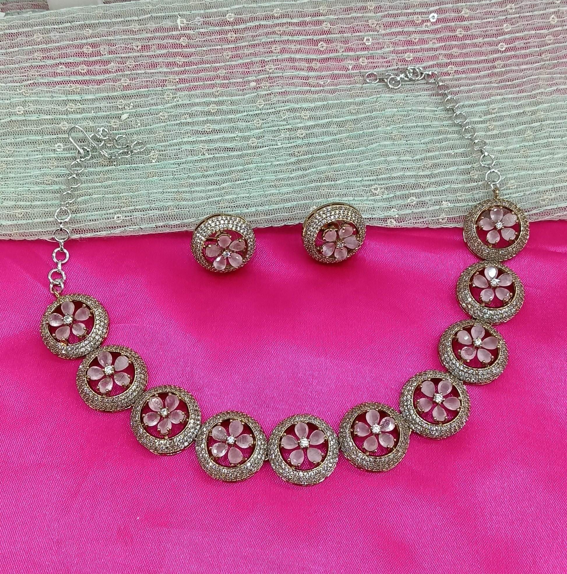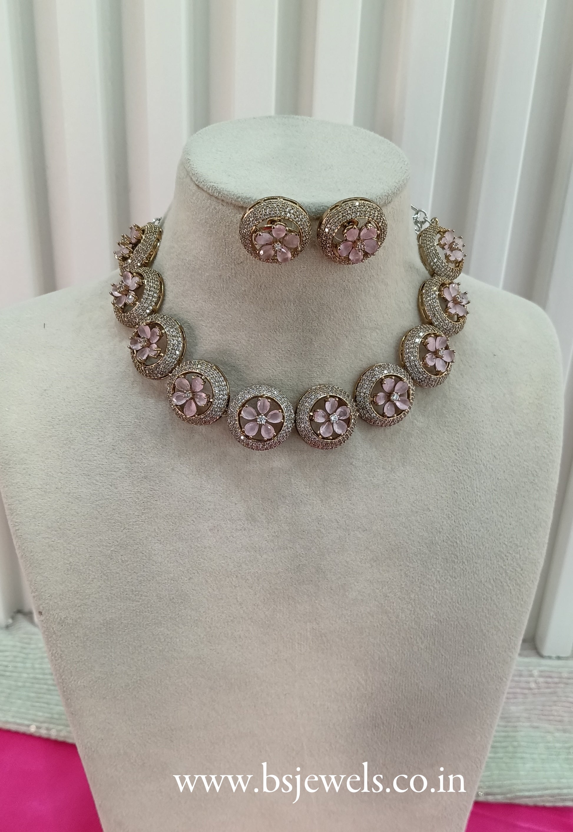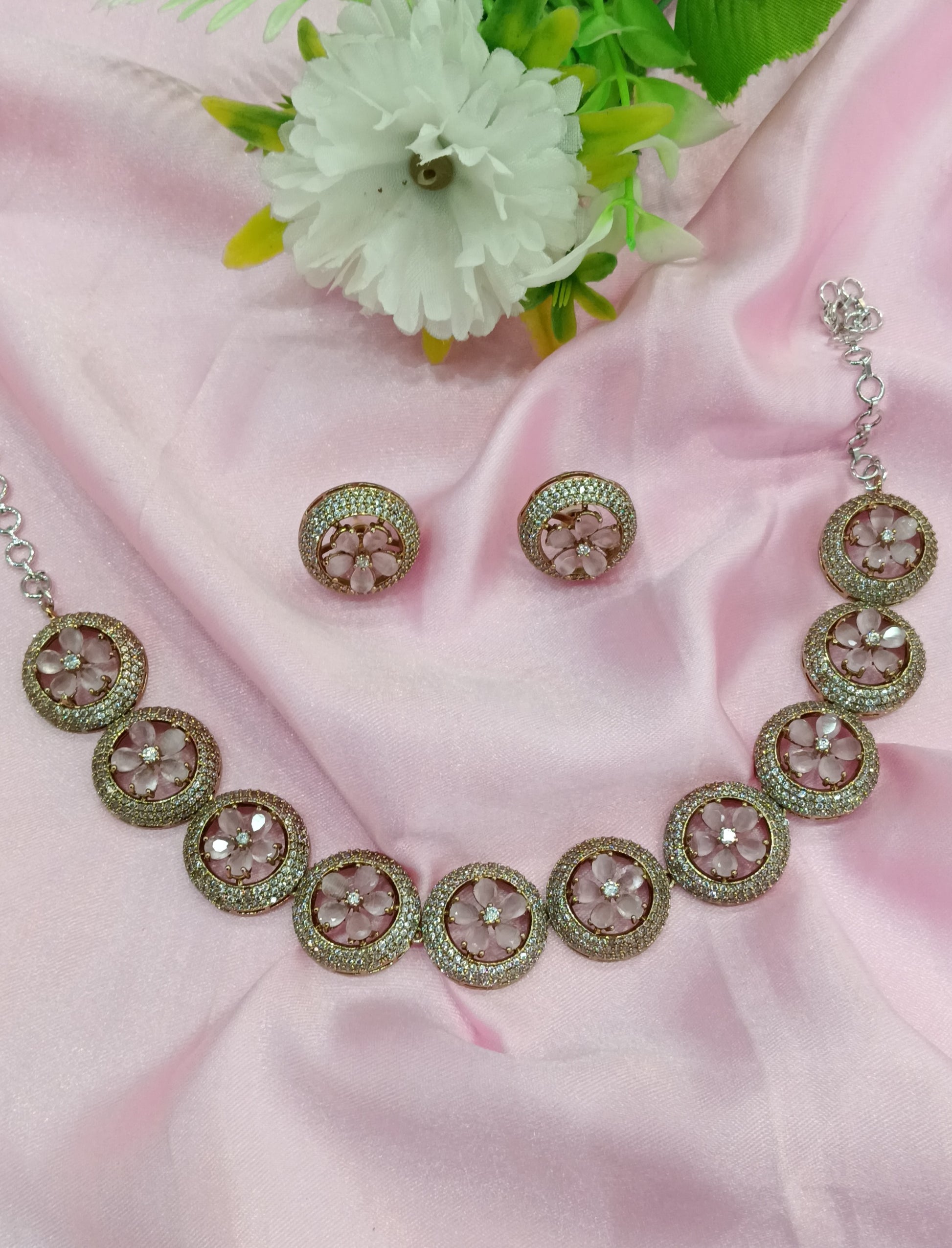 Victorian Pink American Diamond Cz Necklace Jewellery City Set