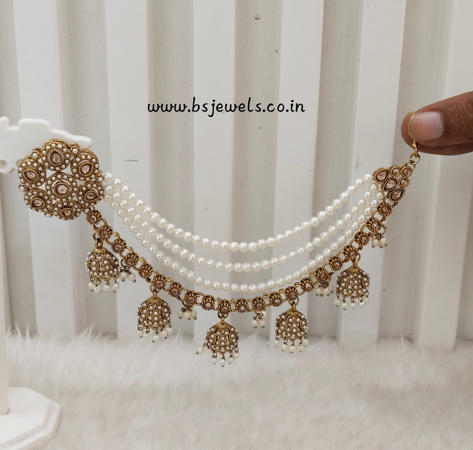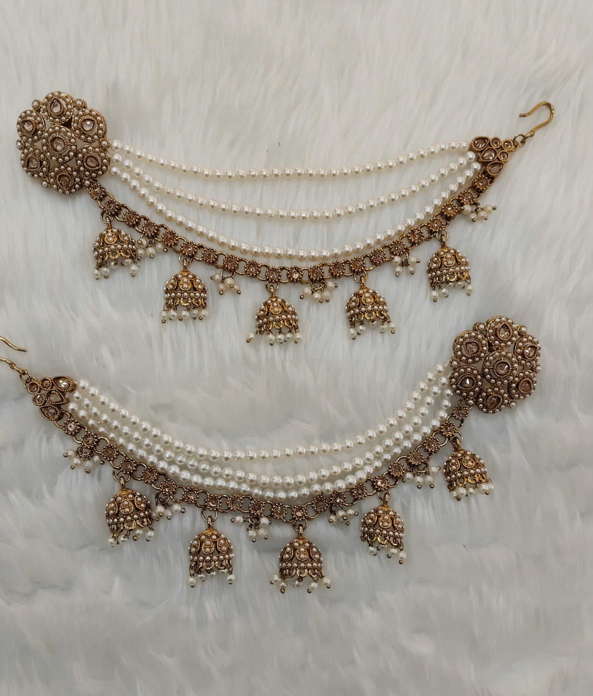 White Antique Gold Bahuballi Style Bollywood Earrings