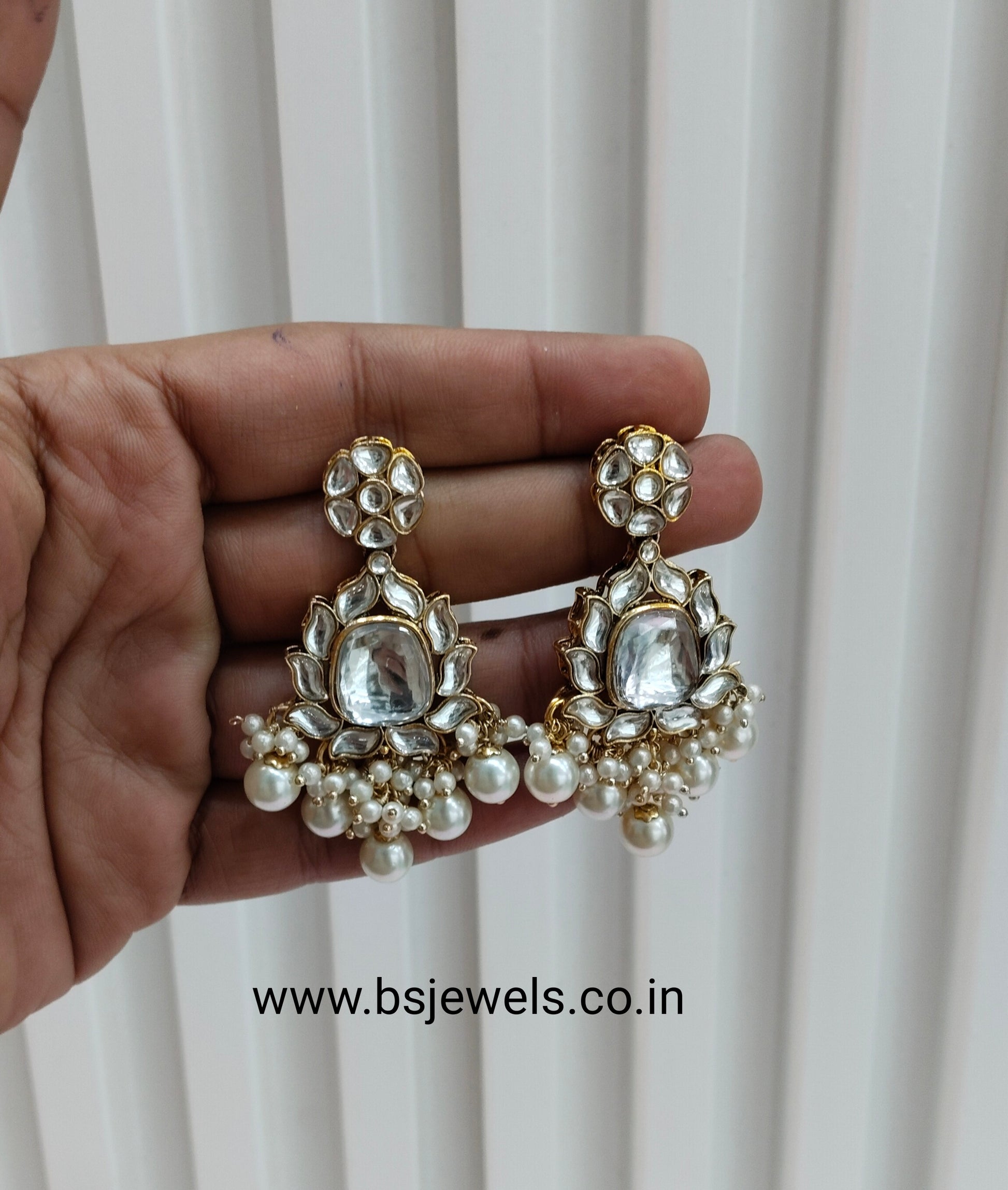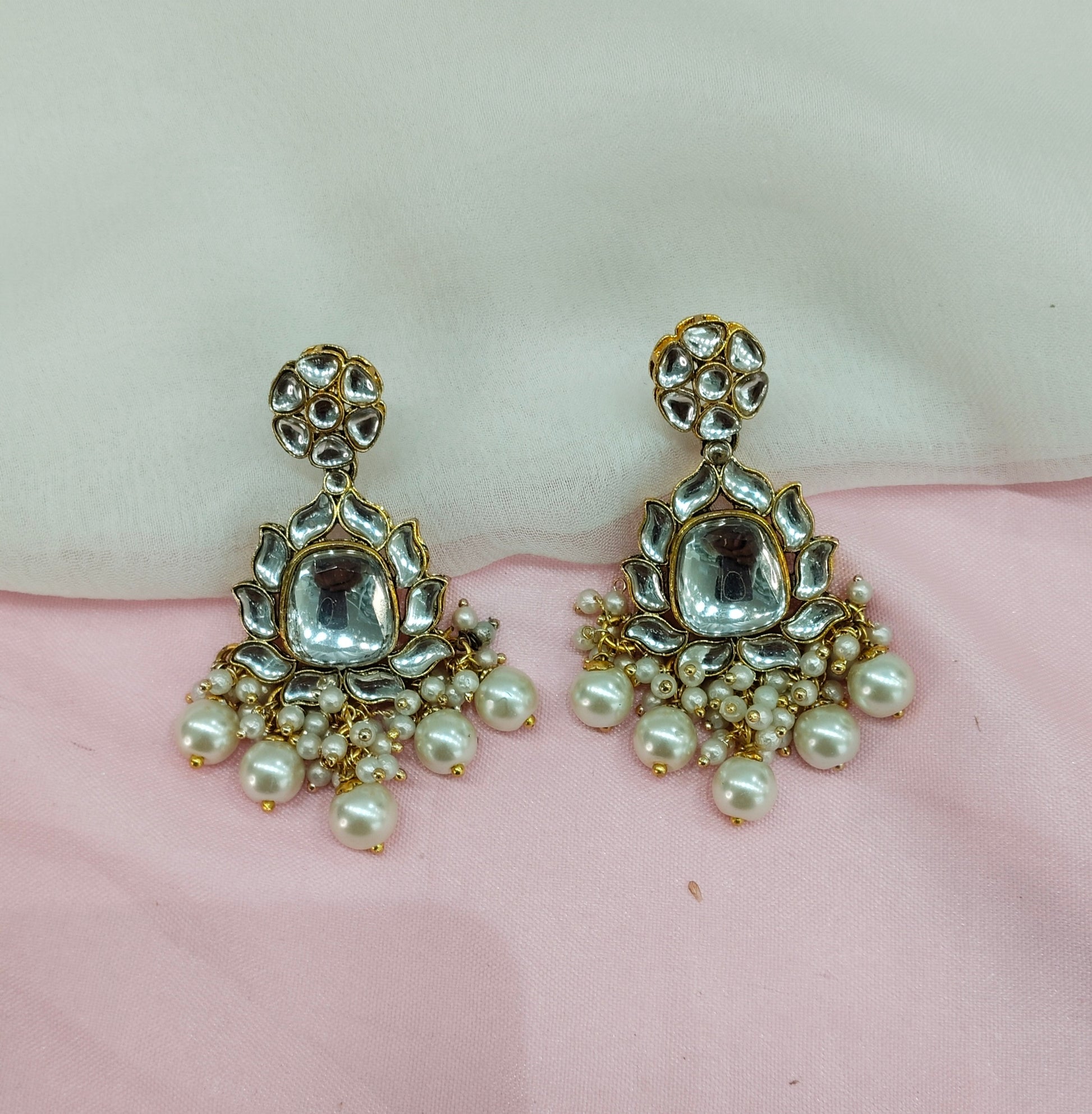 White Antique Gold Kundan Bollywood Earrings Reet Set