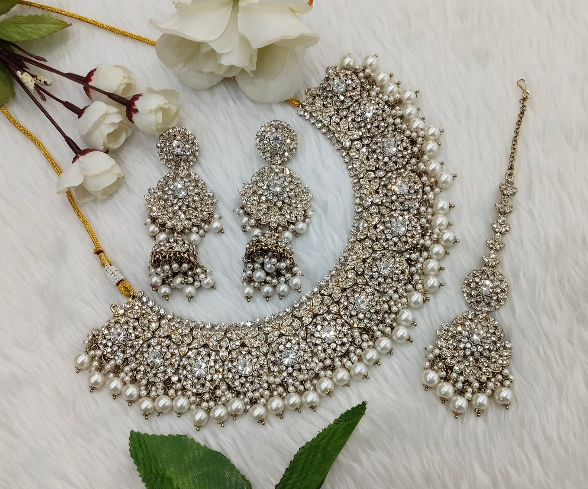 *Necklace set with earrings and tikka.