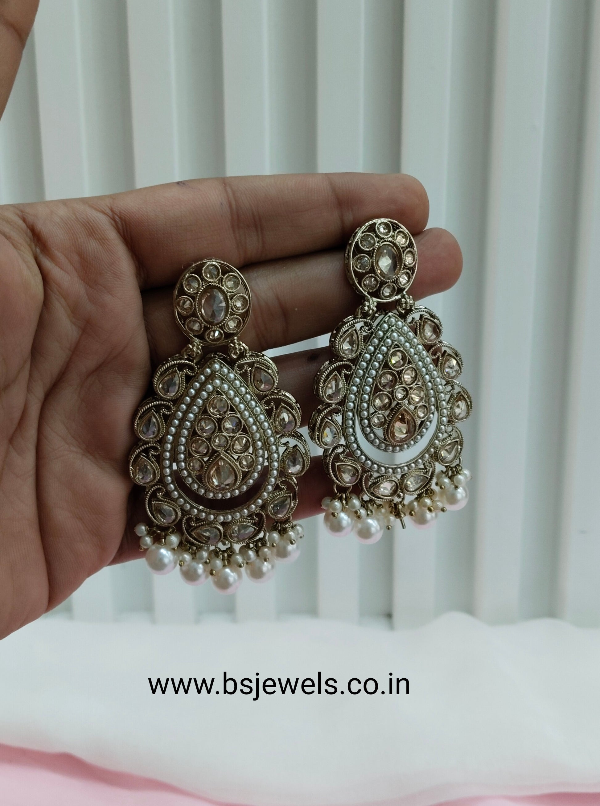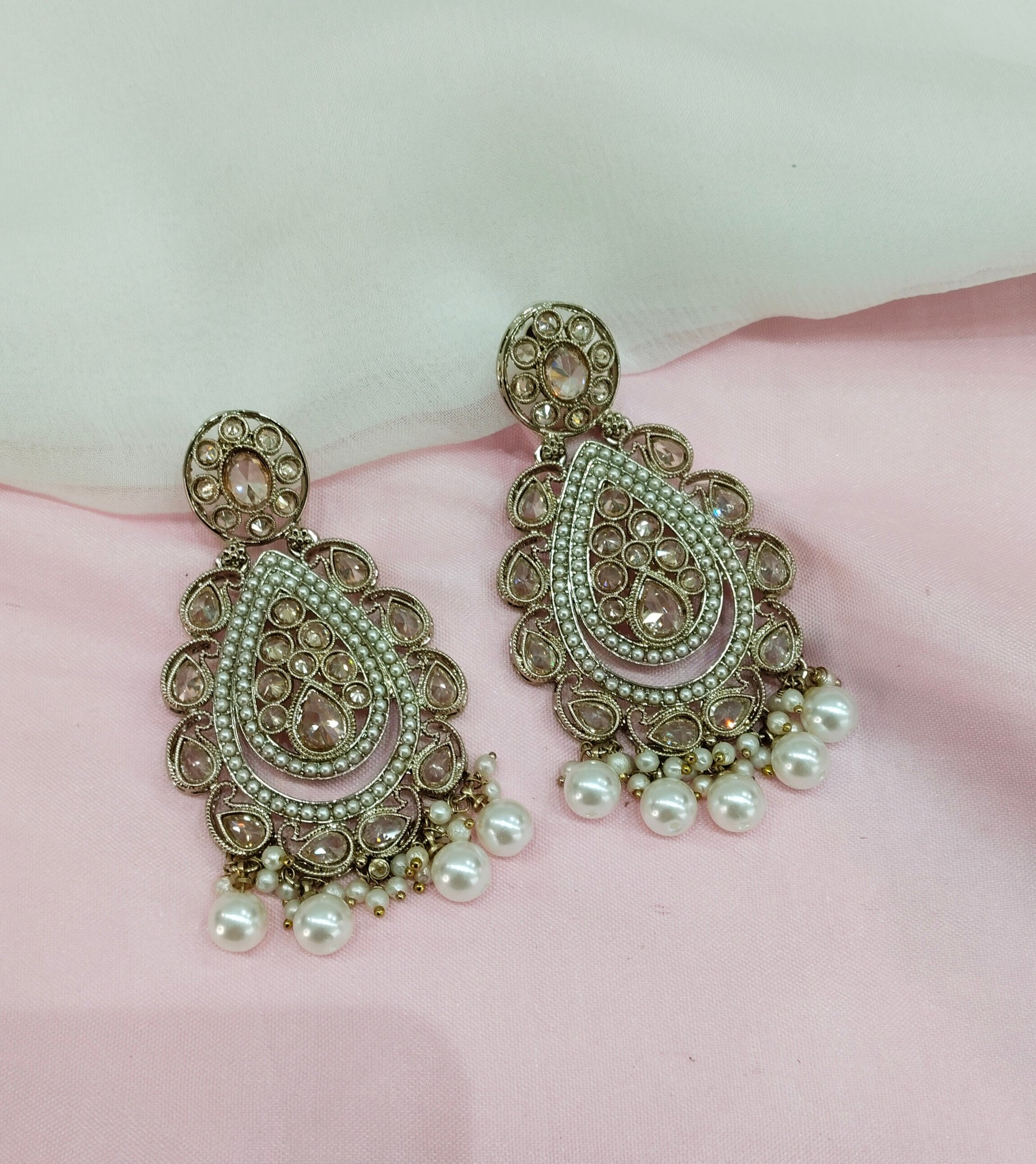 White Gold Champagne Stone Bollywood Earrings Tokyo Set