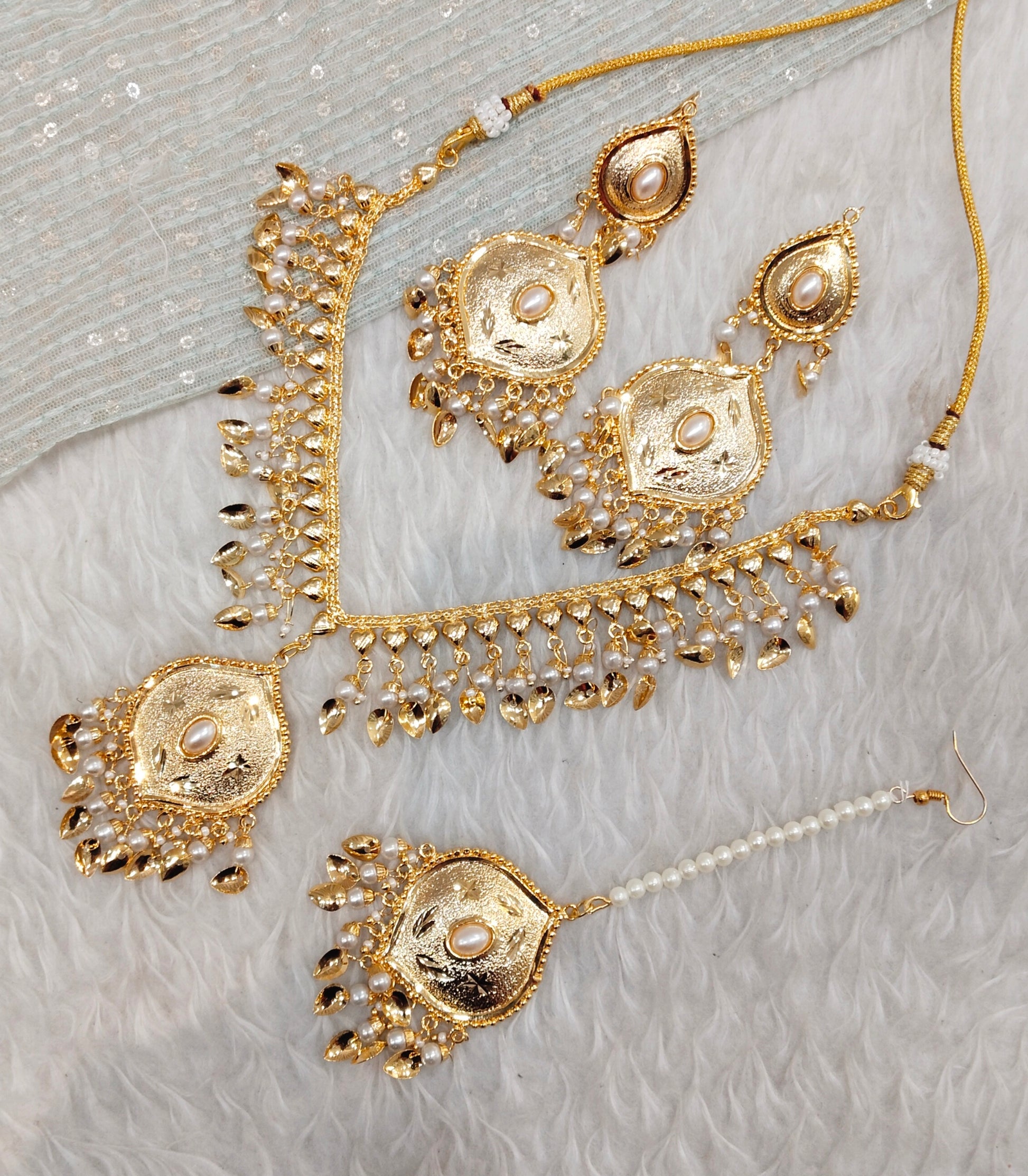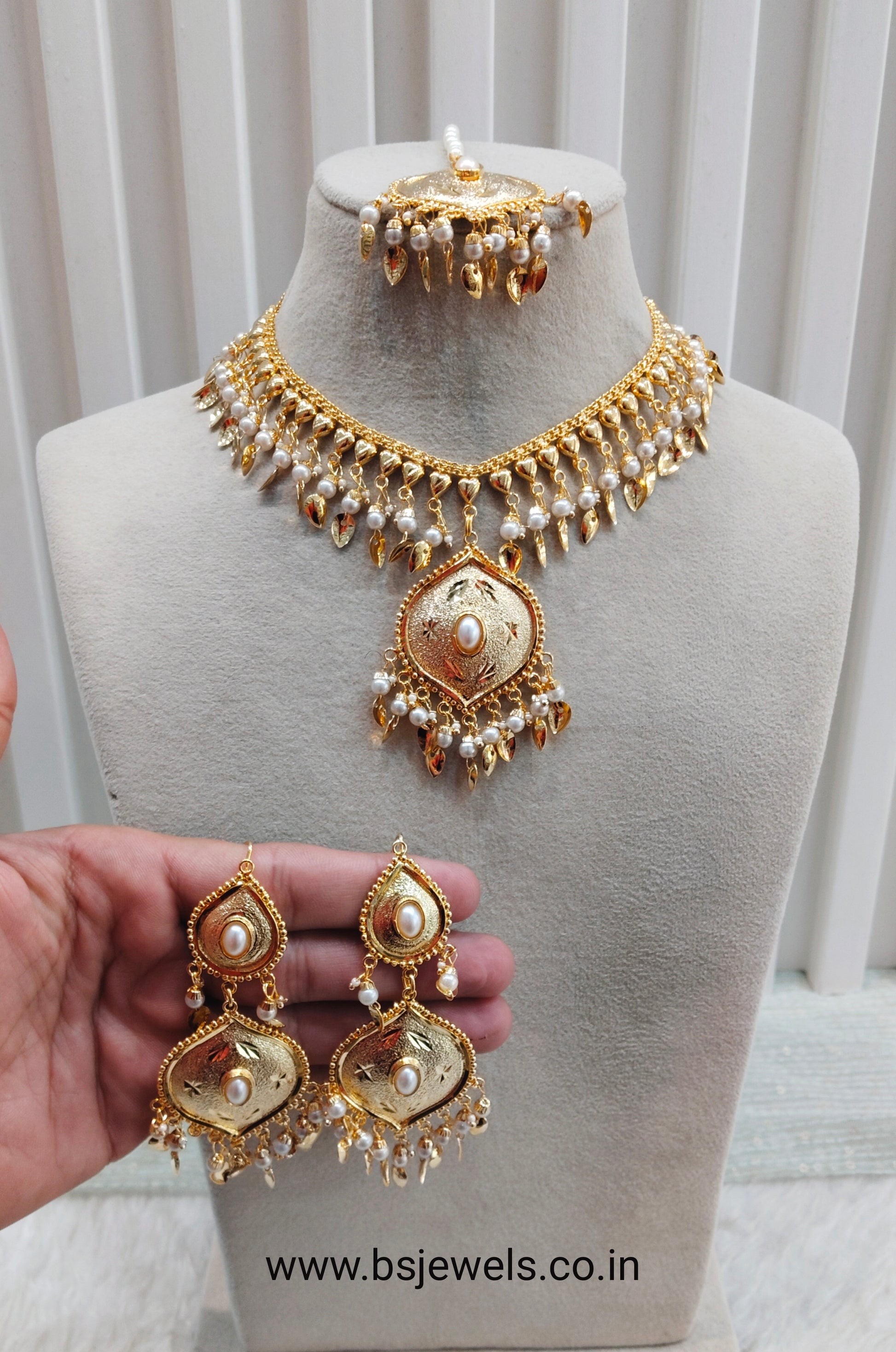 White Gold Jadau Punjabi Style Necklace Jewellery Smith Set