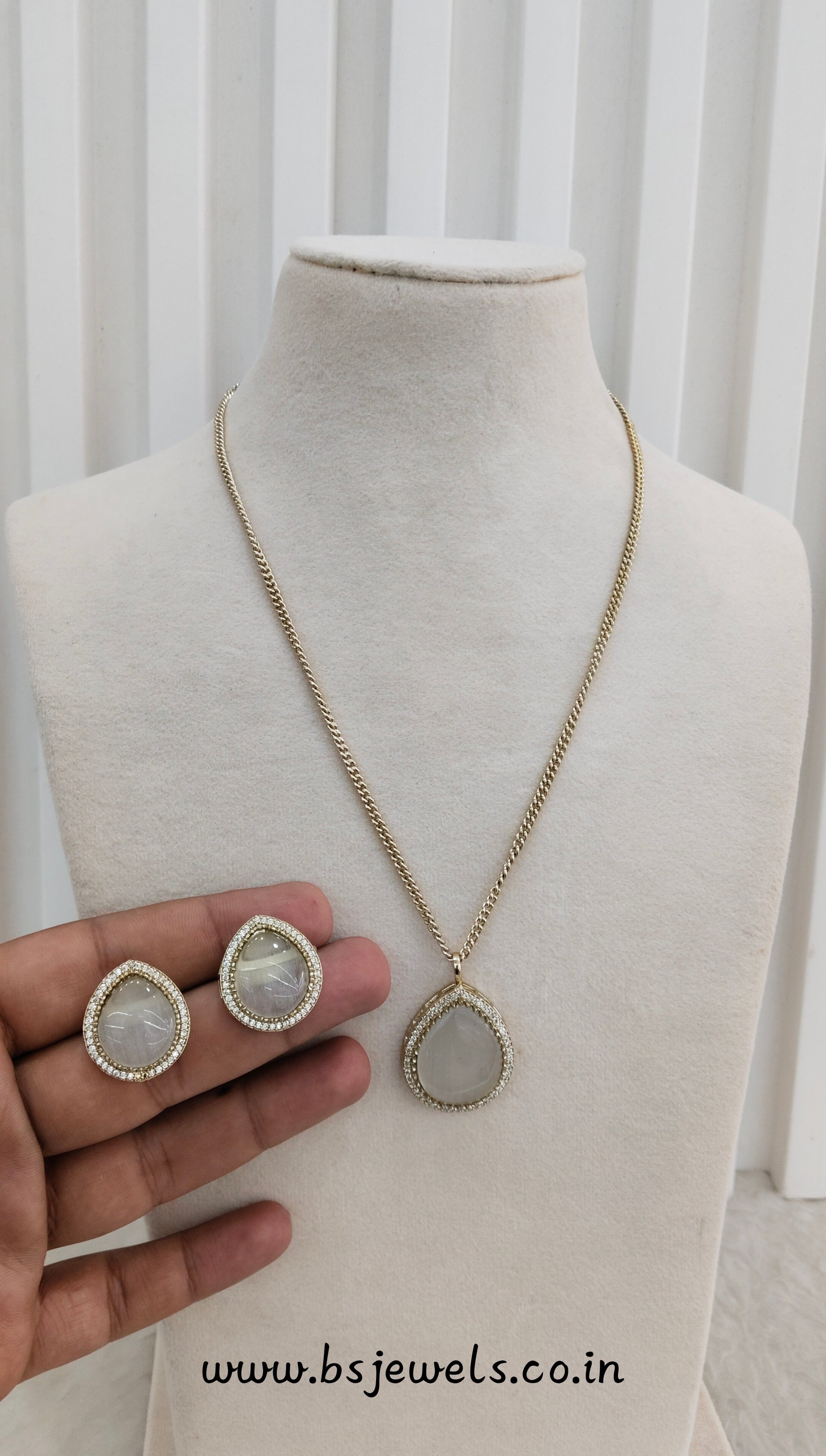 White Gold Moissanite Kundan Necklace Jewellery Avenger Chain Set