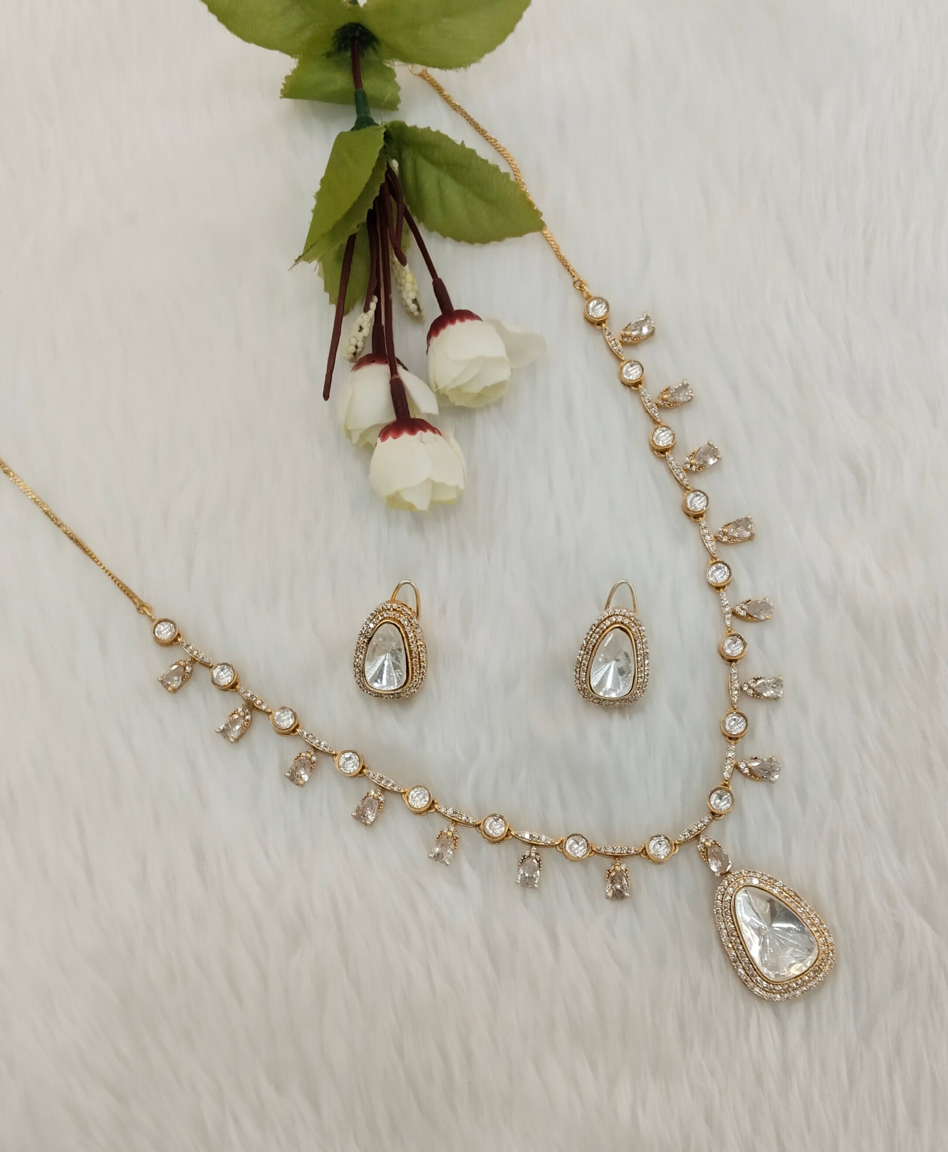White Gold Moissanite Kundan Necklace Jewellery Indofarm Set