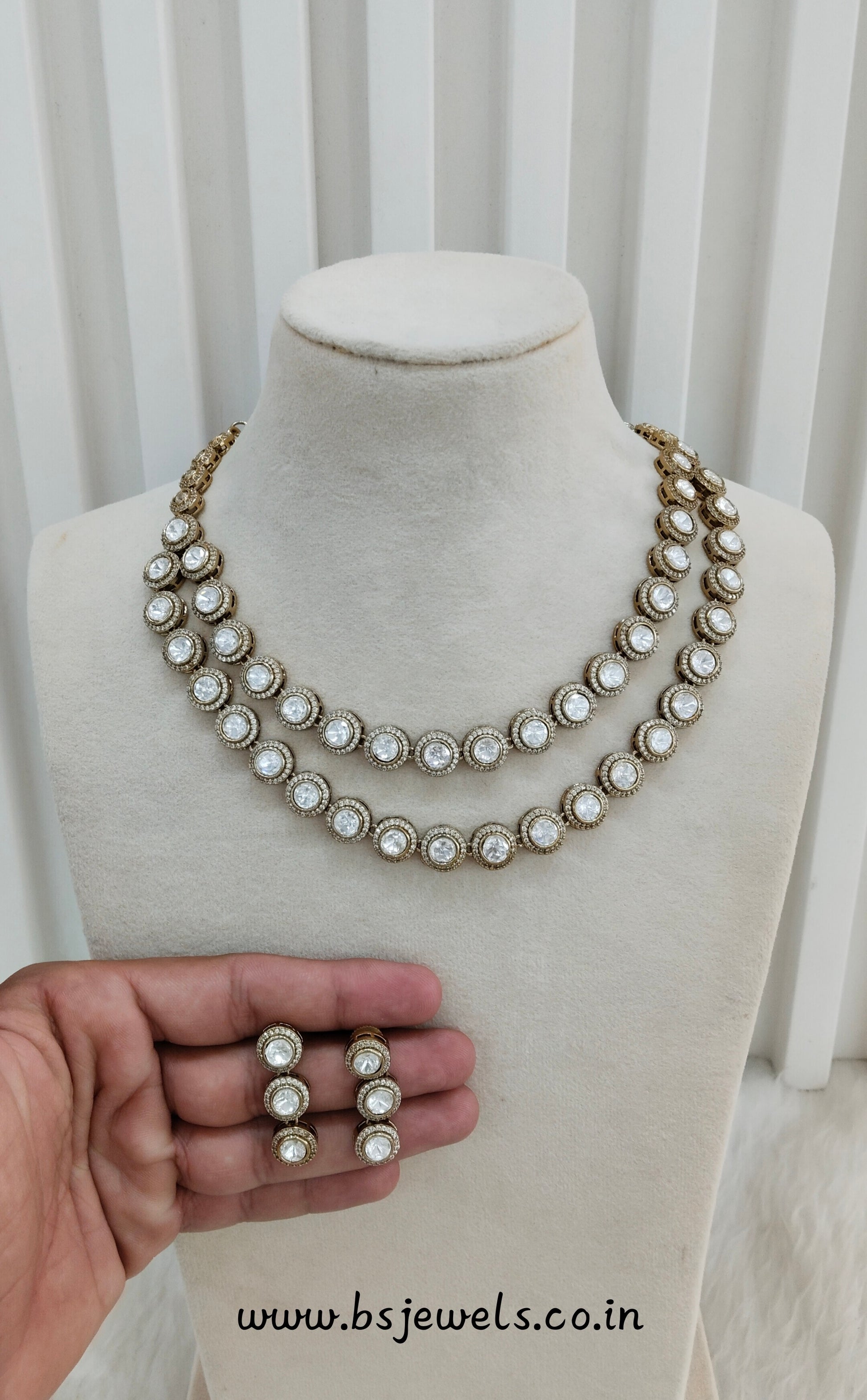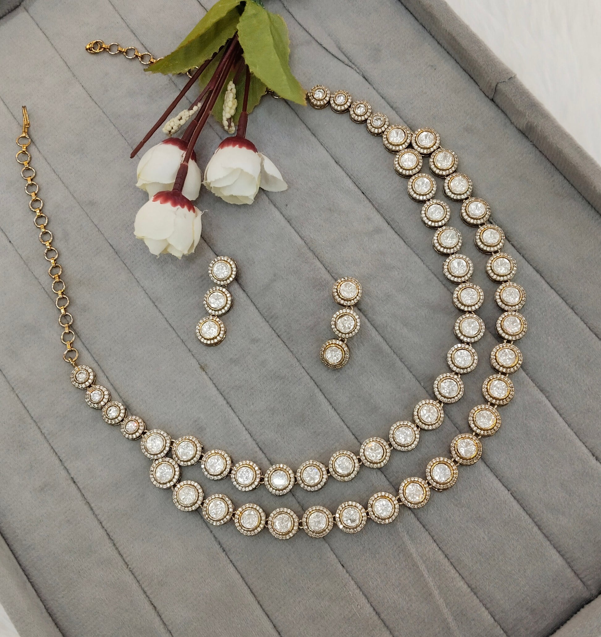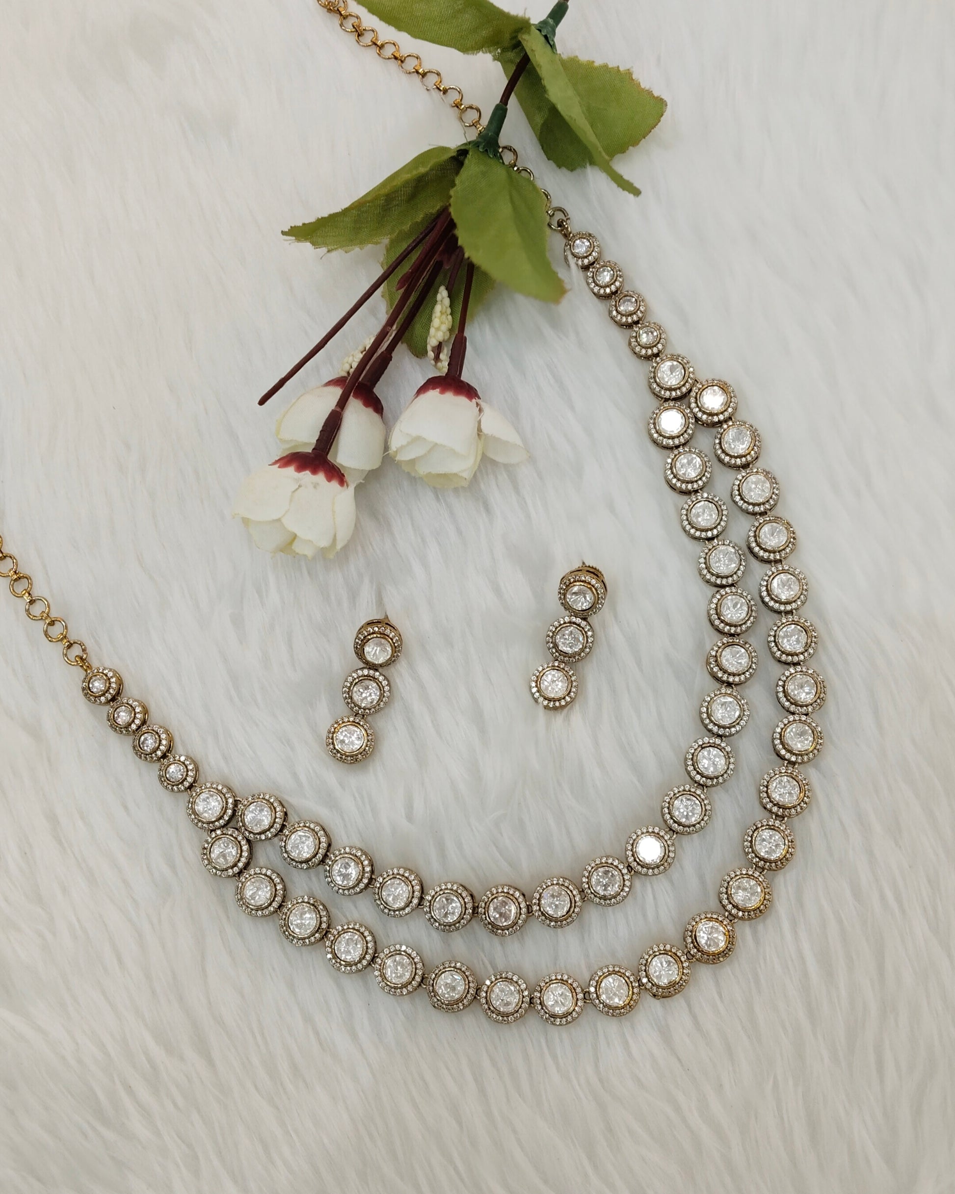 White Gold Moissanite Kundan Necklace Jewellery Indofarm Set