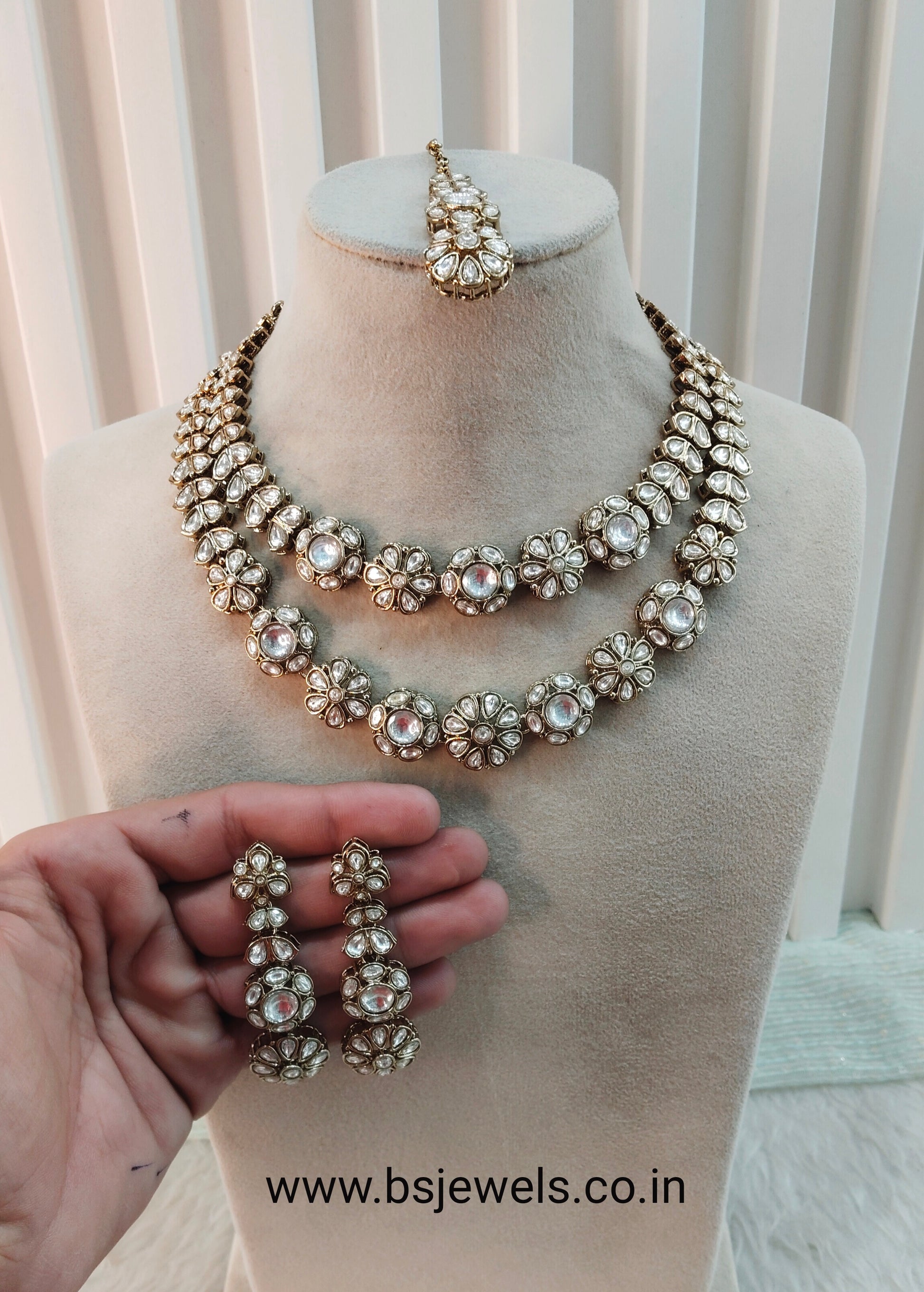 *Moissanite kundan Necklace set with earrings.