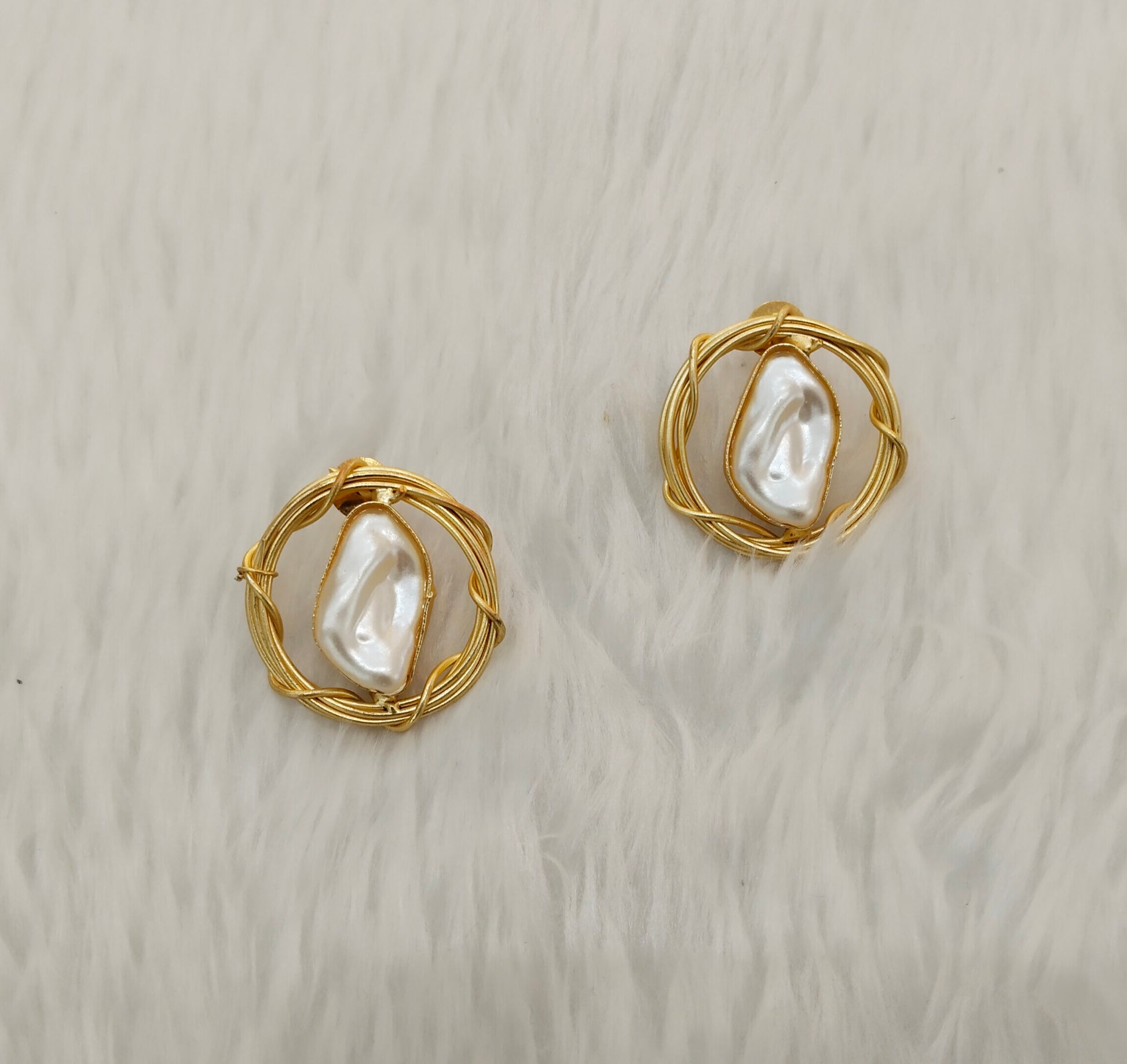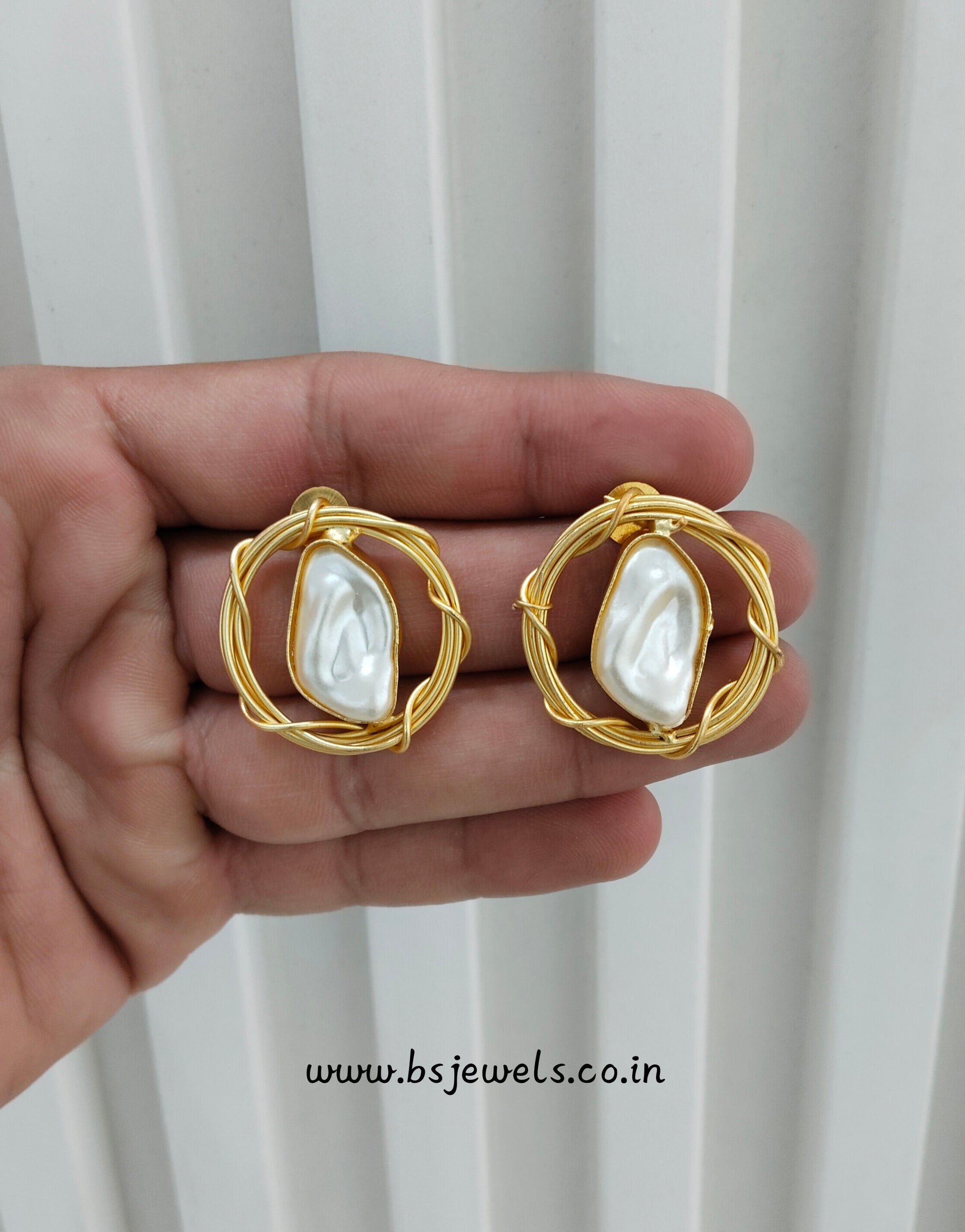 White Gold Mother Of Pearl Bollywood Bhullar Earrings