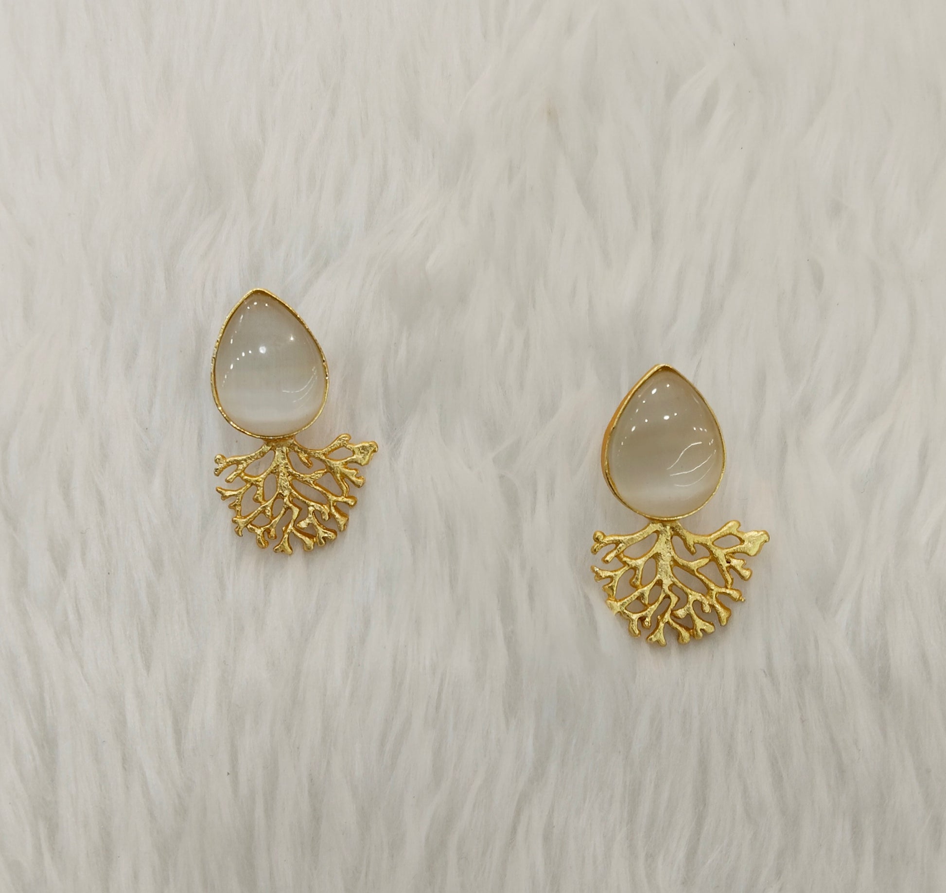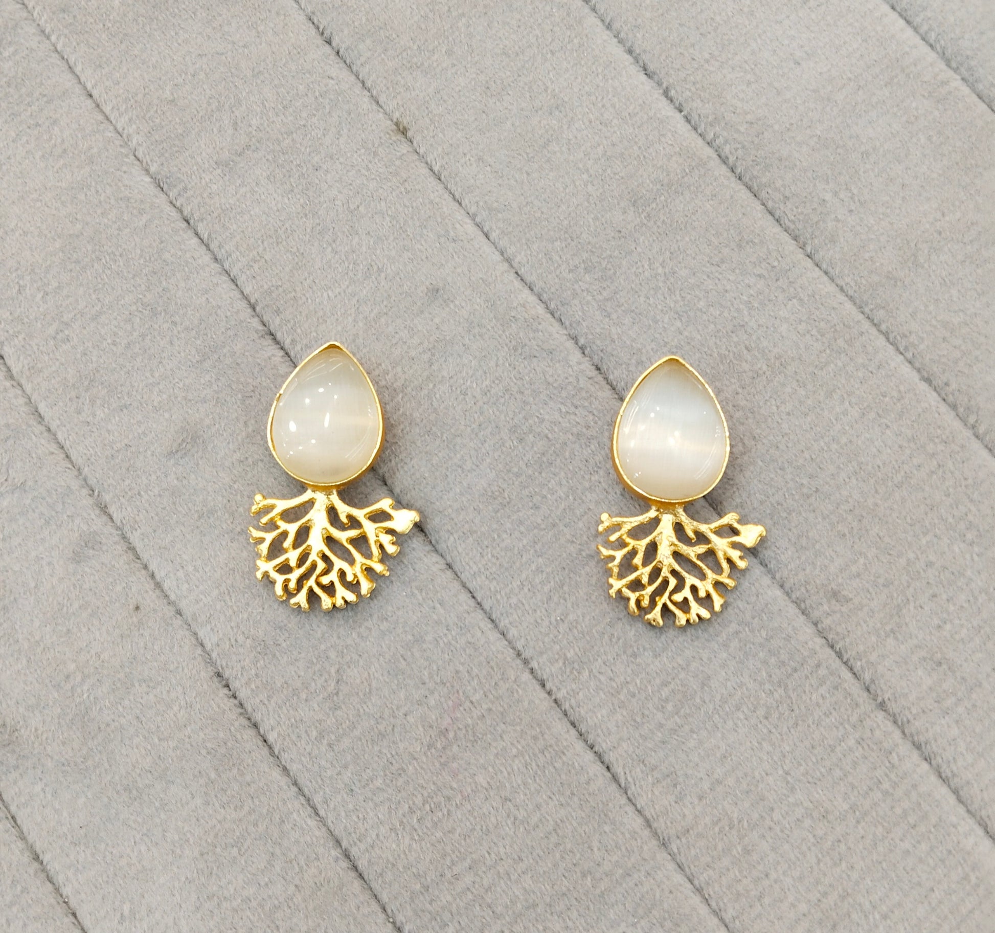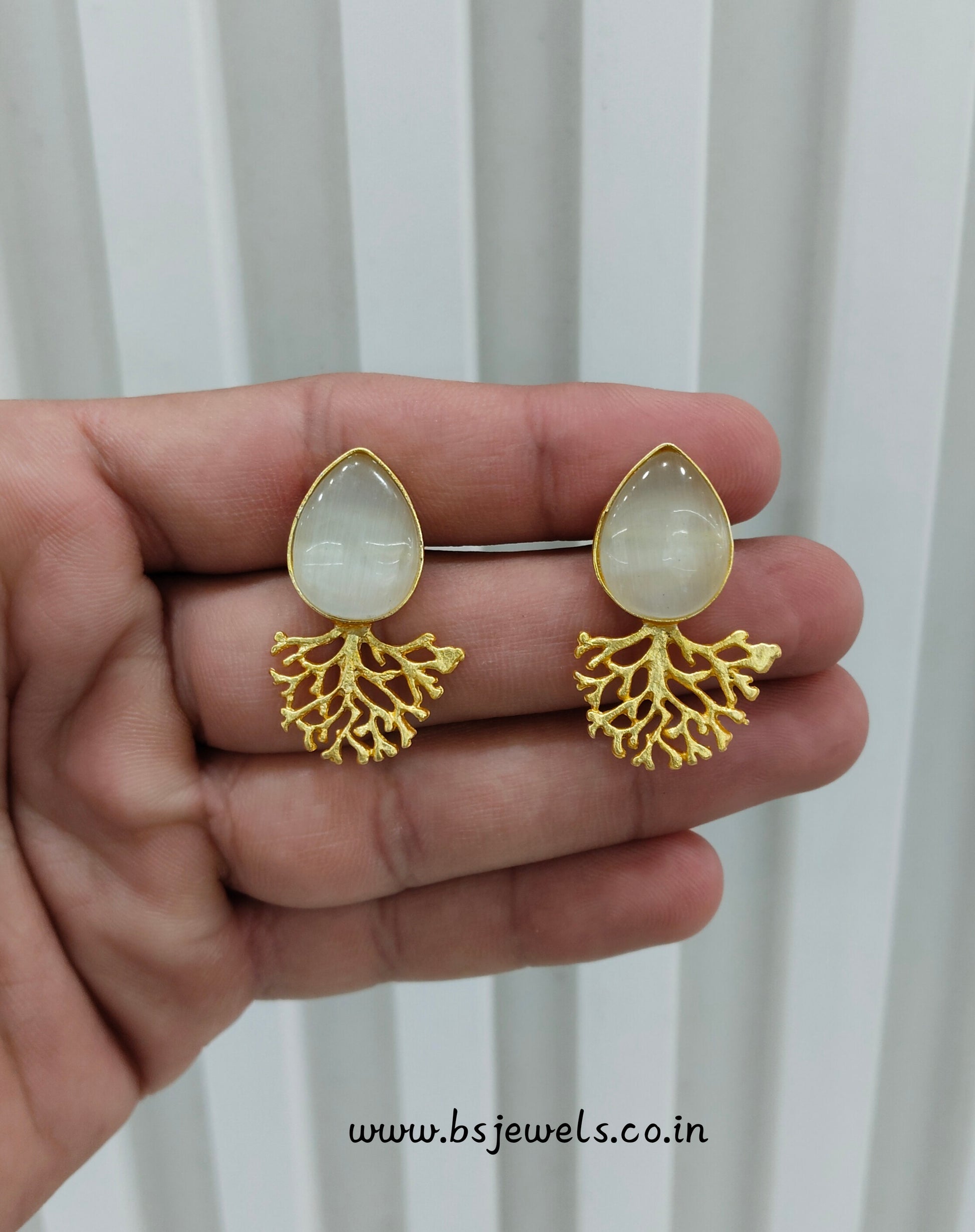 White Gold Mother Of Pearl Bollywood Bhullar Earrings