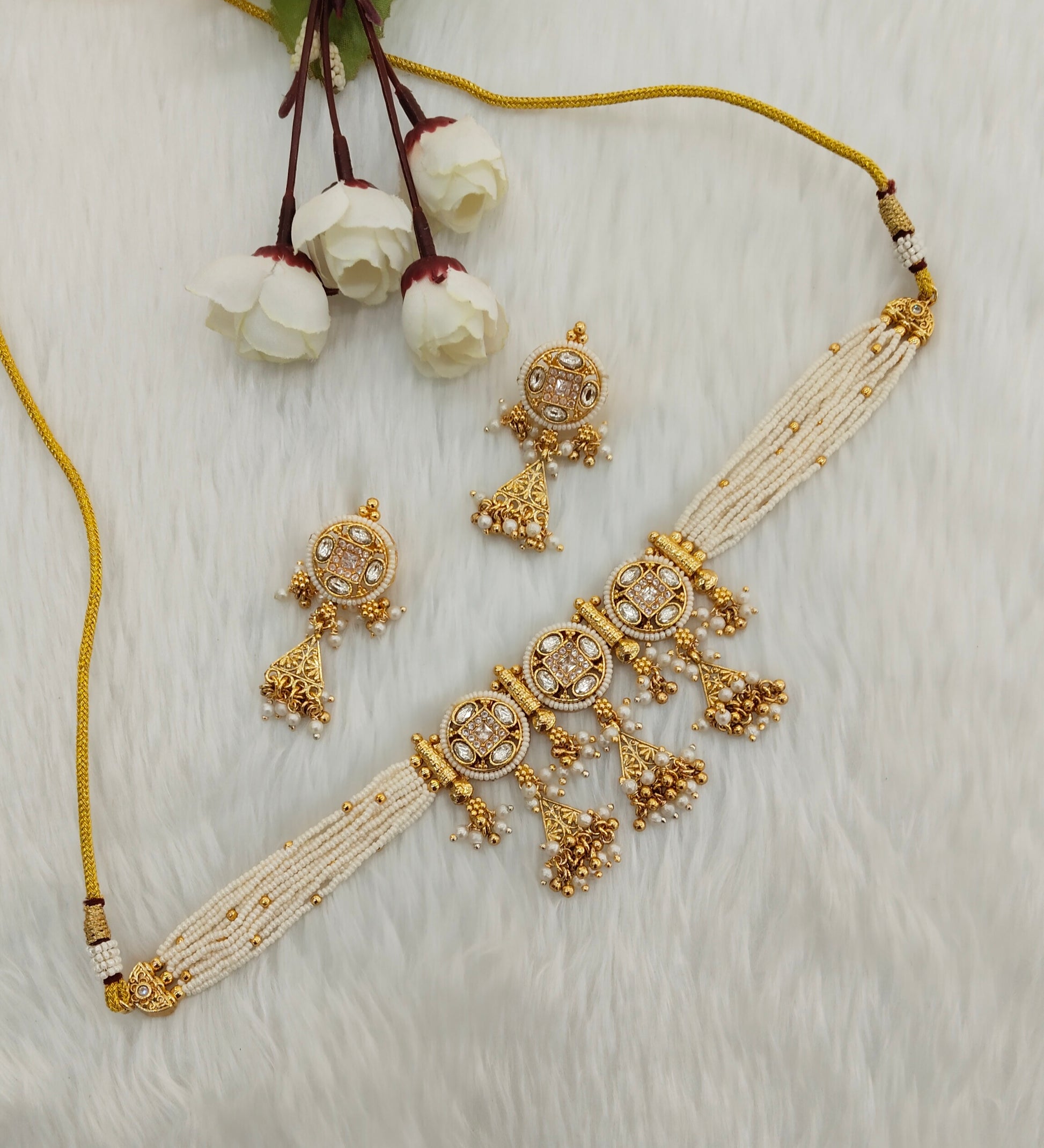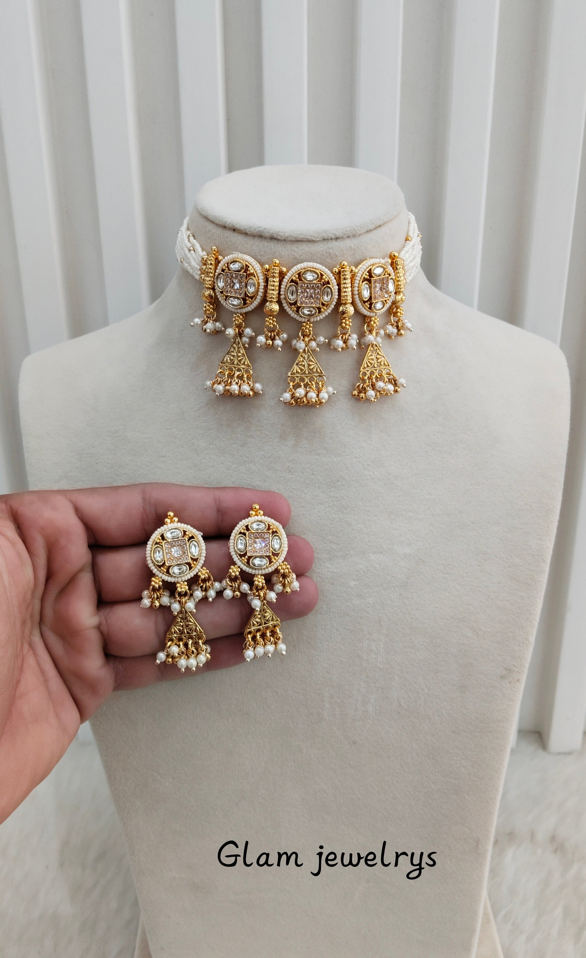 * Gold Finish Polki Choker Set with earrings as shown in the pic.