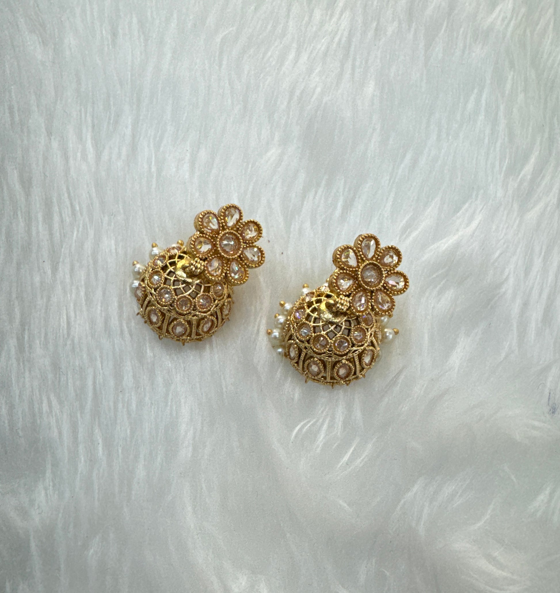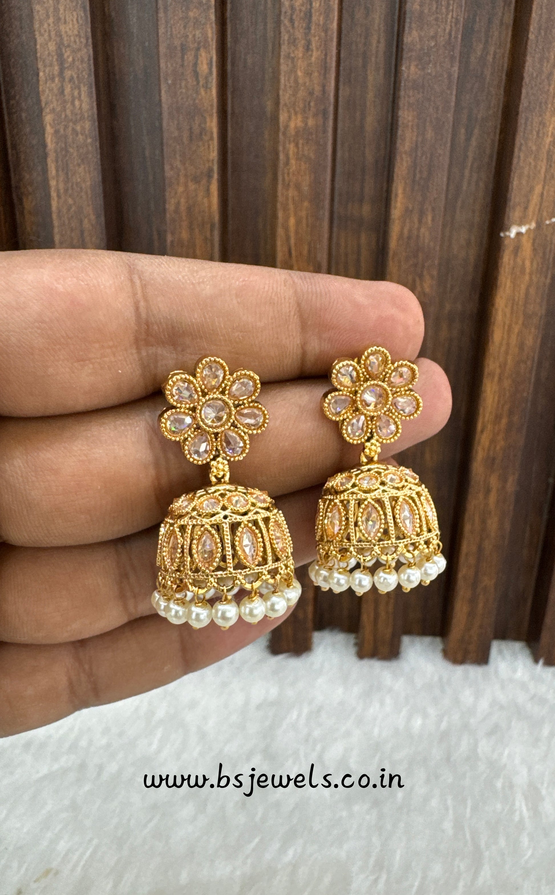 White Gold Polki Jhumki Bollywood Dhutta Earrings