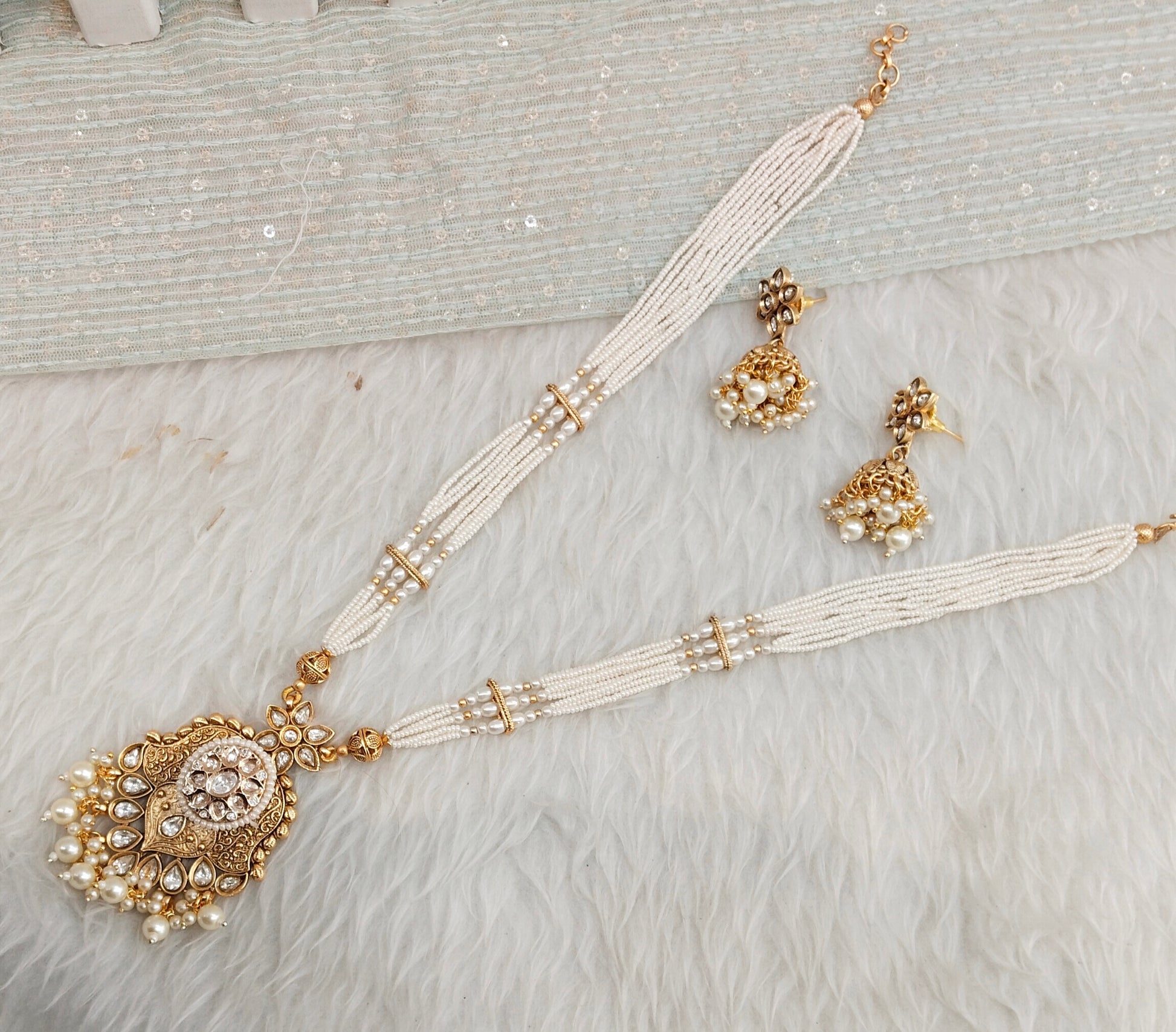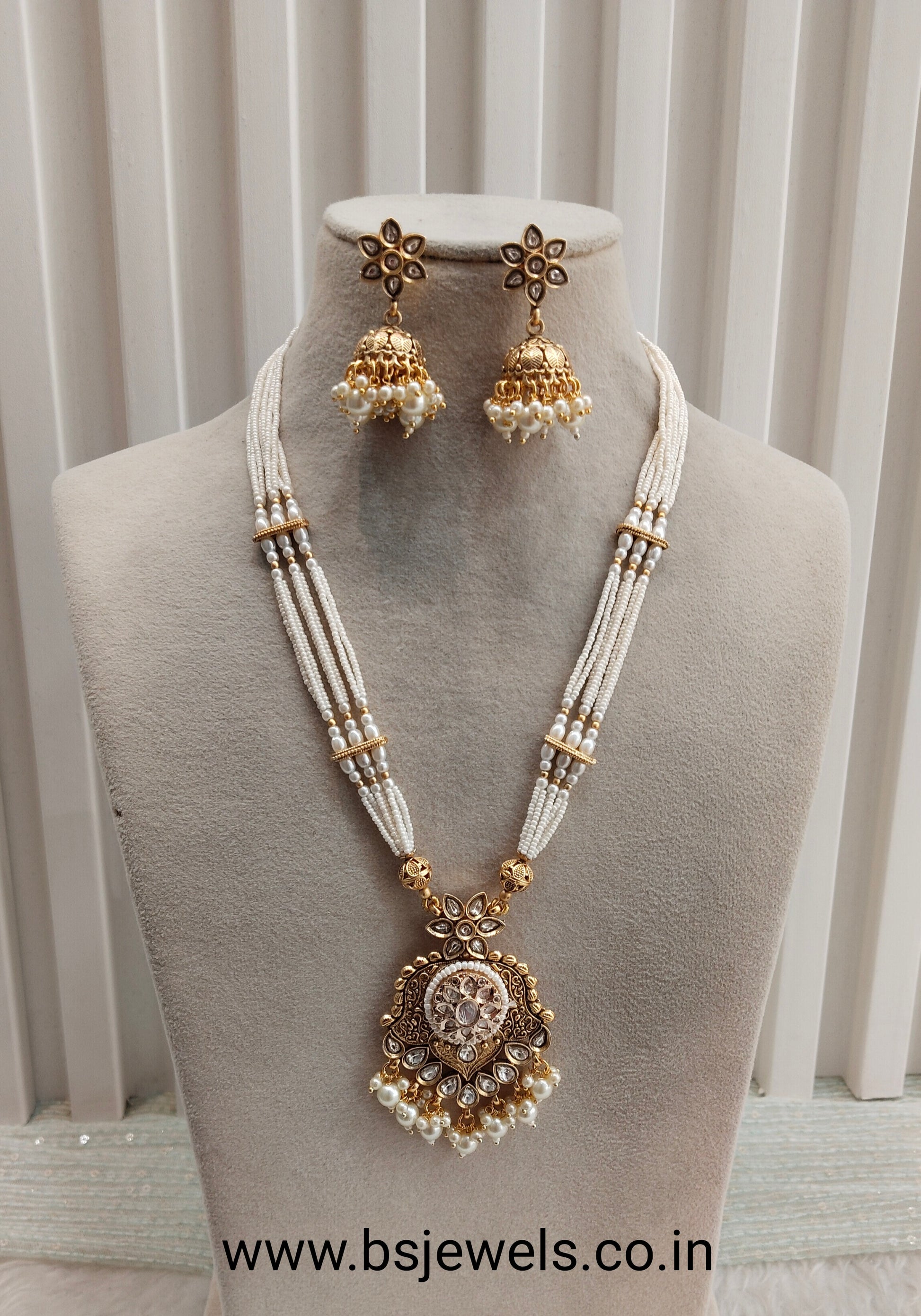 White Gold Polki Long Rani Haar Necklace Jewellery Maxwel Set