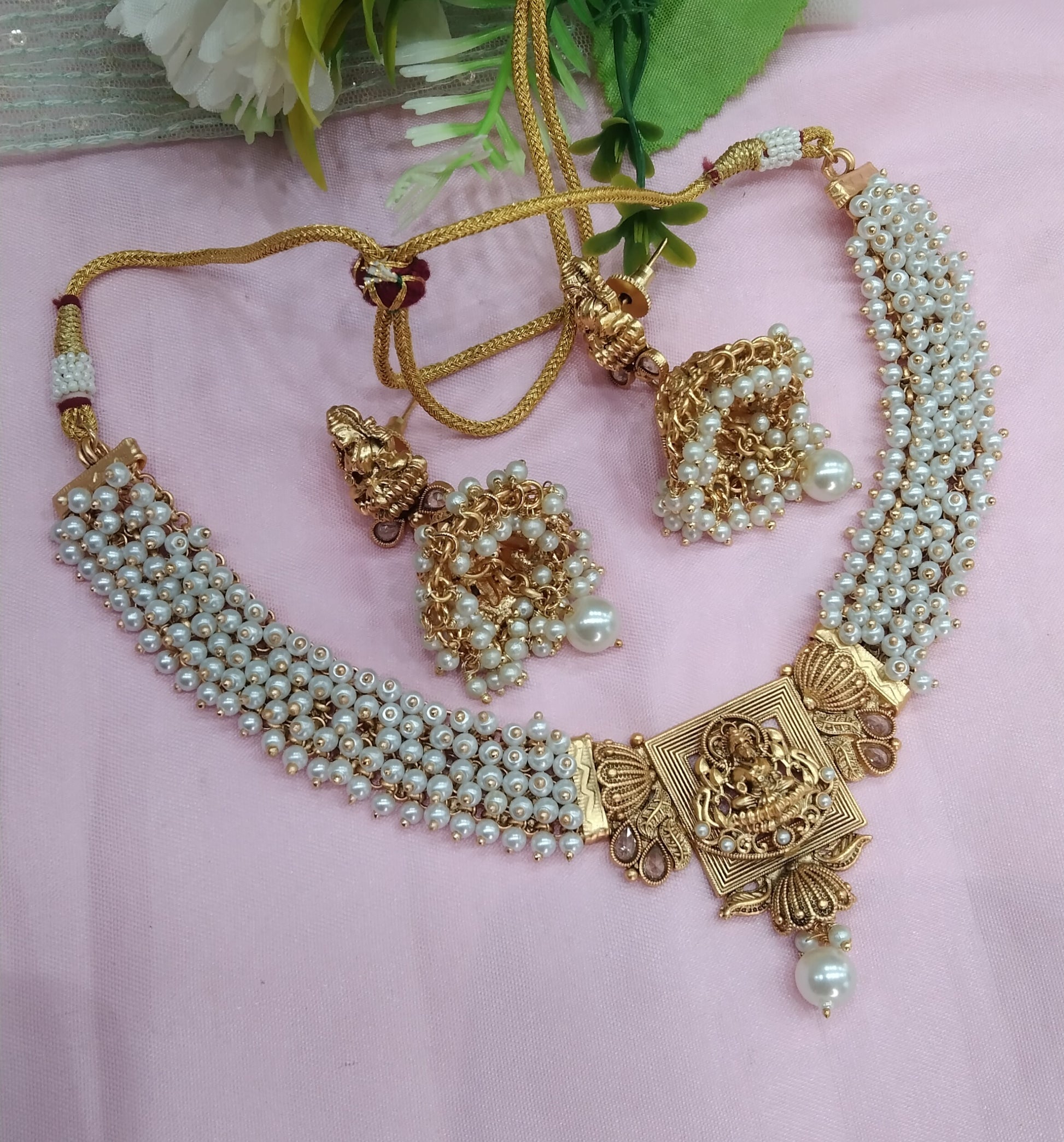 White Gold Polki Necklace Temple Jewellery Hanita Set
