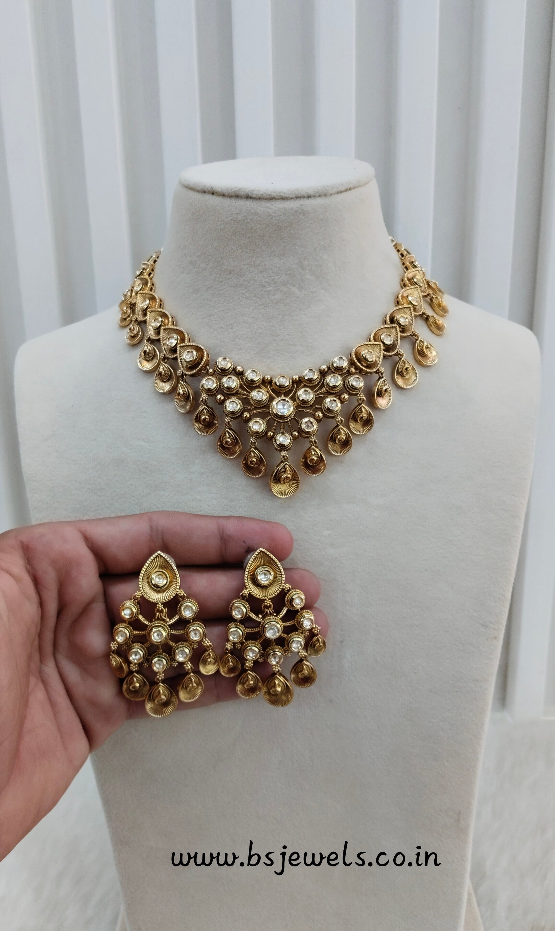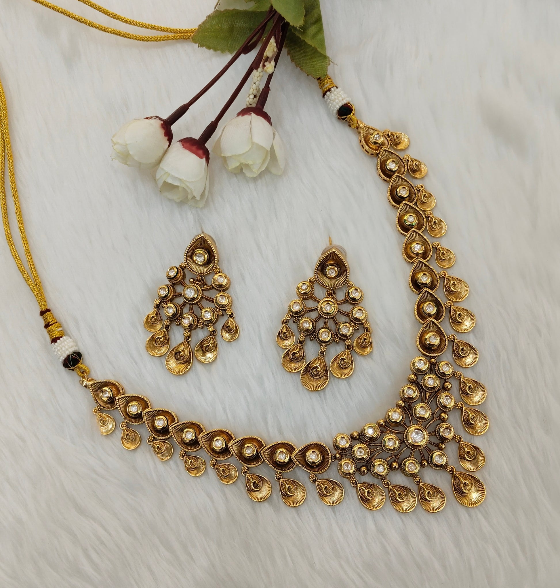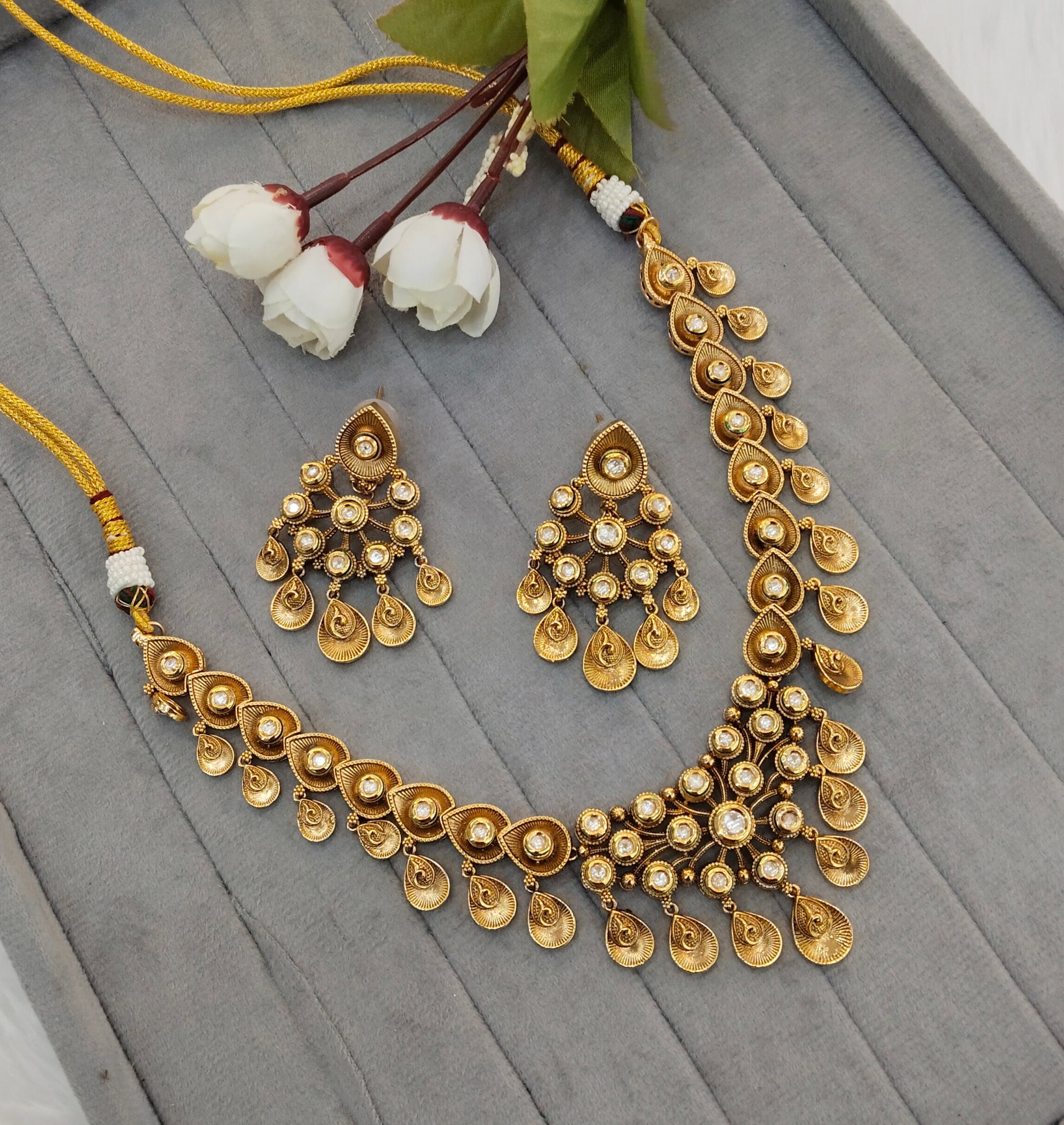 * Gold Finish Polki Necklace Set with earrings as shown in the pic.