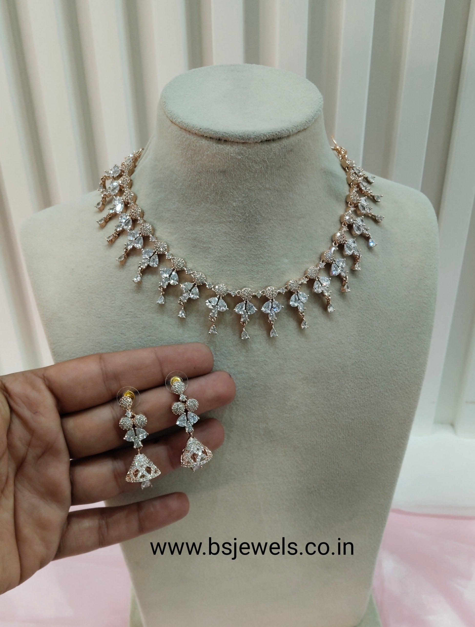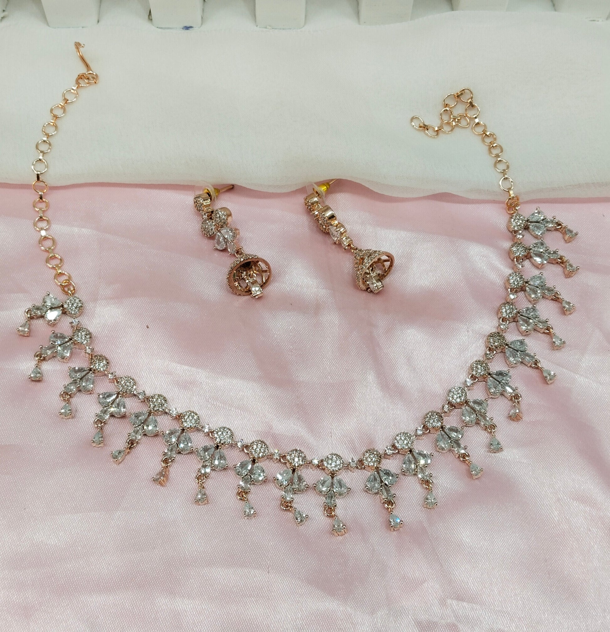 White Rose CZ Jhumki Necklace Jewellery Ten Modi Set