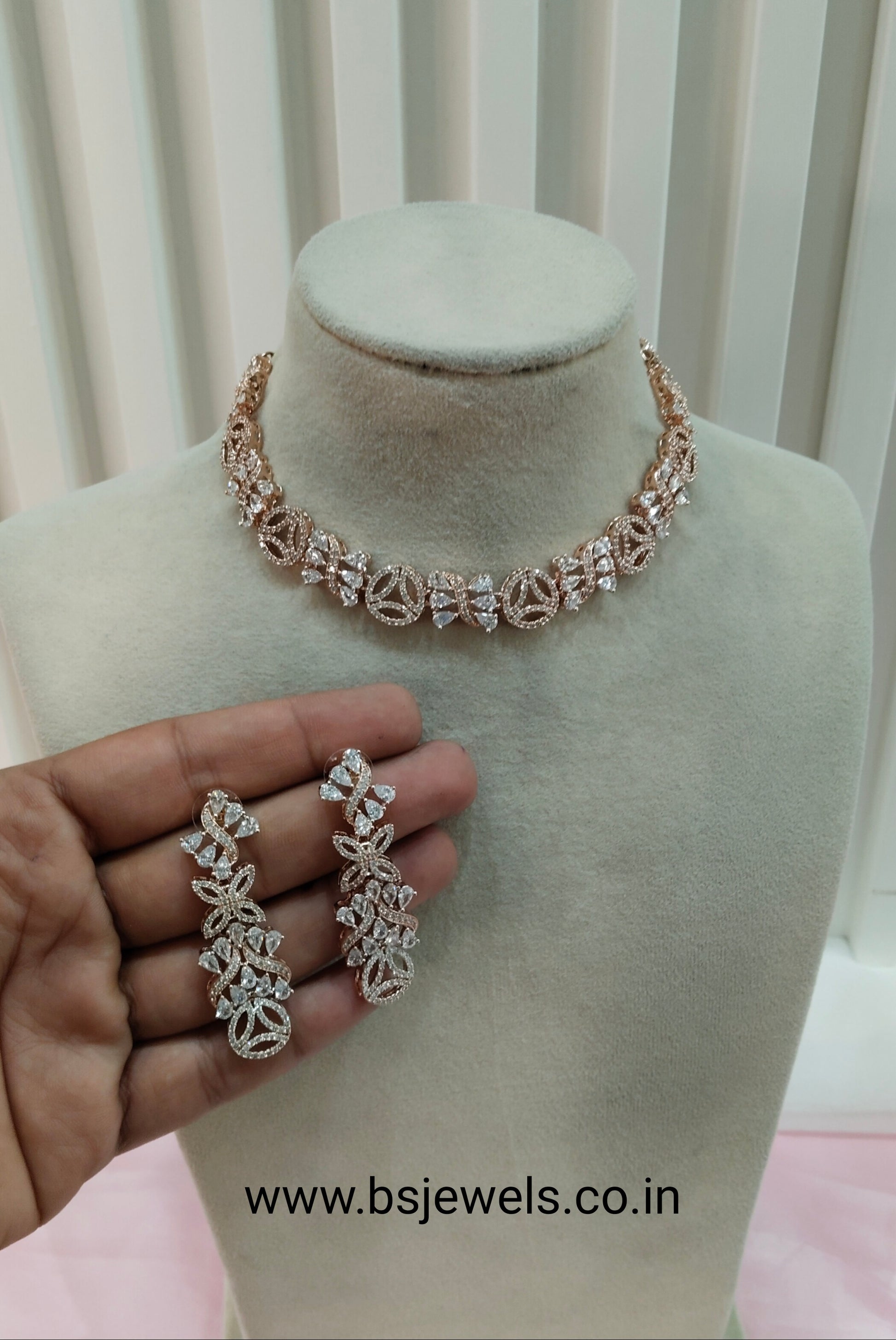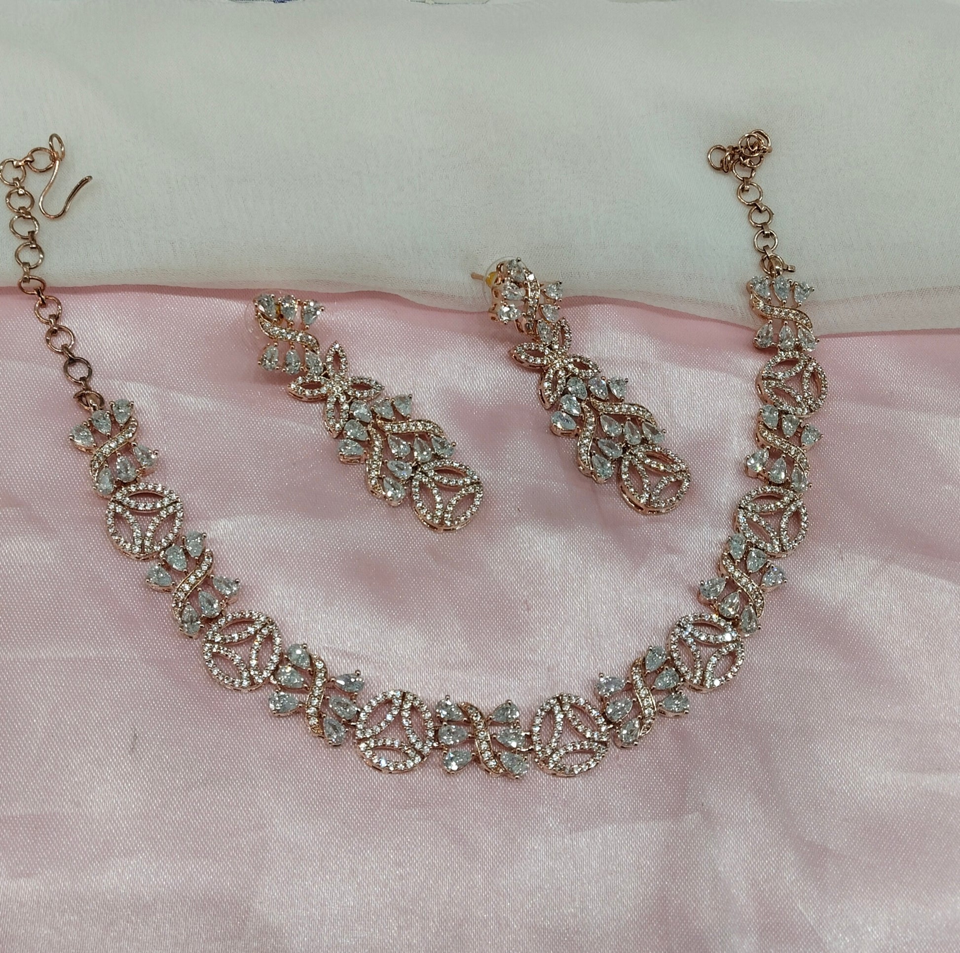 White Rose CZ Necklace Jewellery Ten Modi Set