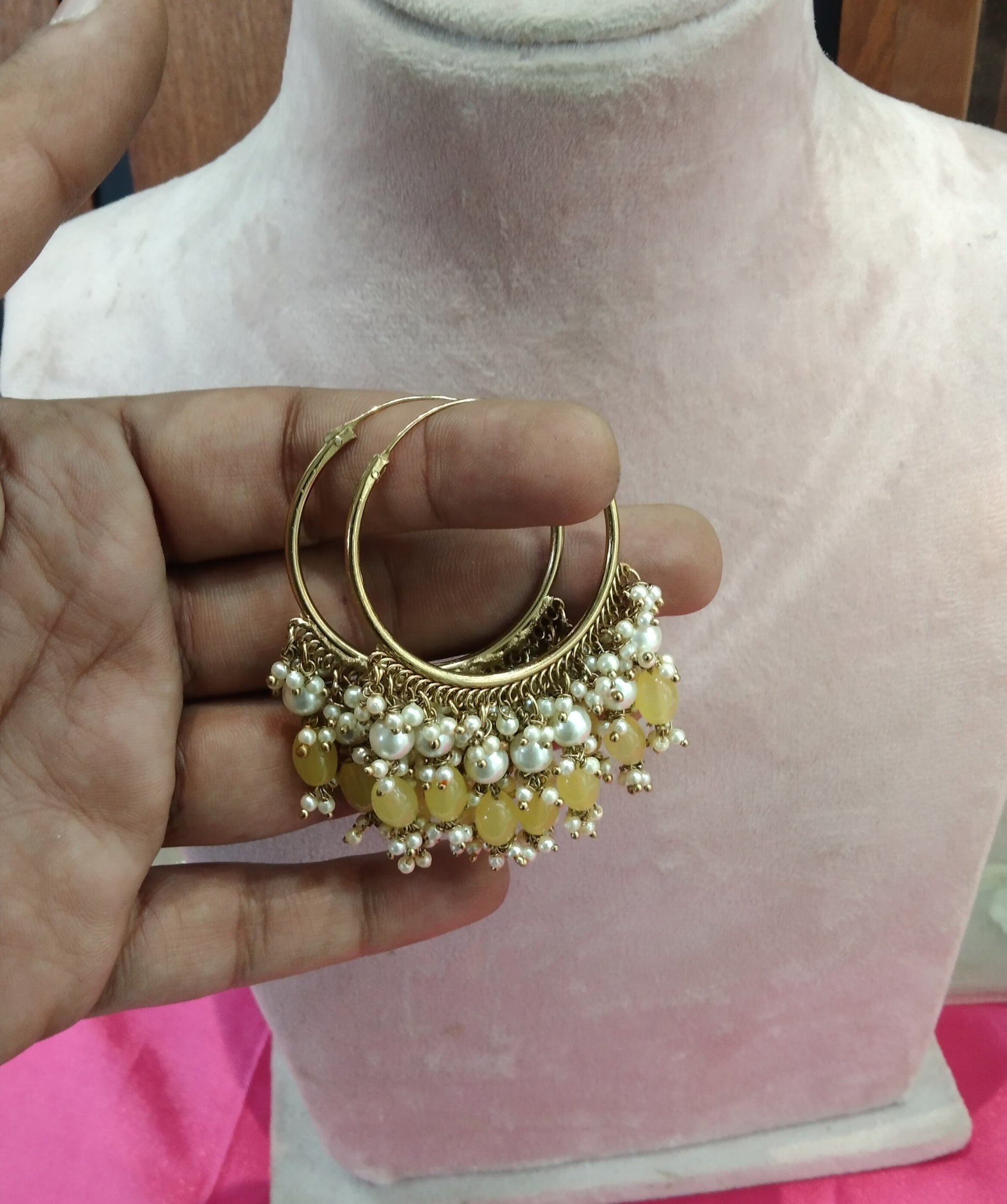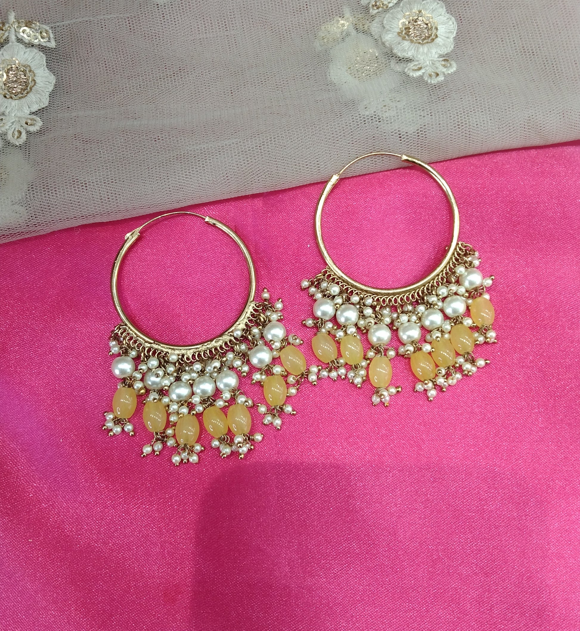 Yellow Antique Balli Hoop Tenny Bollywood Earrings