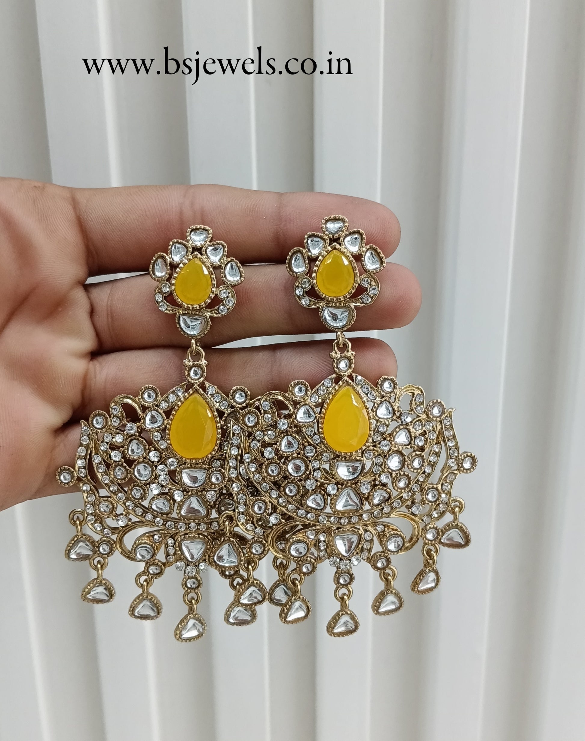 Yellow Antique Gold Bollywood Yadav Earrings