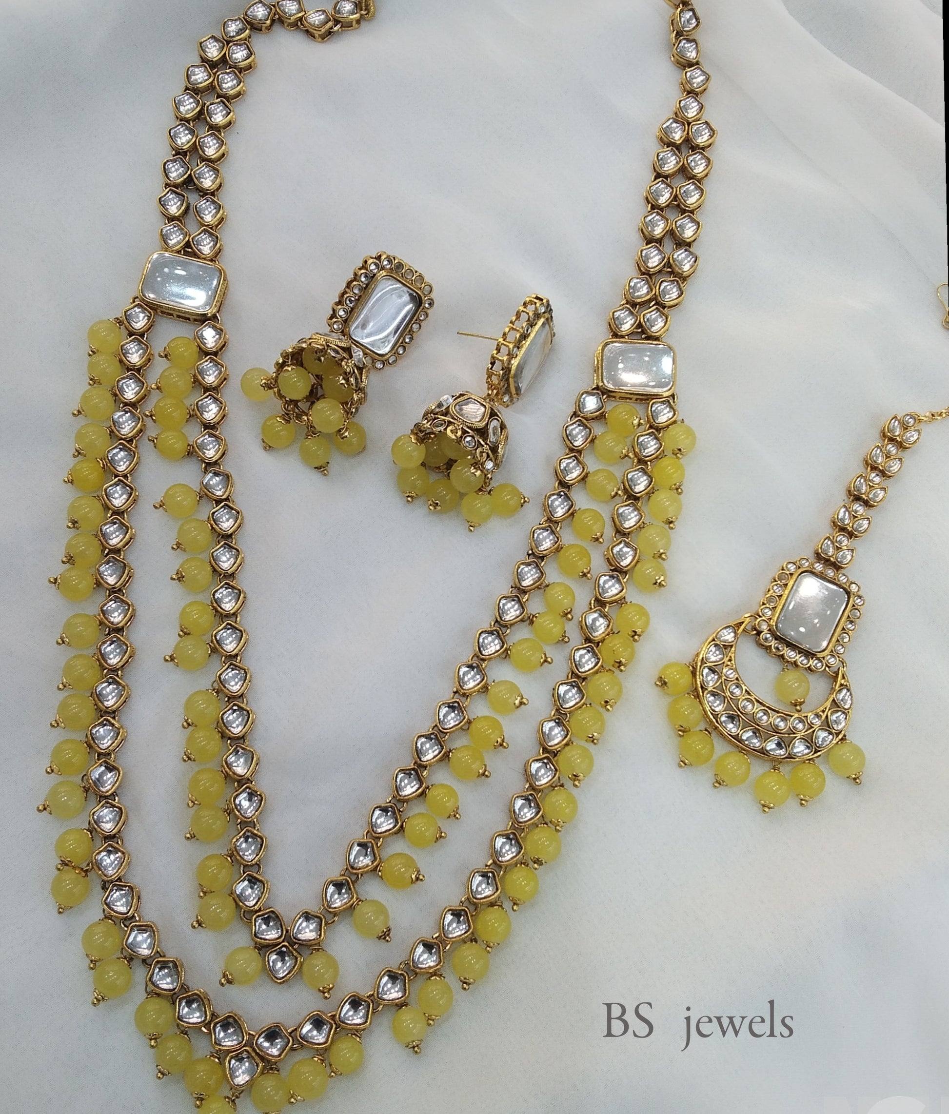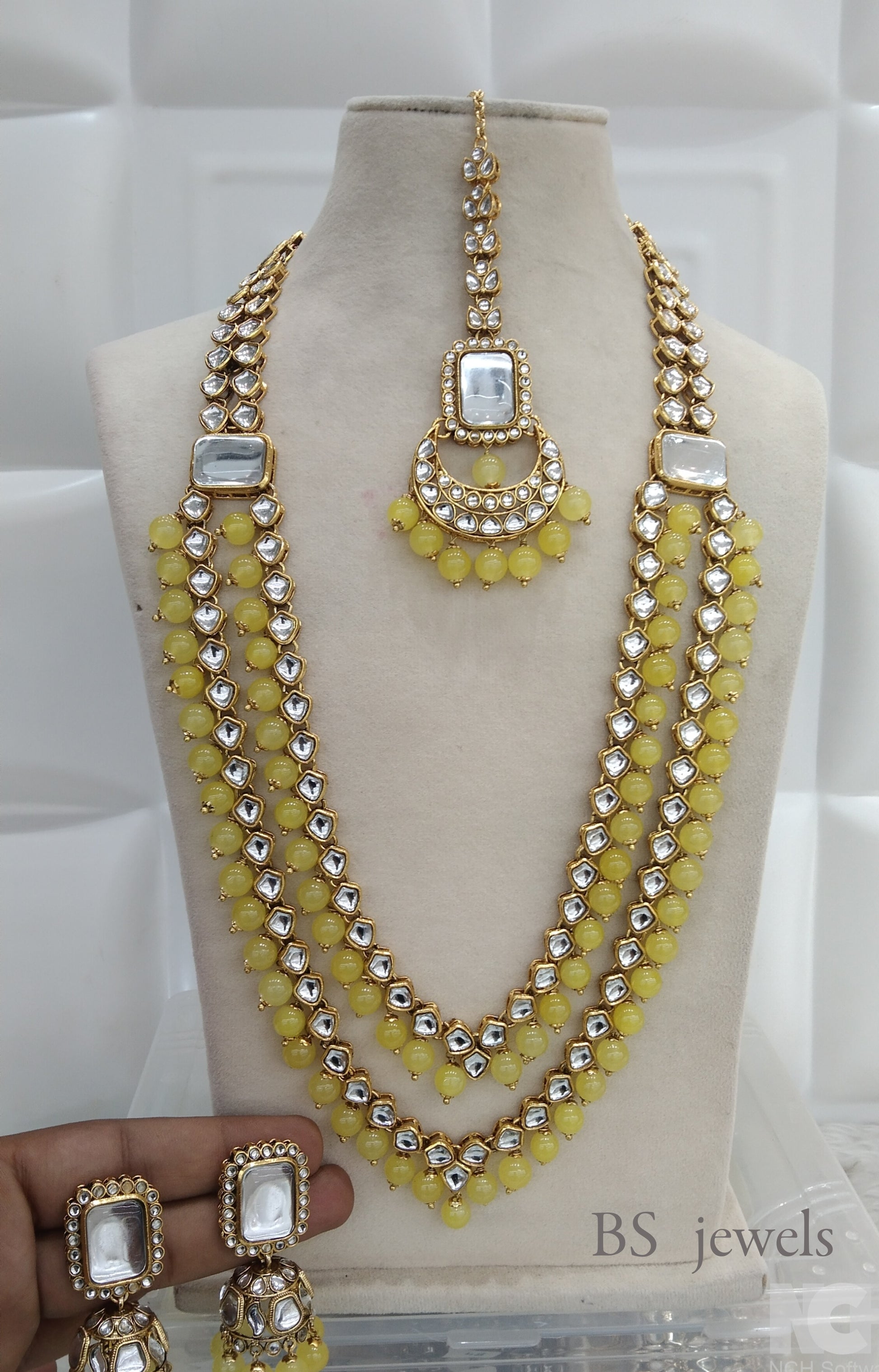 Yellow Kundan Rani Haar Indian Jewelry Set